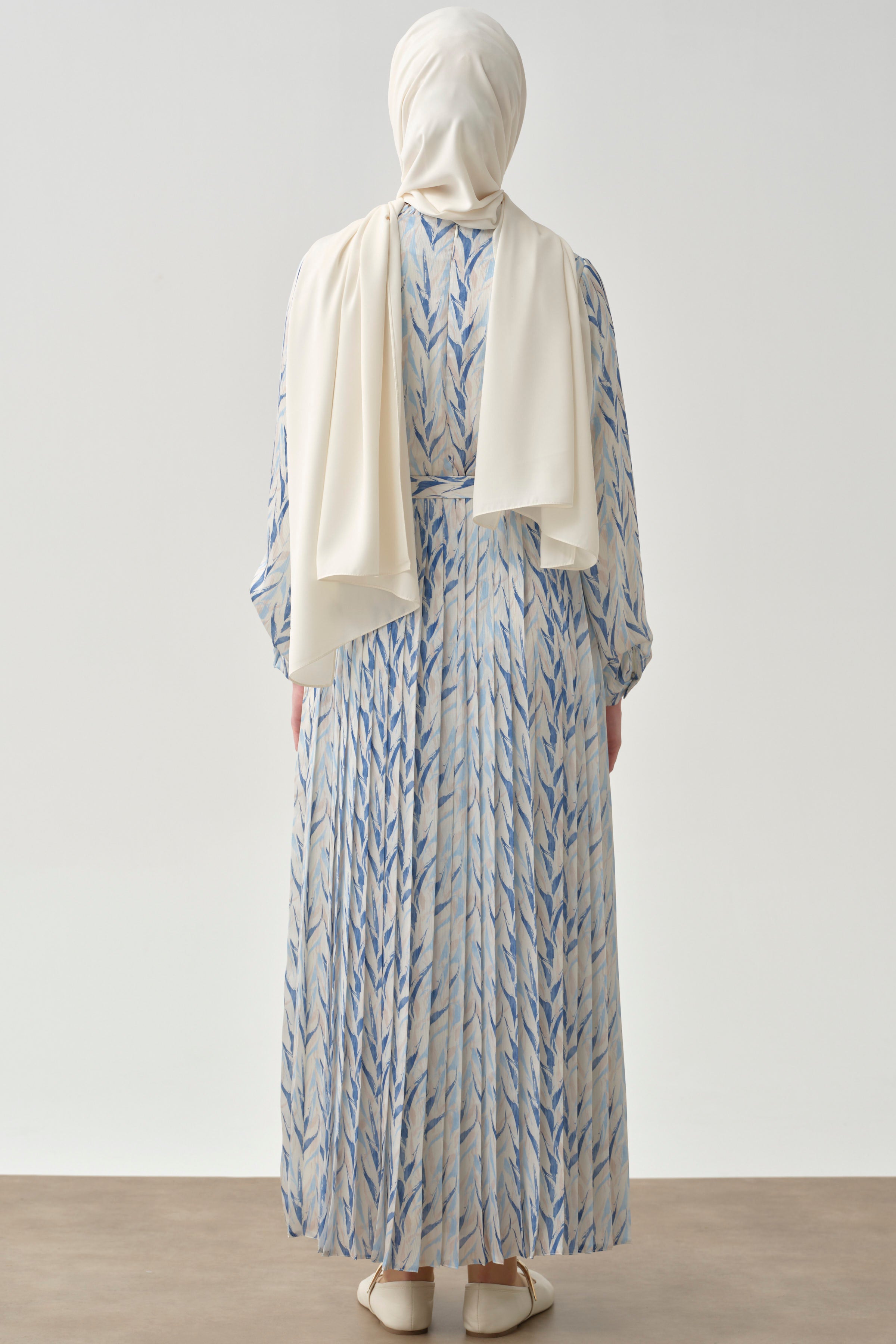 Bel lastikli ve plise desenli bu elbise, zarif ve rahat bir görünüm sunuyor. Lastik detayı, belinizi zarifçe vurgularken, plise deseni elbiseye hareket katıyor.