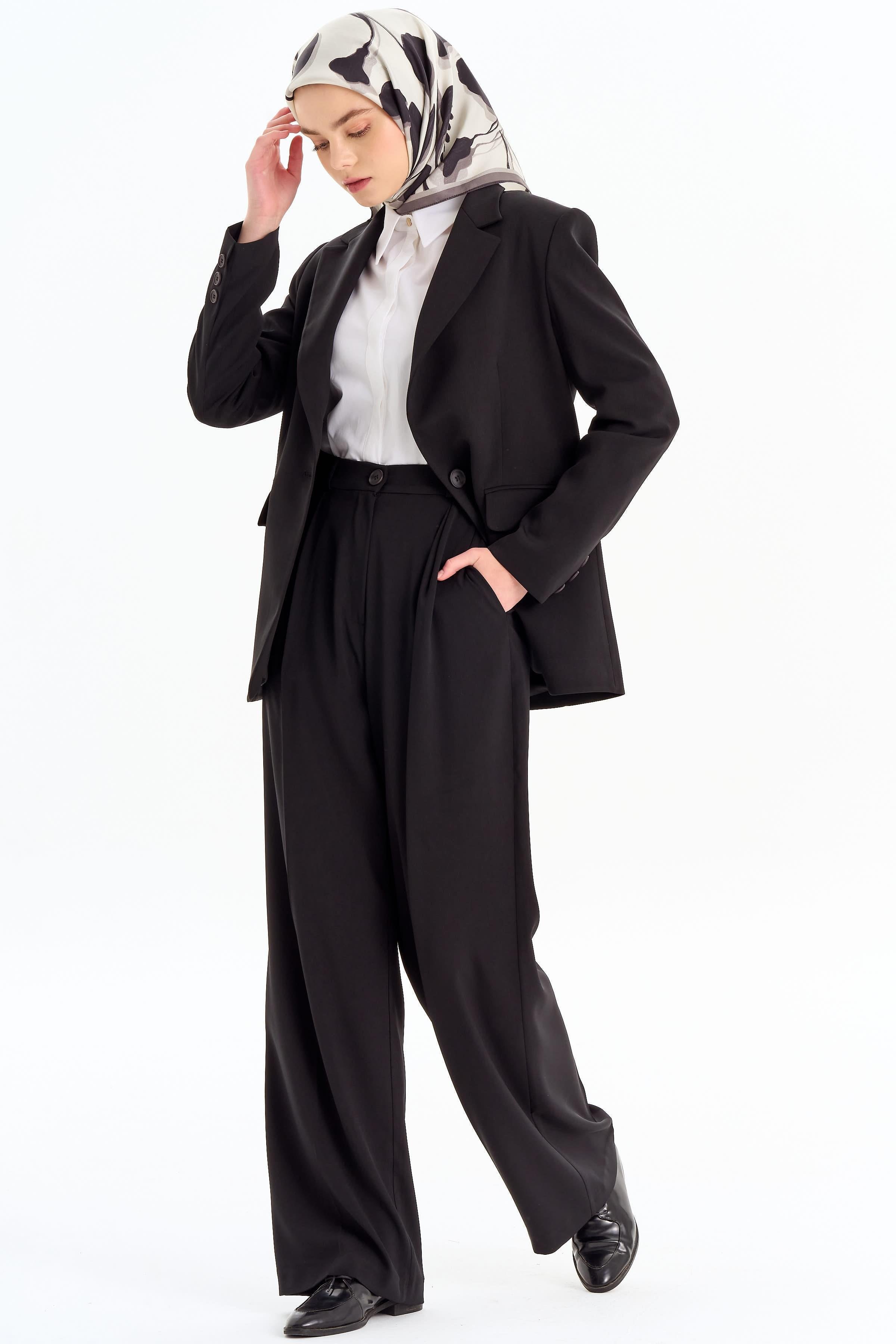 Bu pantolon, bol paça kesimiyle hareket özgürlüğü sağlar ve aynı zamanda son moda trendlerini yansıtır.