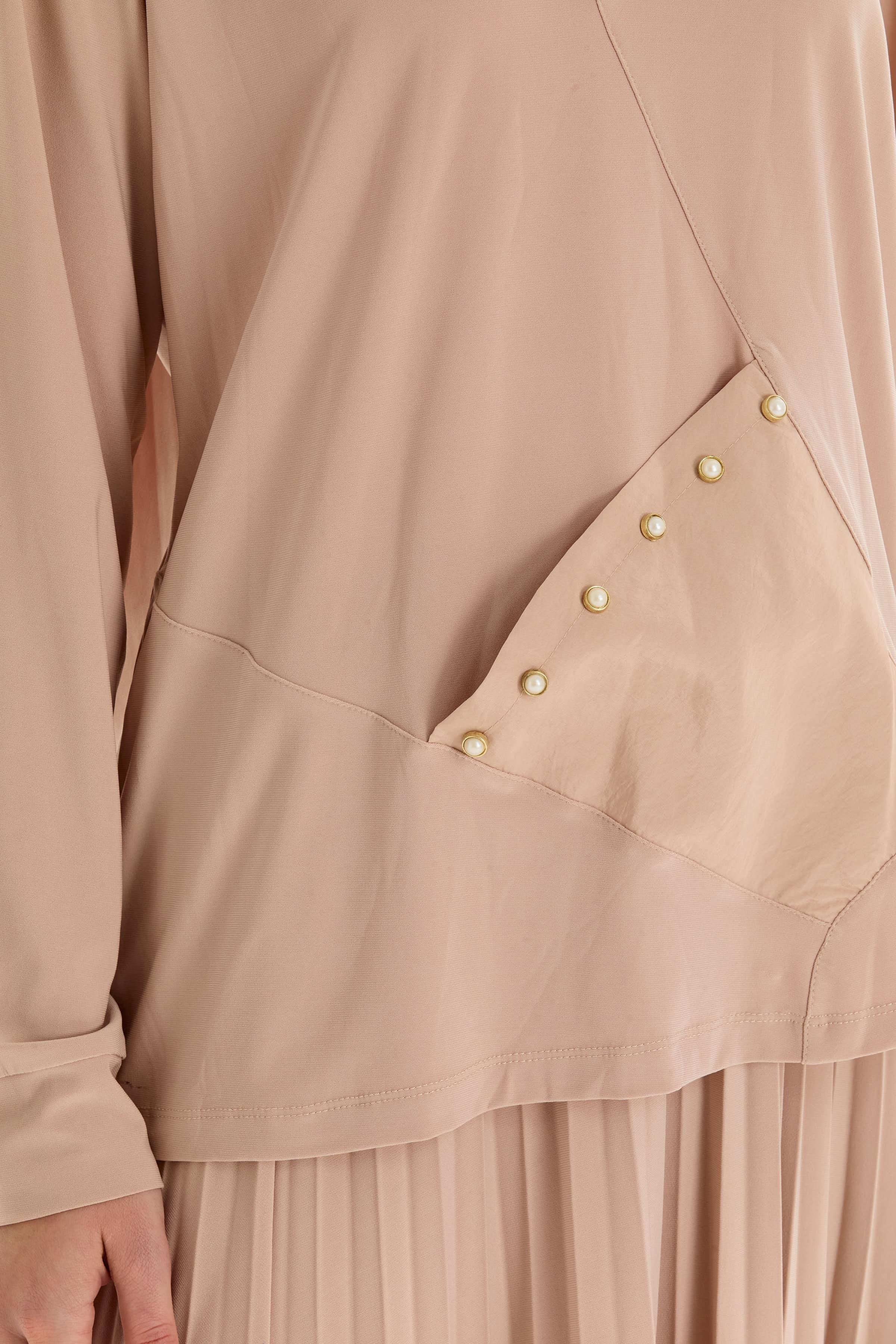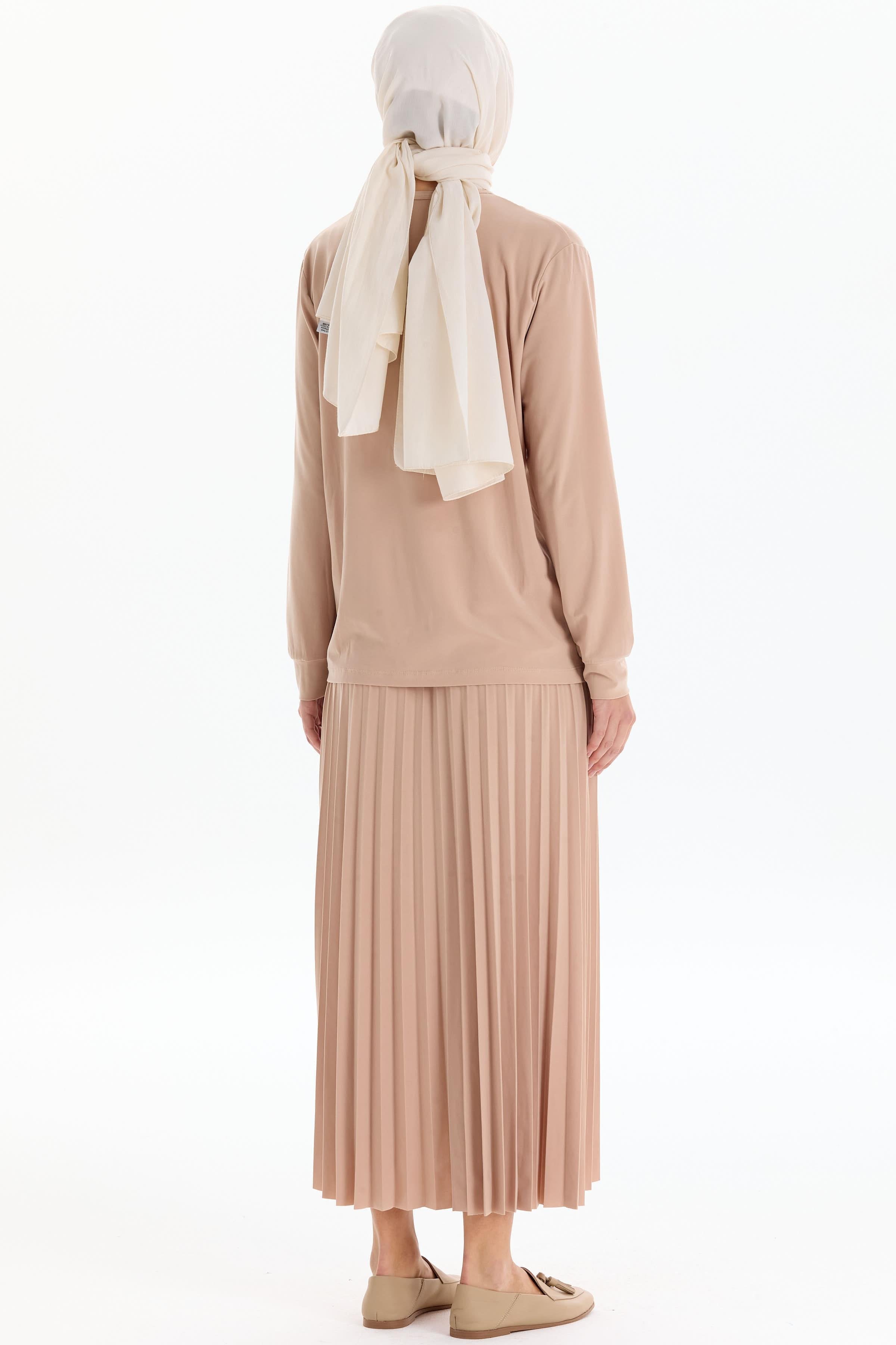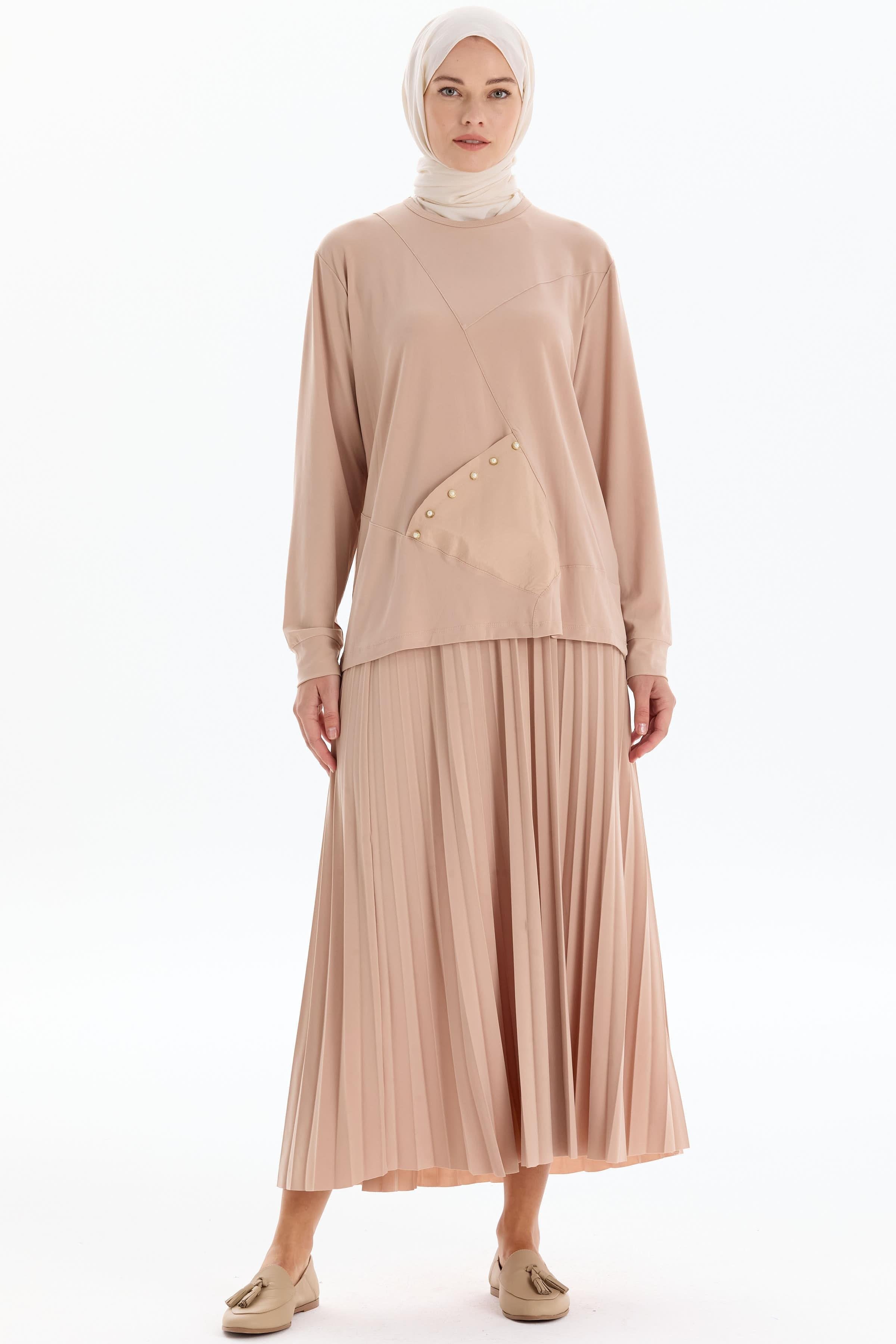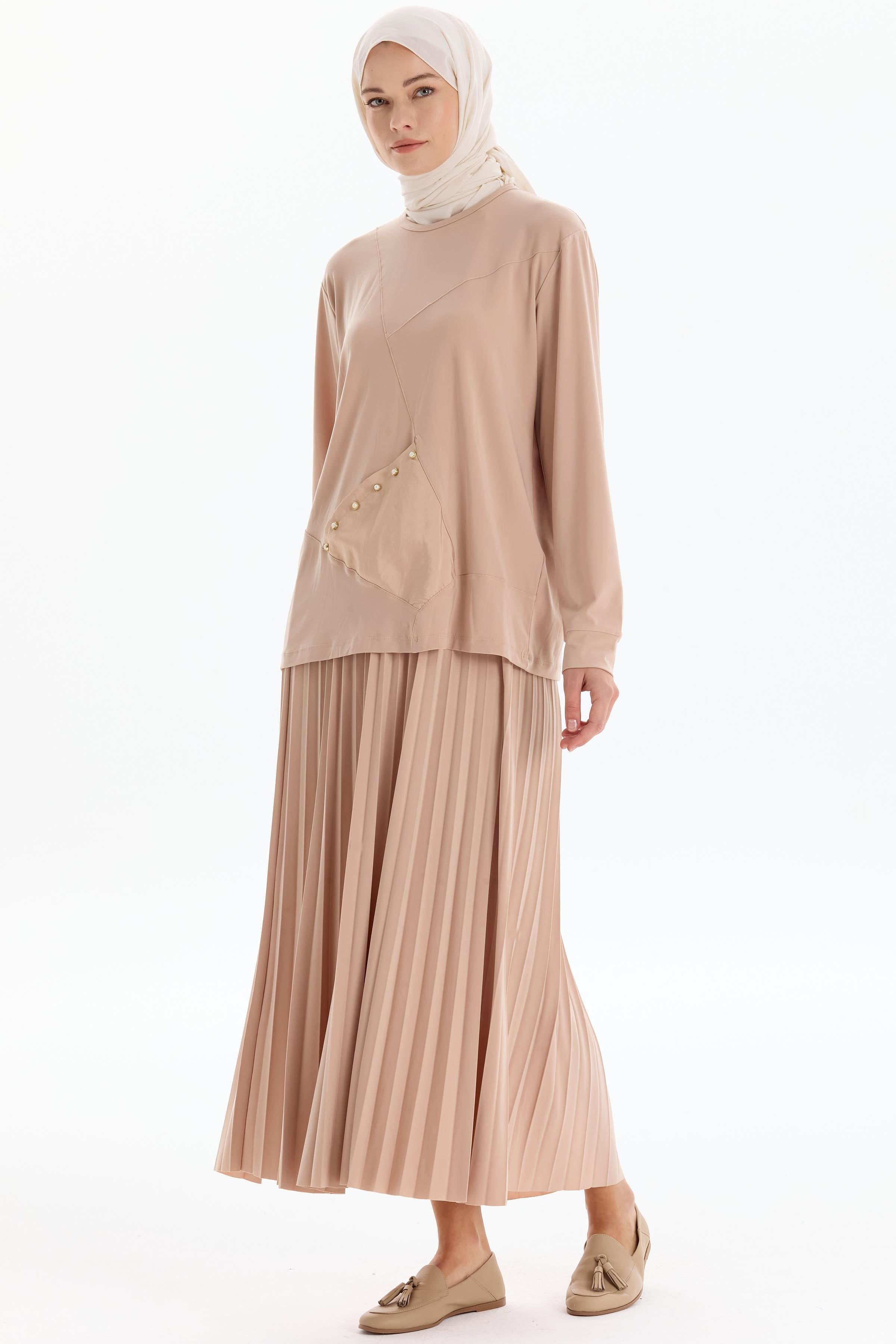 Bu özel takım, bluz ve etek kombinasyonuyla hem şıklığı hem de rahatlığı bir araya getirir.
