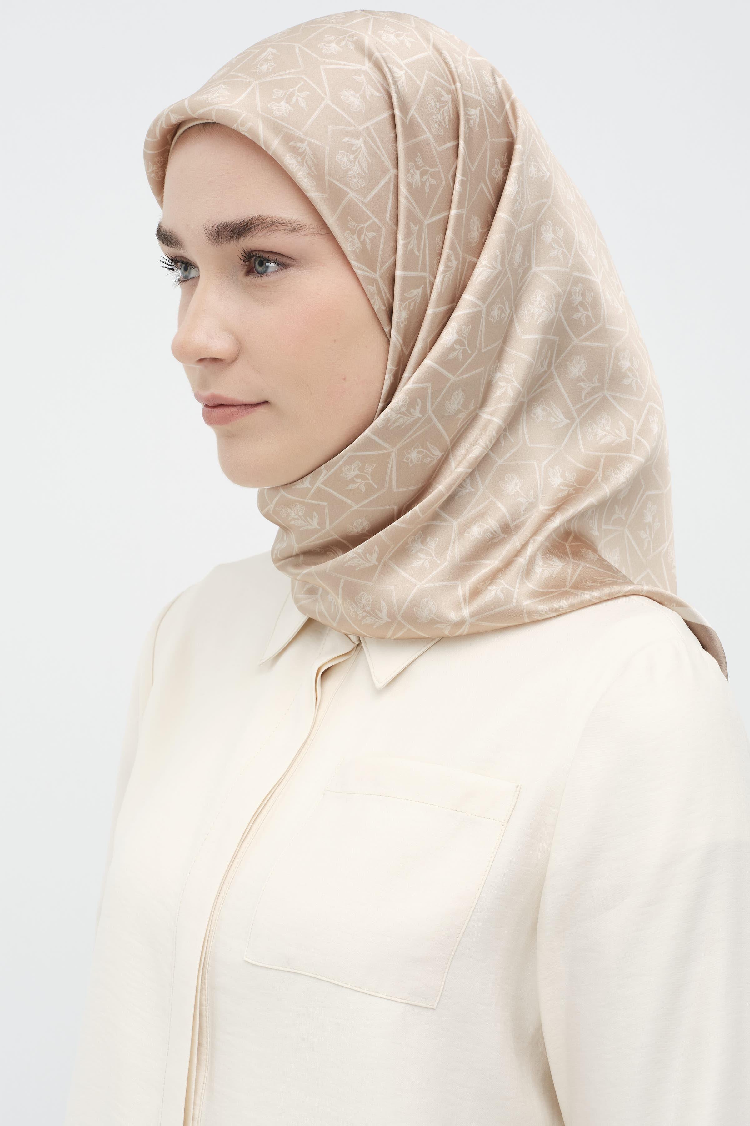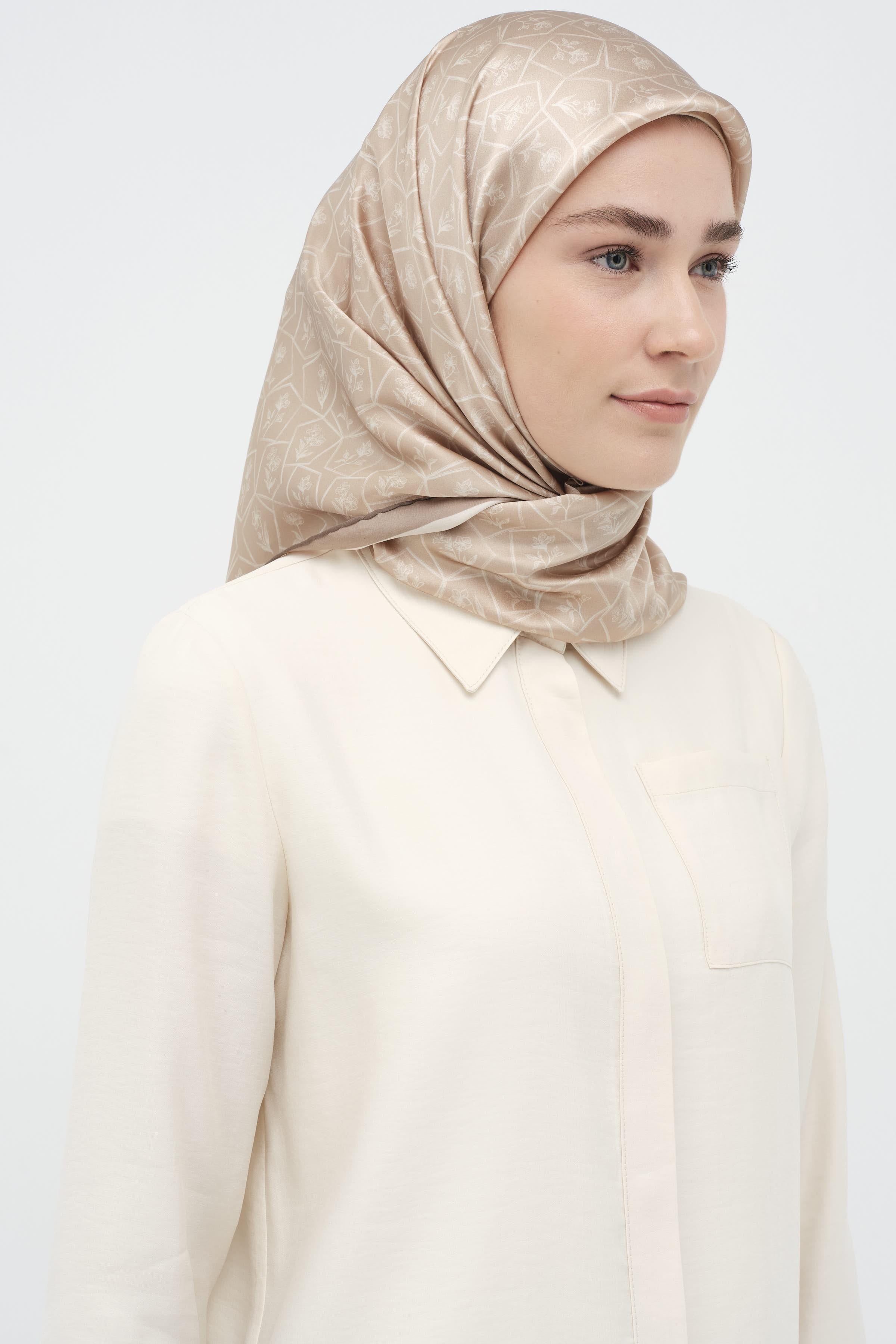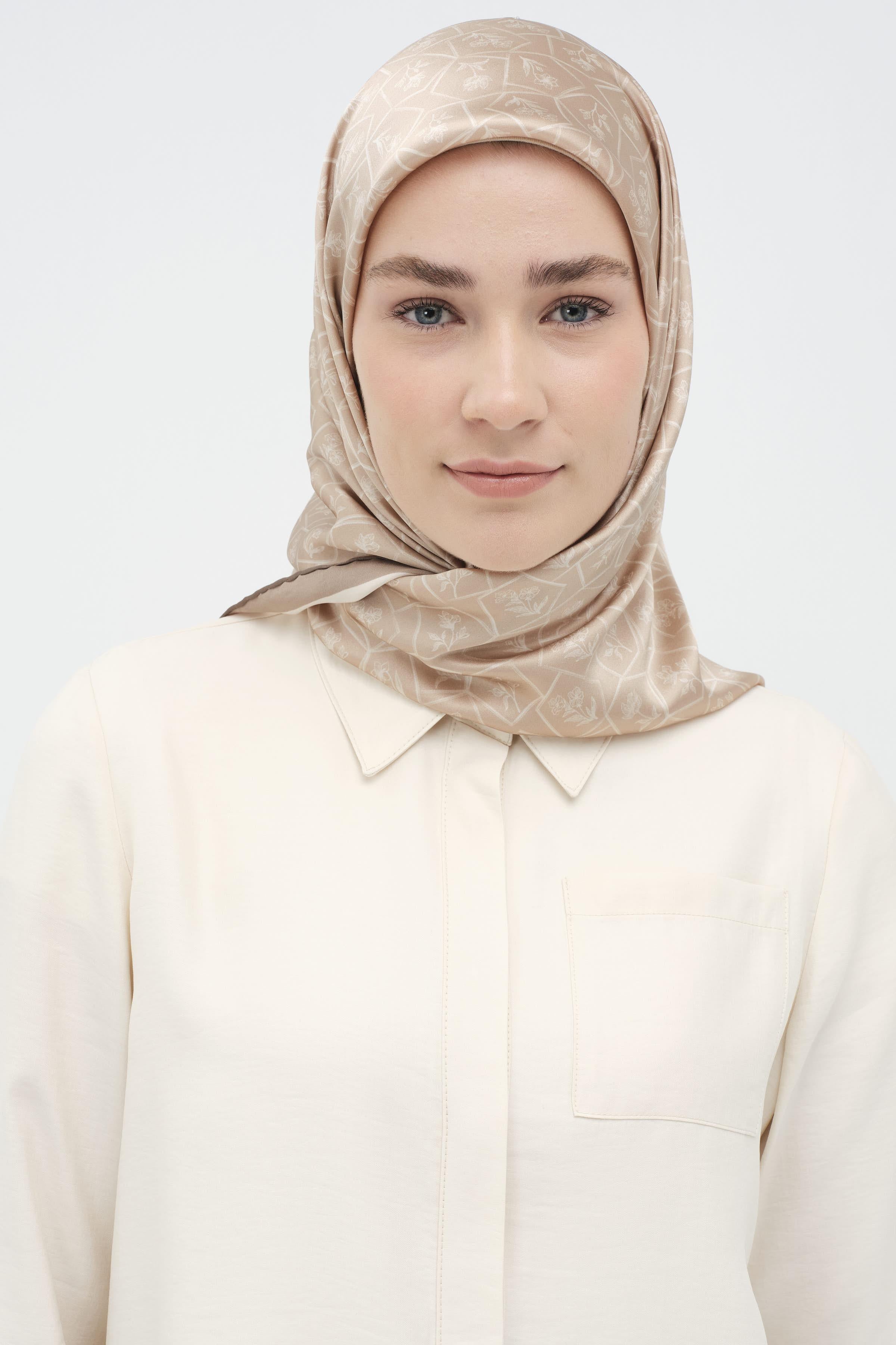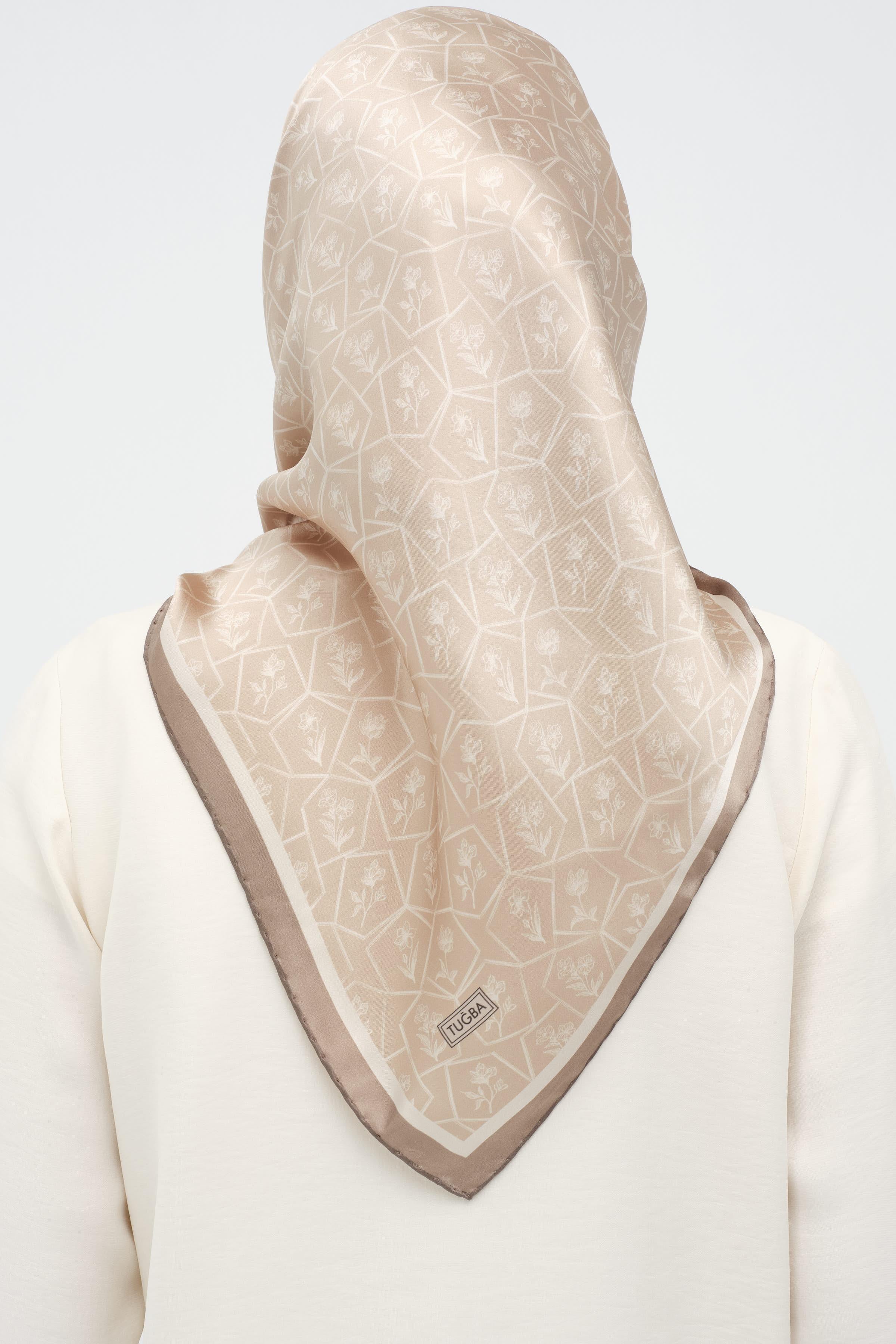 Çerçeveli Sura İpek Eşarp - Açık Kahve