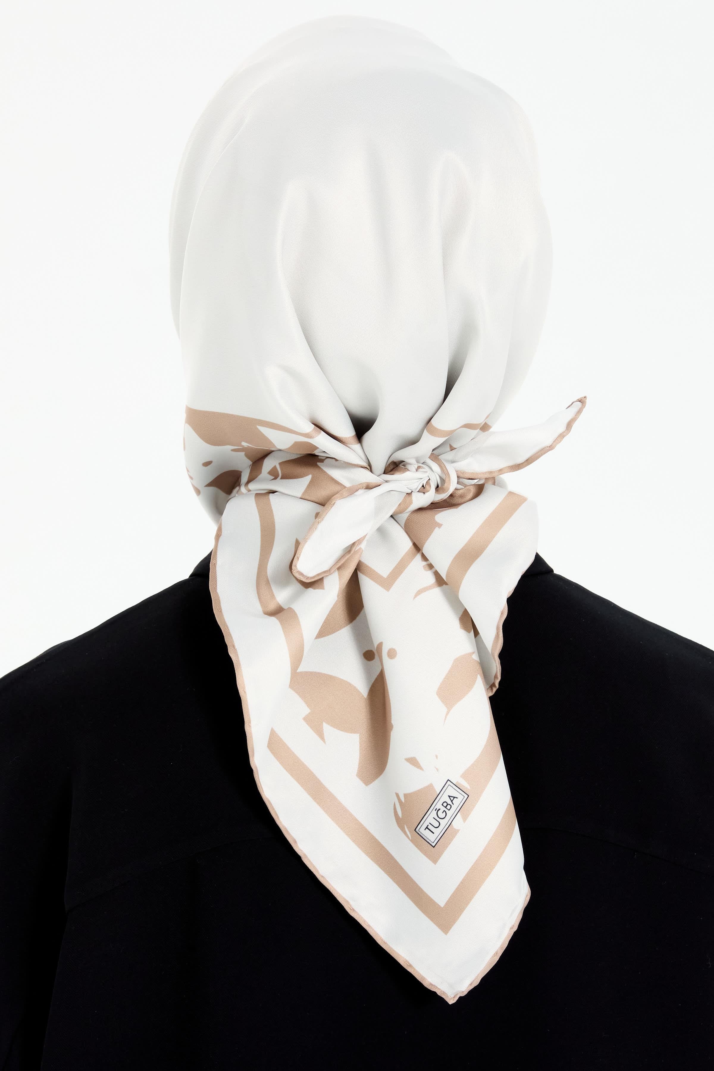 Çiçek Çerçeve Desenli Stil Eşarp - Bej