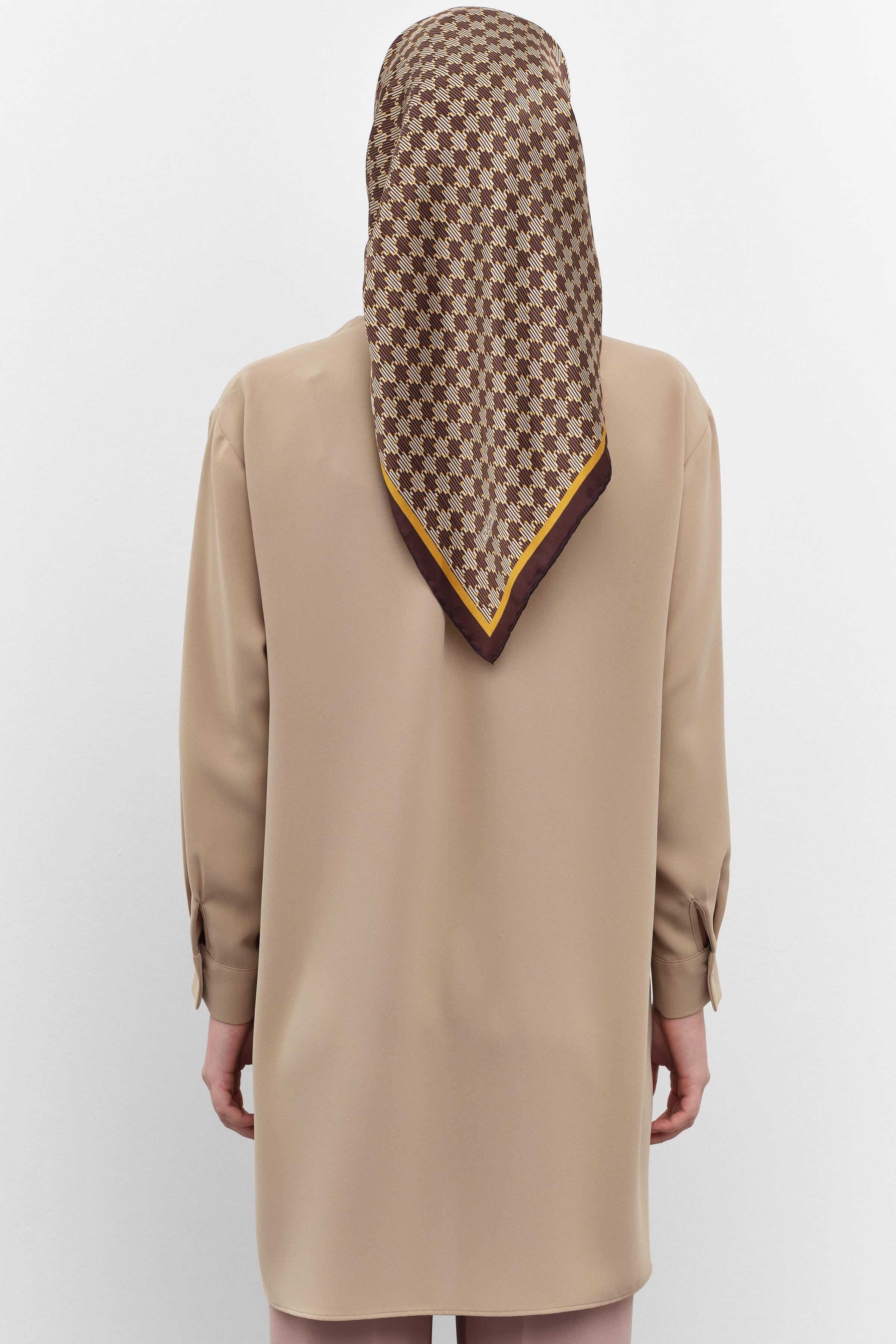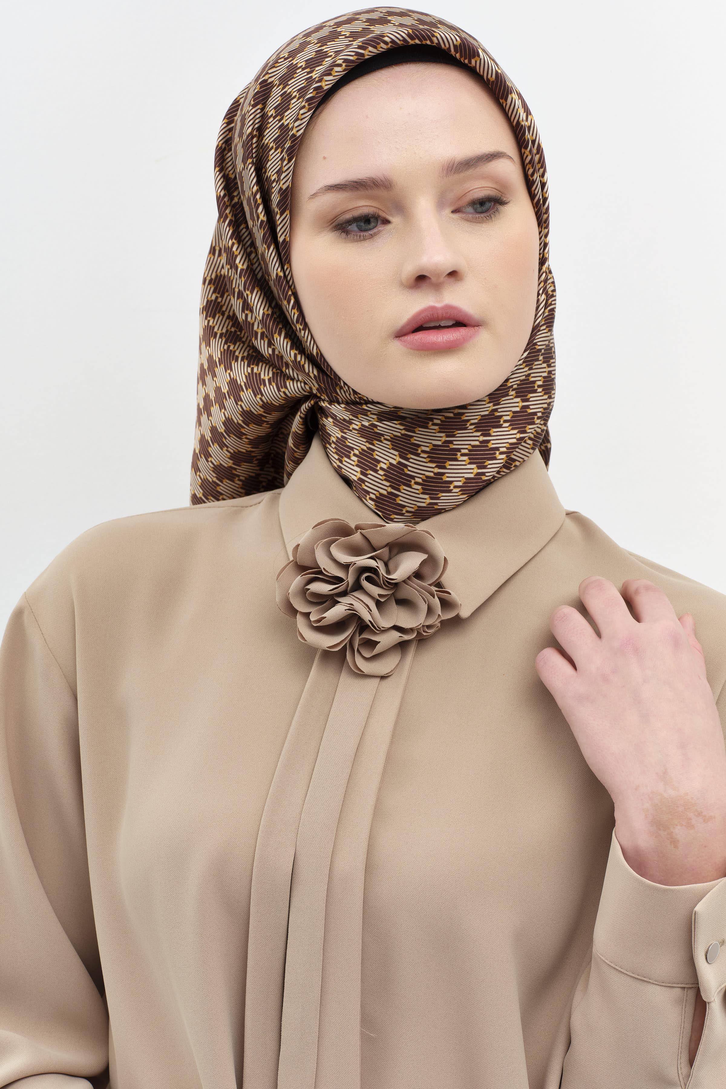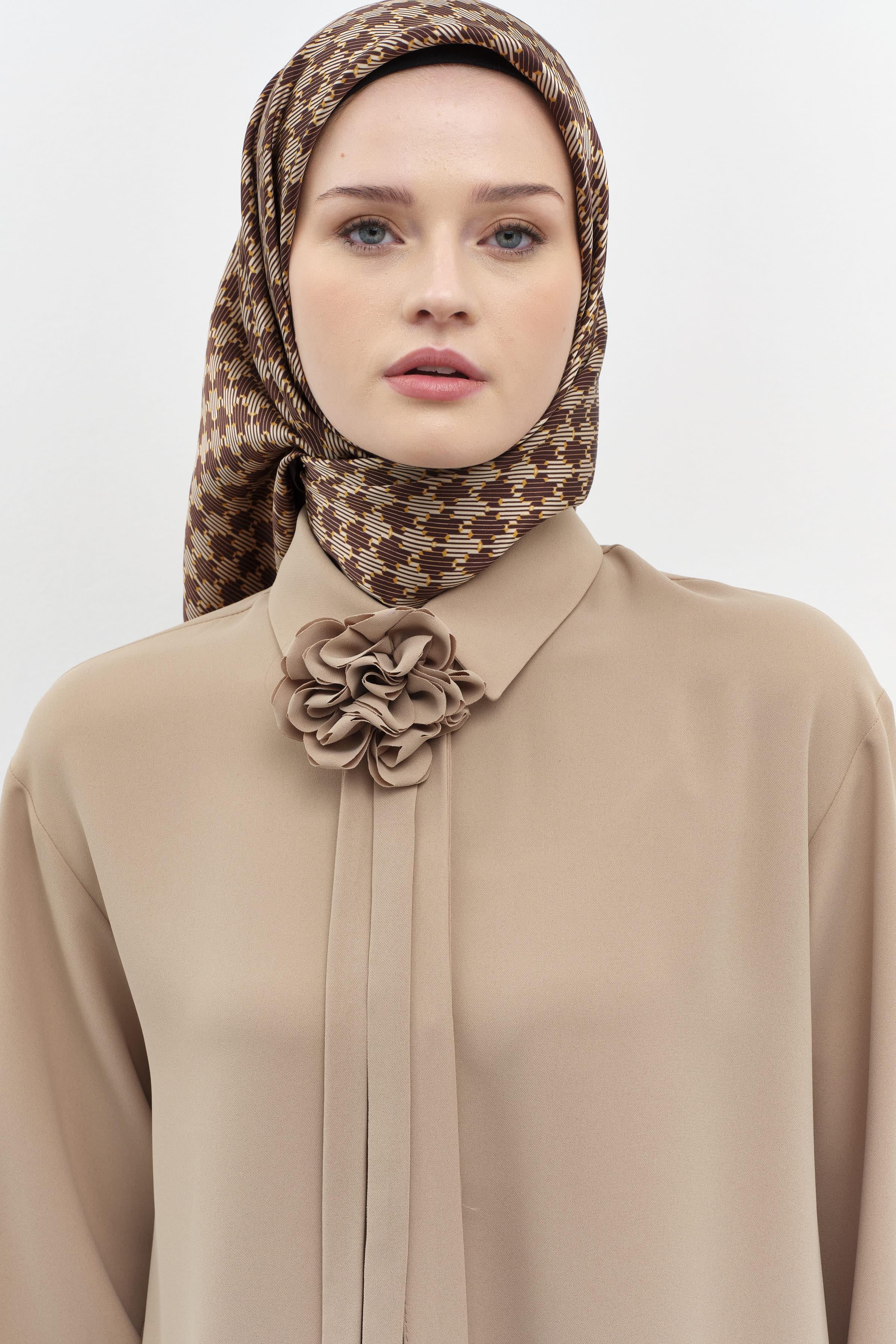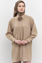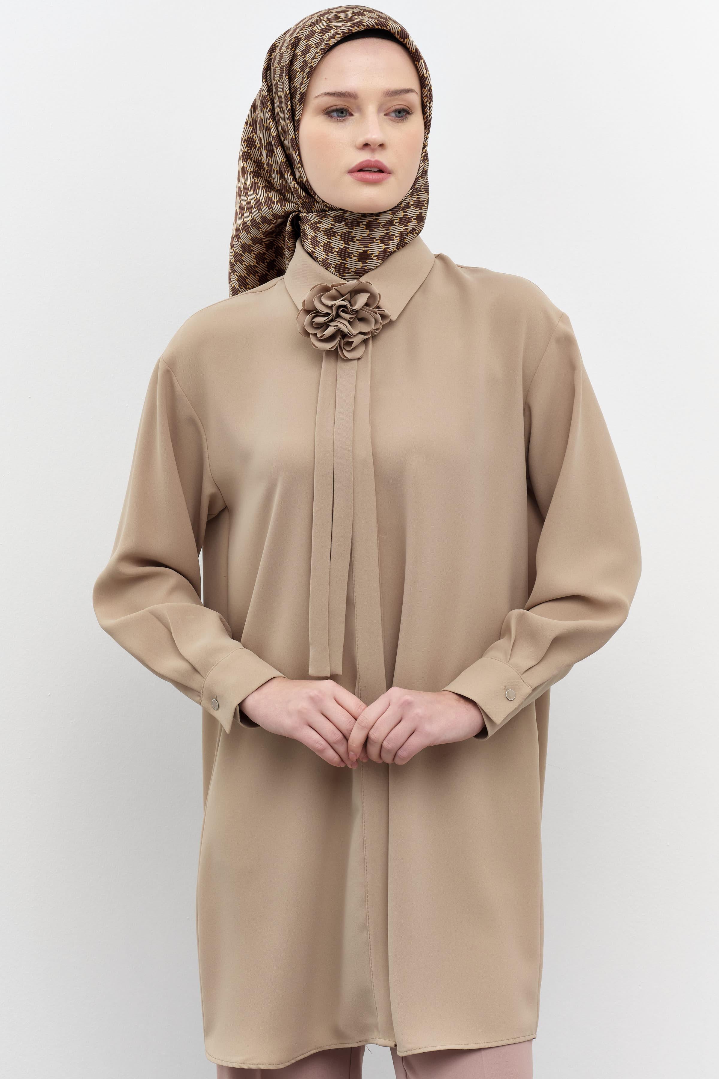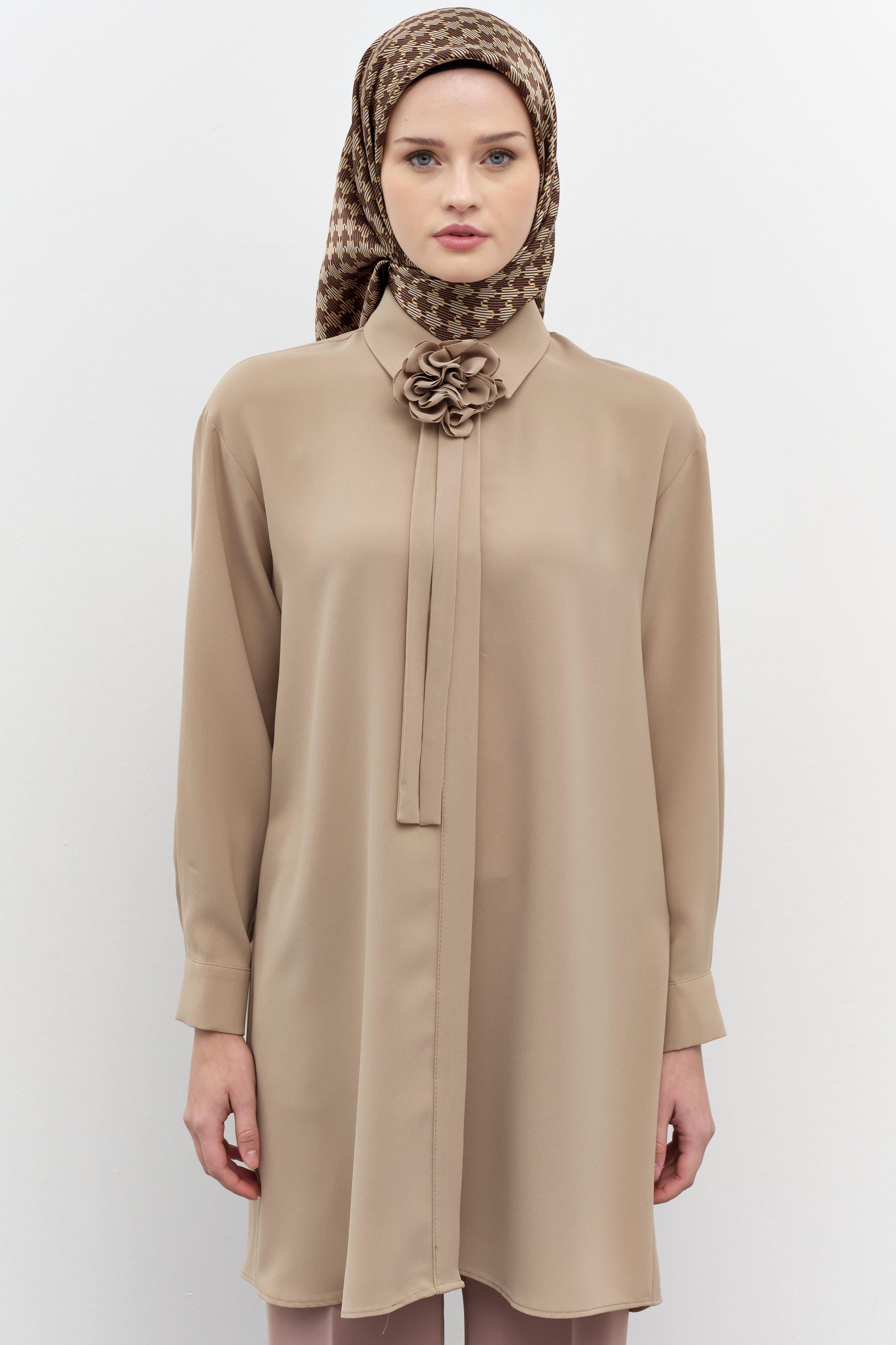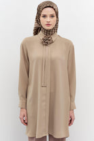 Çiçekli Kravat Detaylı Tunik - Vizon
