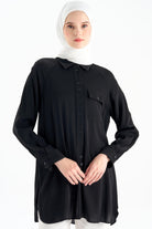 Çift Düğme Detaylı Gömlek - Siyah