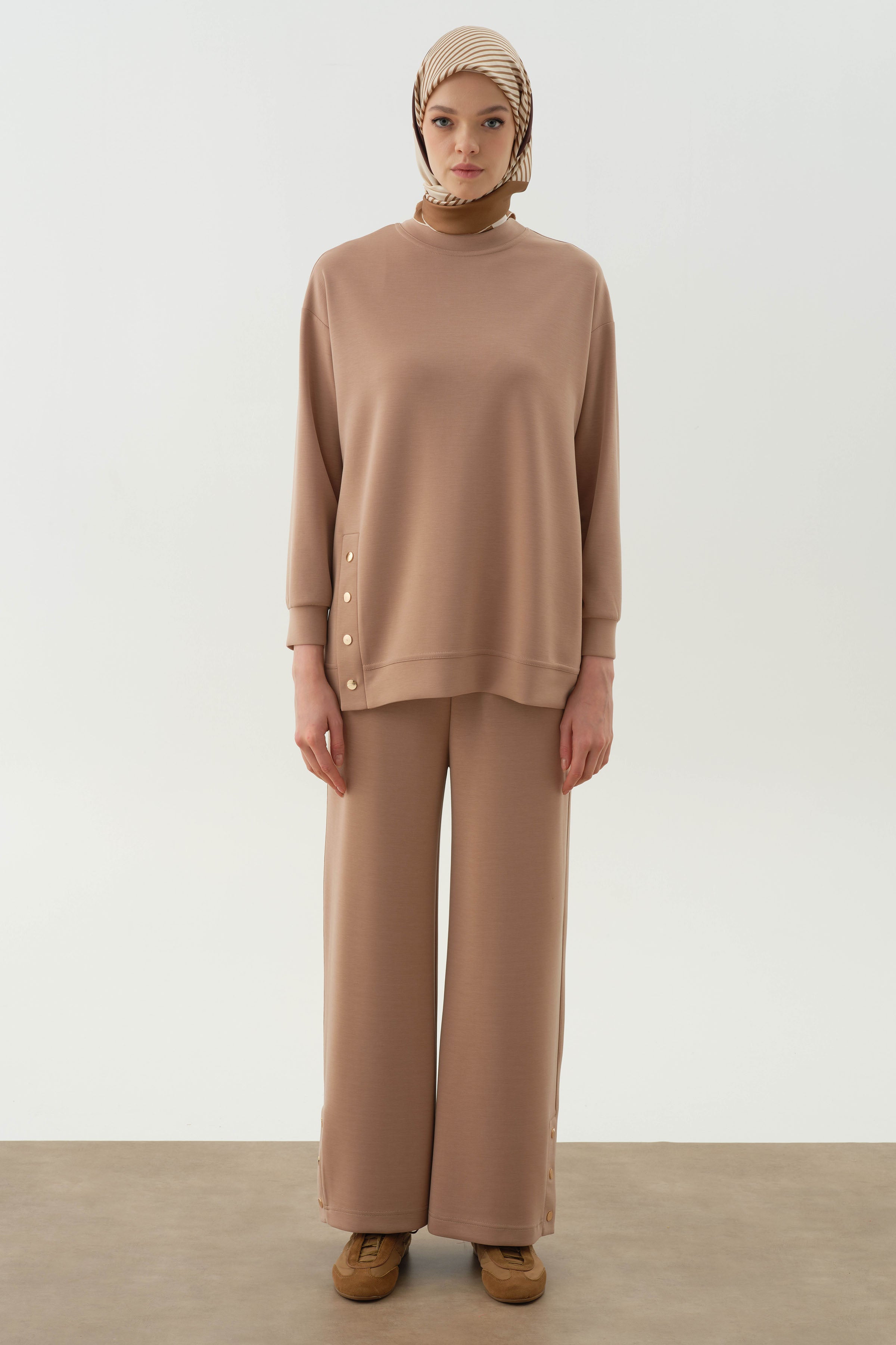Çıtçıt Yırtmaç Detaylı Örme Tunik - Fındık