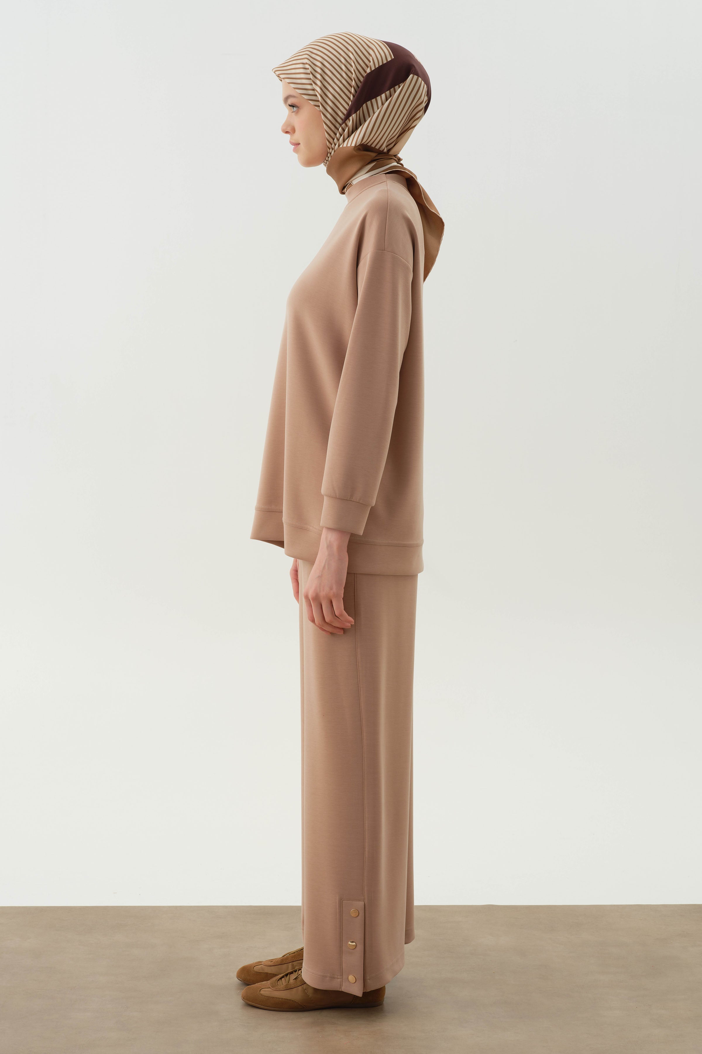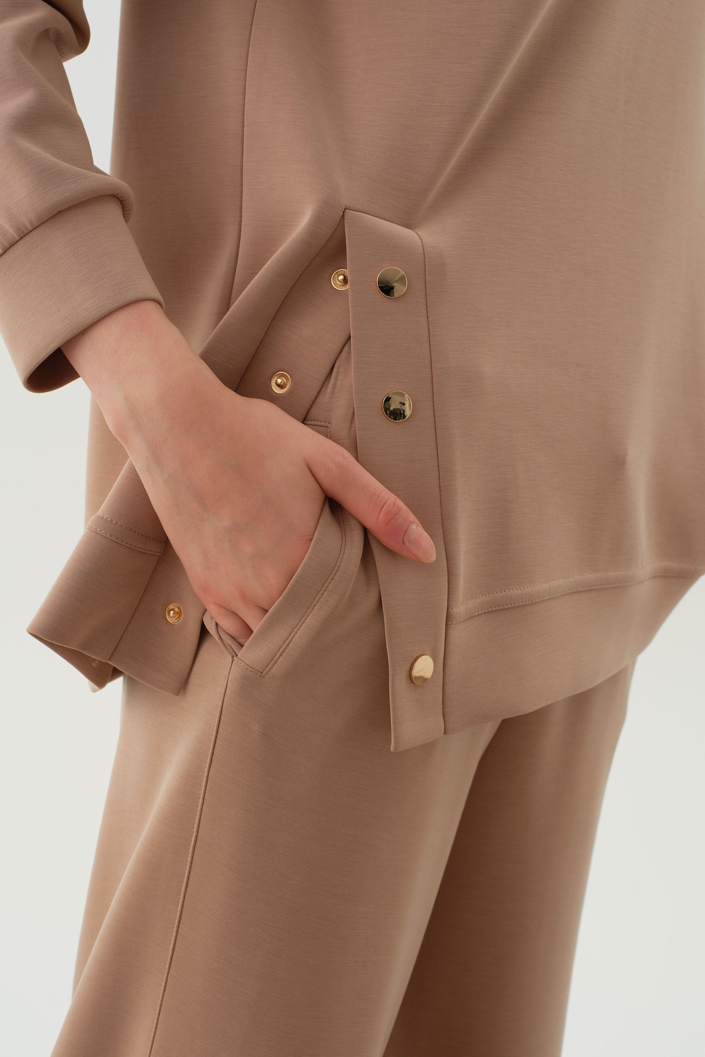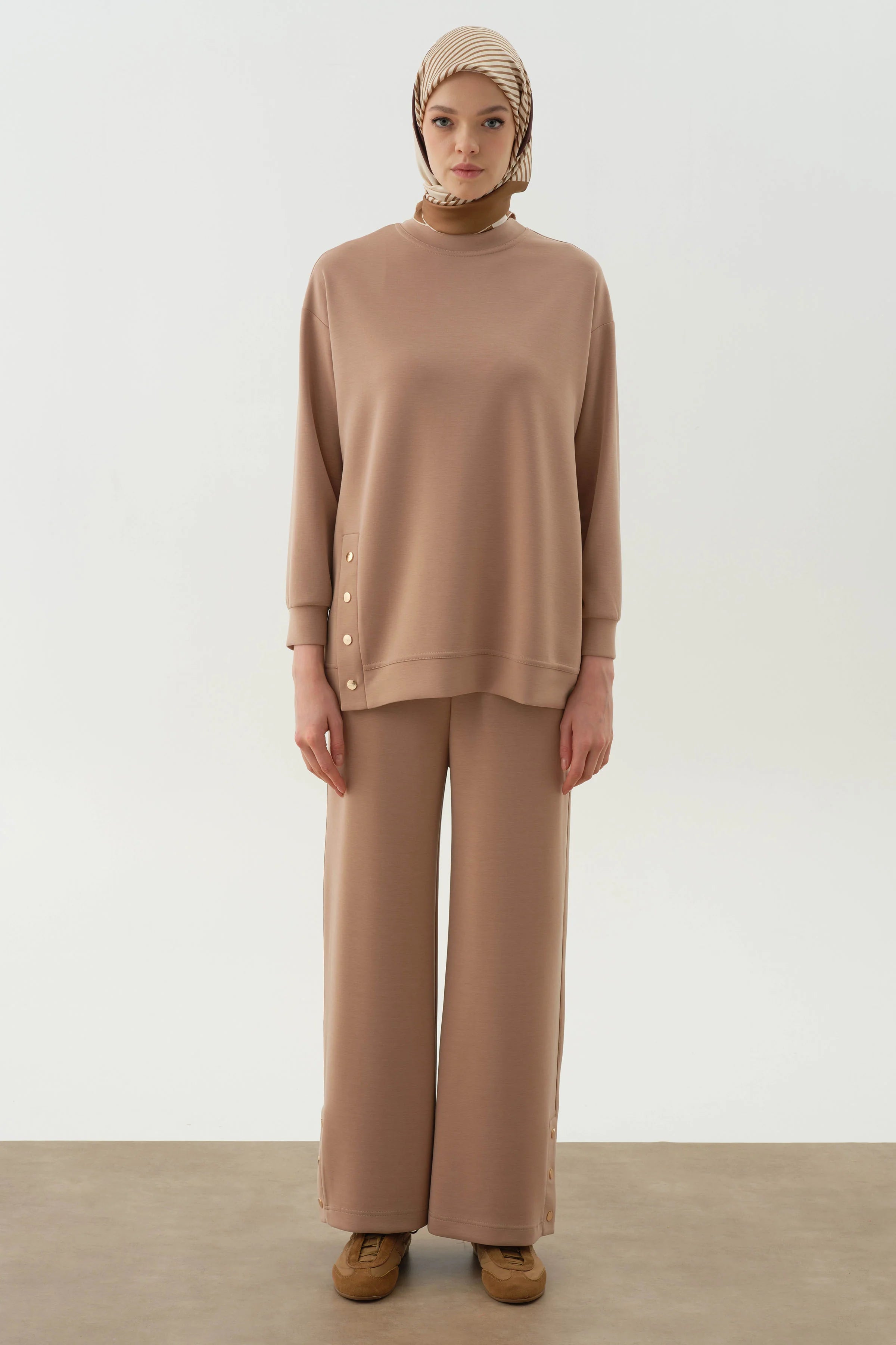 Yırtmaç kısmındaki çıtçıt detaylarıyla hareket kazanan bu örme tunik, sade tasarımına modern bir dokunuş ekler. Yumuşak dokusuyla gün boyu konfor sunarken, rahat kesimiyle şıklığı ve pratikliği bir arada sunar. Günlük stilinize sportif bir hava katar.