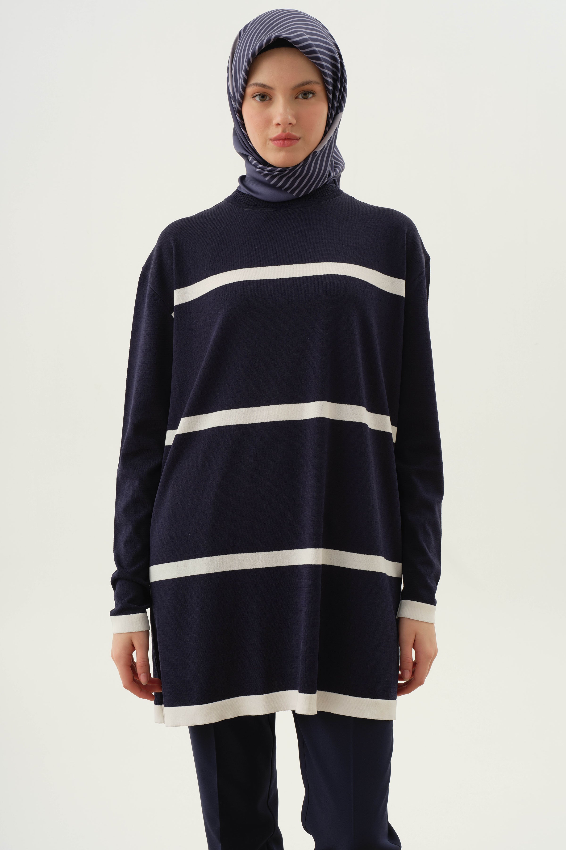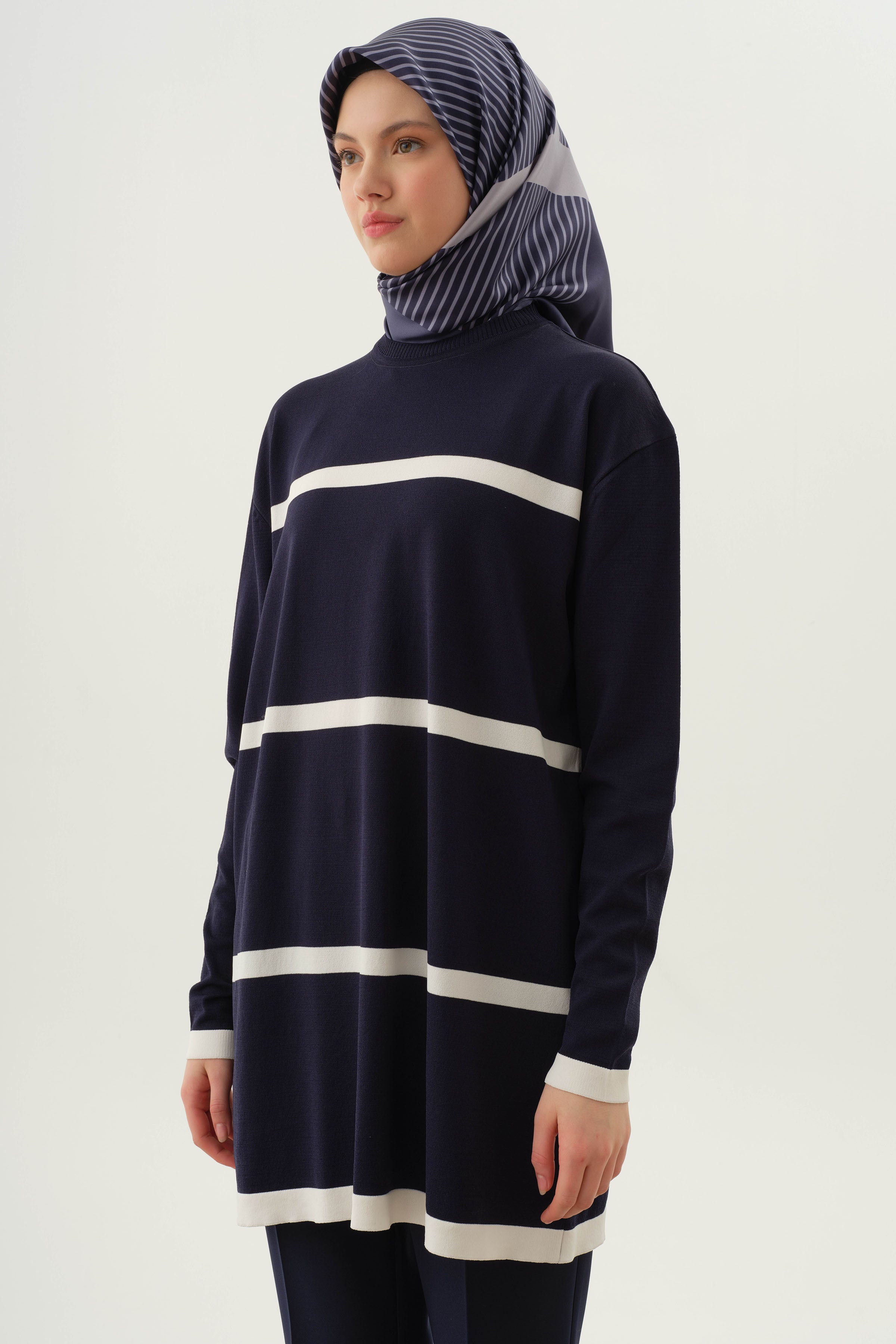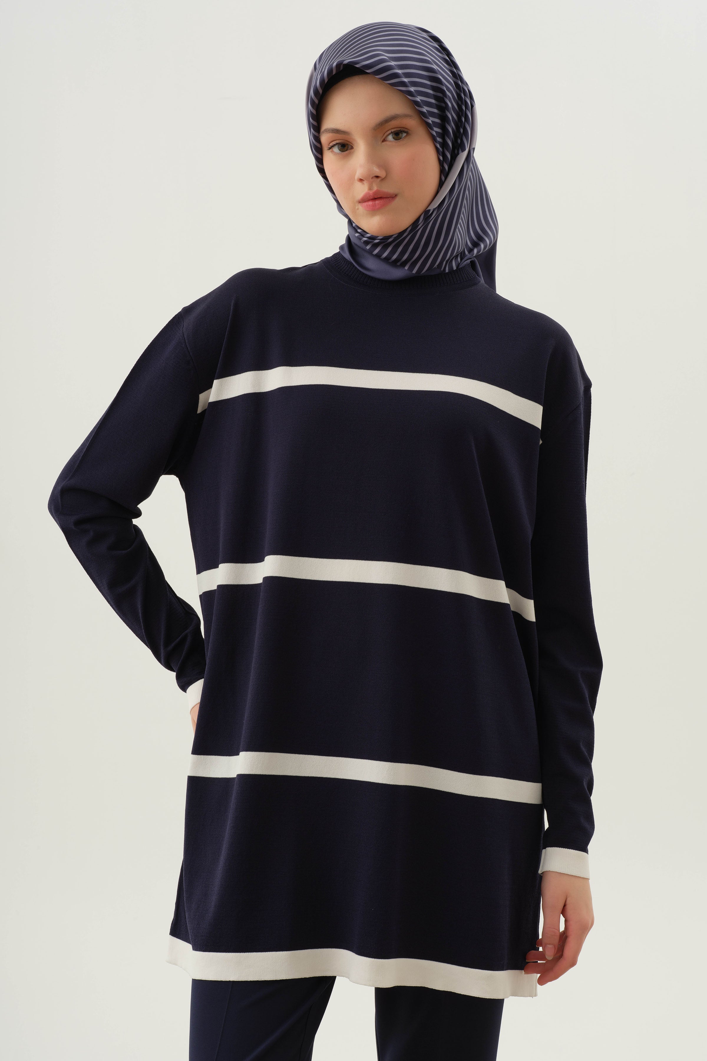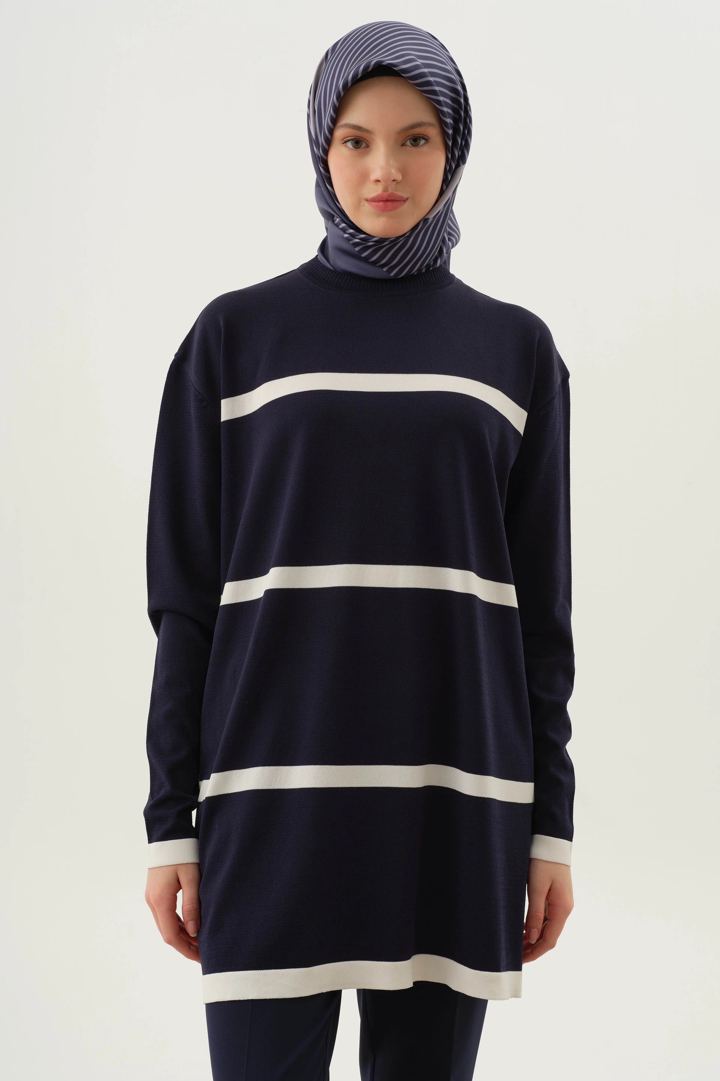 Minimal çizgi detaylarıyla hareket kazanan bu tunik, sade şıklığın en zarif halini yansıtır. Rahat kalıbı sayesinde gün boyu konfor sunar. Hem ofis hem günlük kullanım için ideal bir seçimdir.