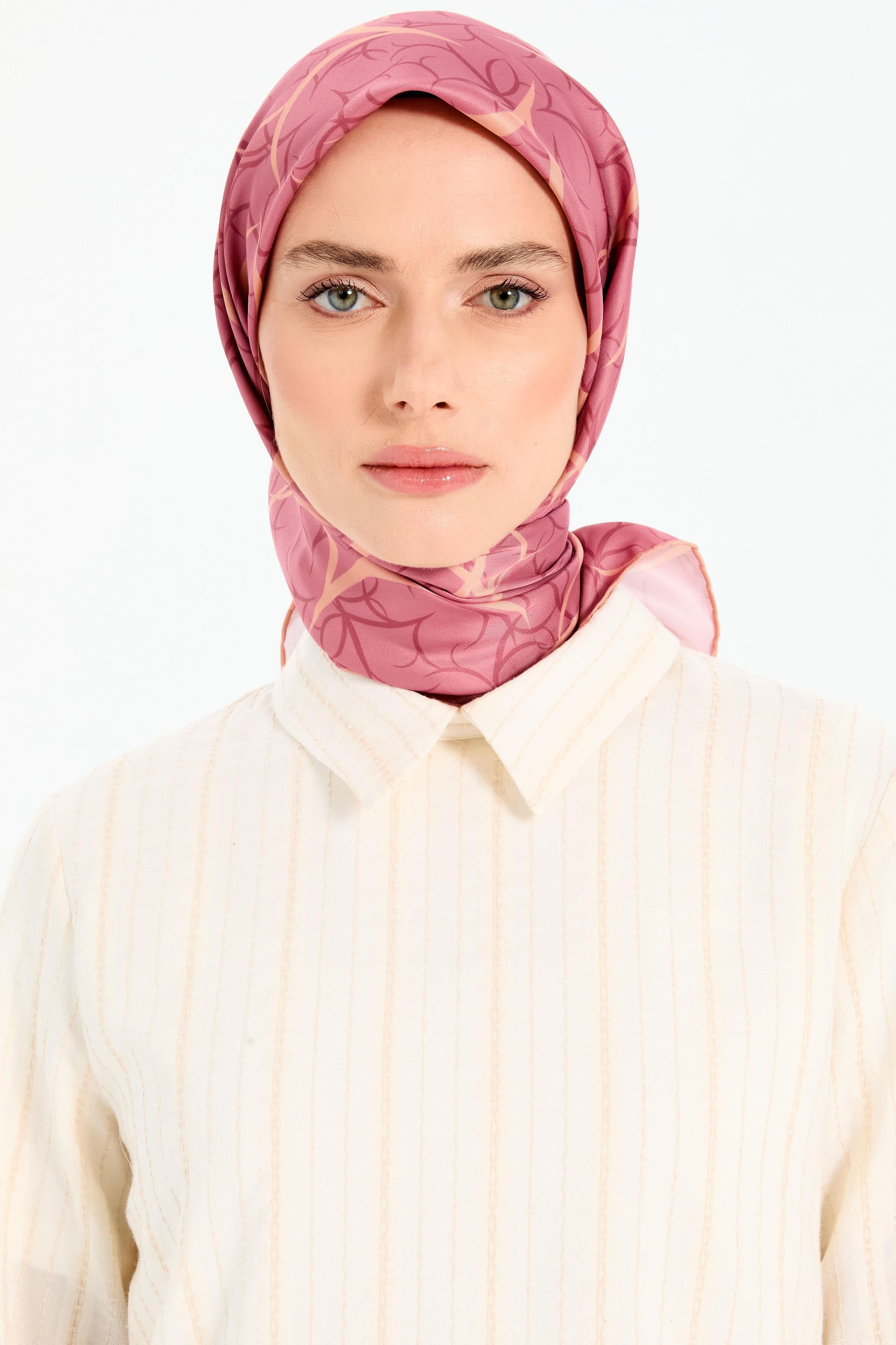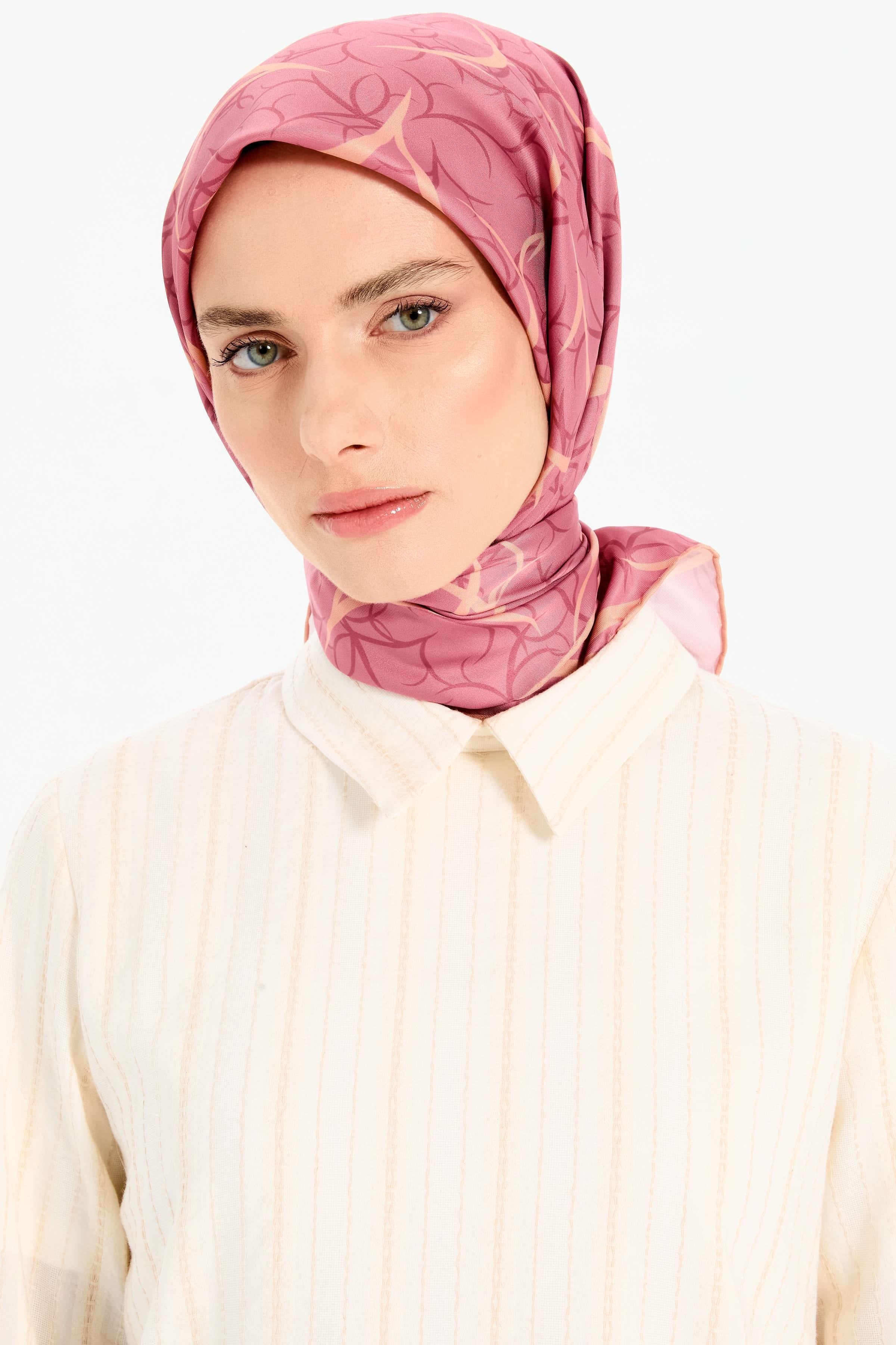 Dairesel Çizgi Desenli Stil Eşarp - Gül Kurusu