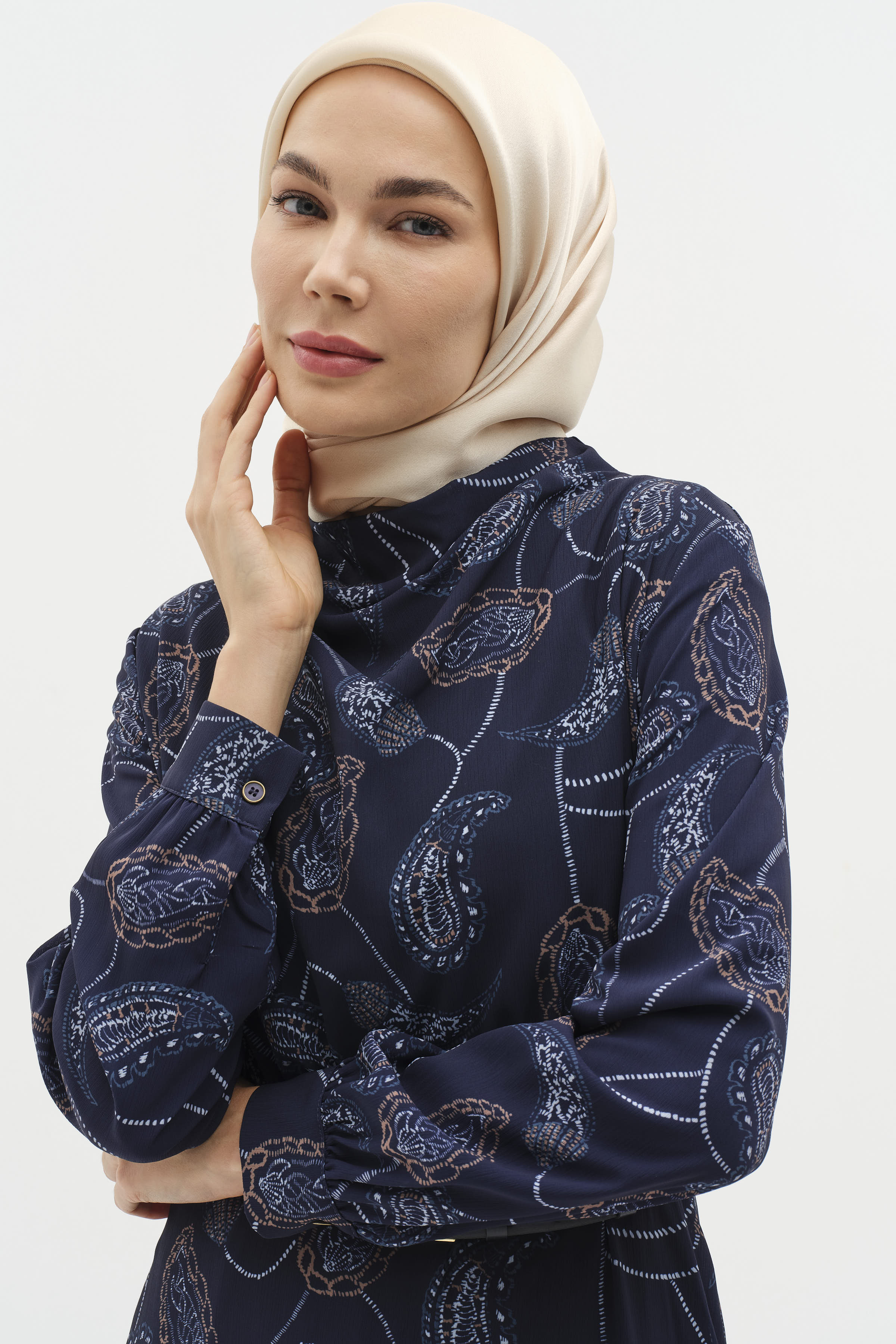 Degaje yakasıyla zarif bir duruş sergileyen desenli elbise, feminen ve şık bir tarz sunuyor. Akıcı kesimi ve yumuşak dokusuyla gün boyu konfor sağlarken, göz alıcı desenleriyle dikkat çekiyor.