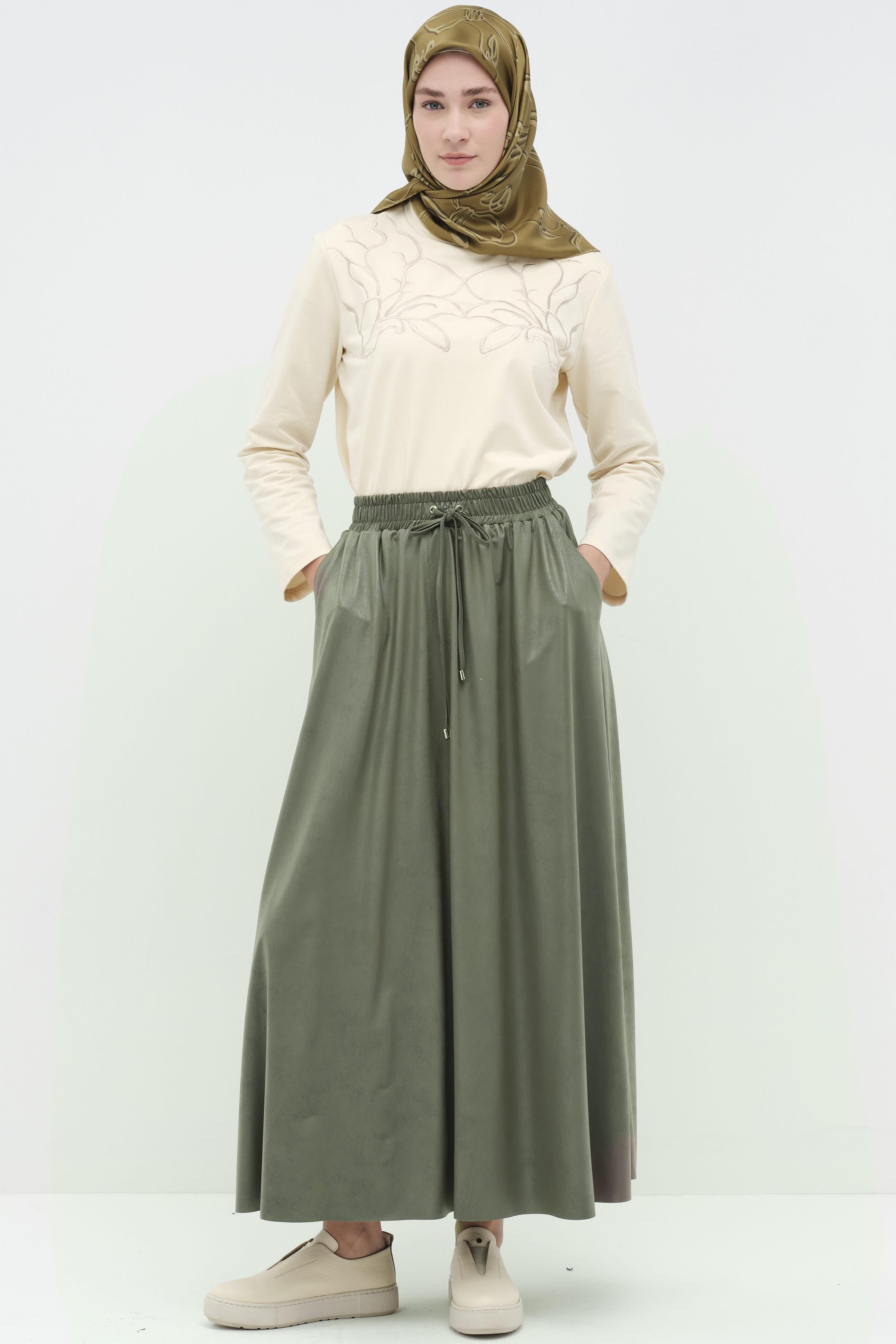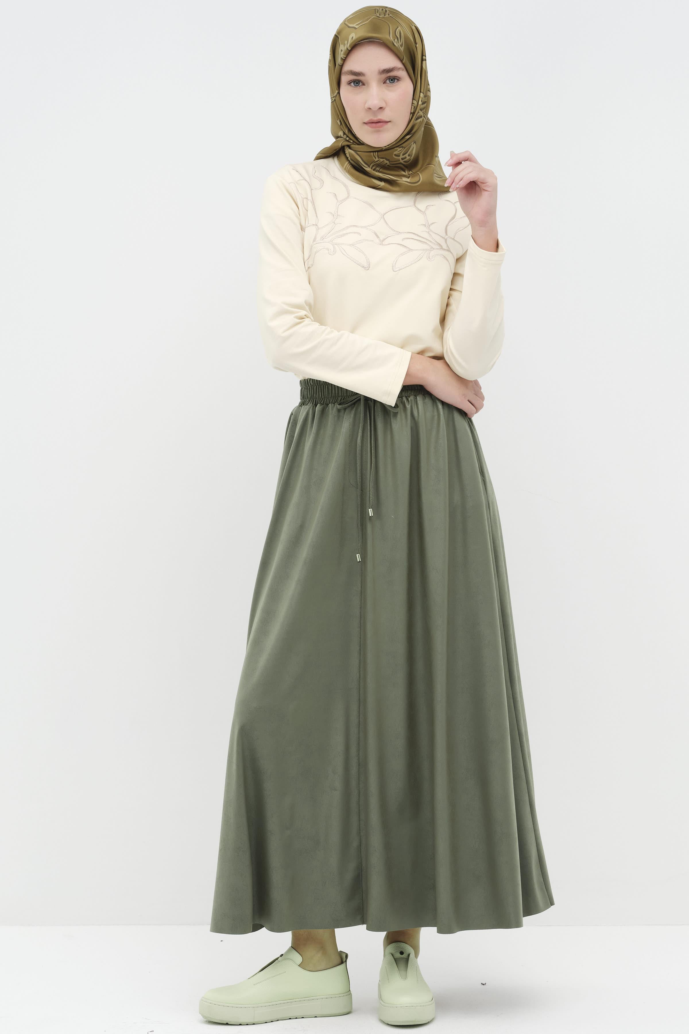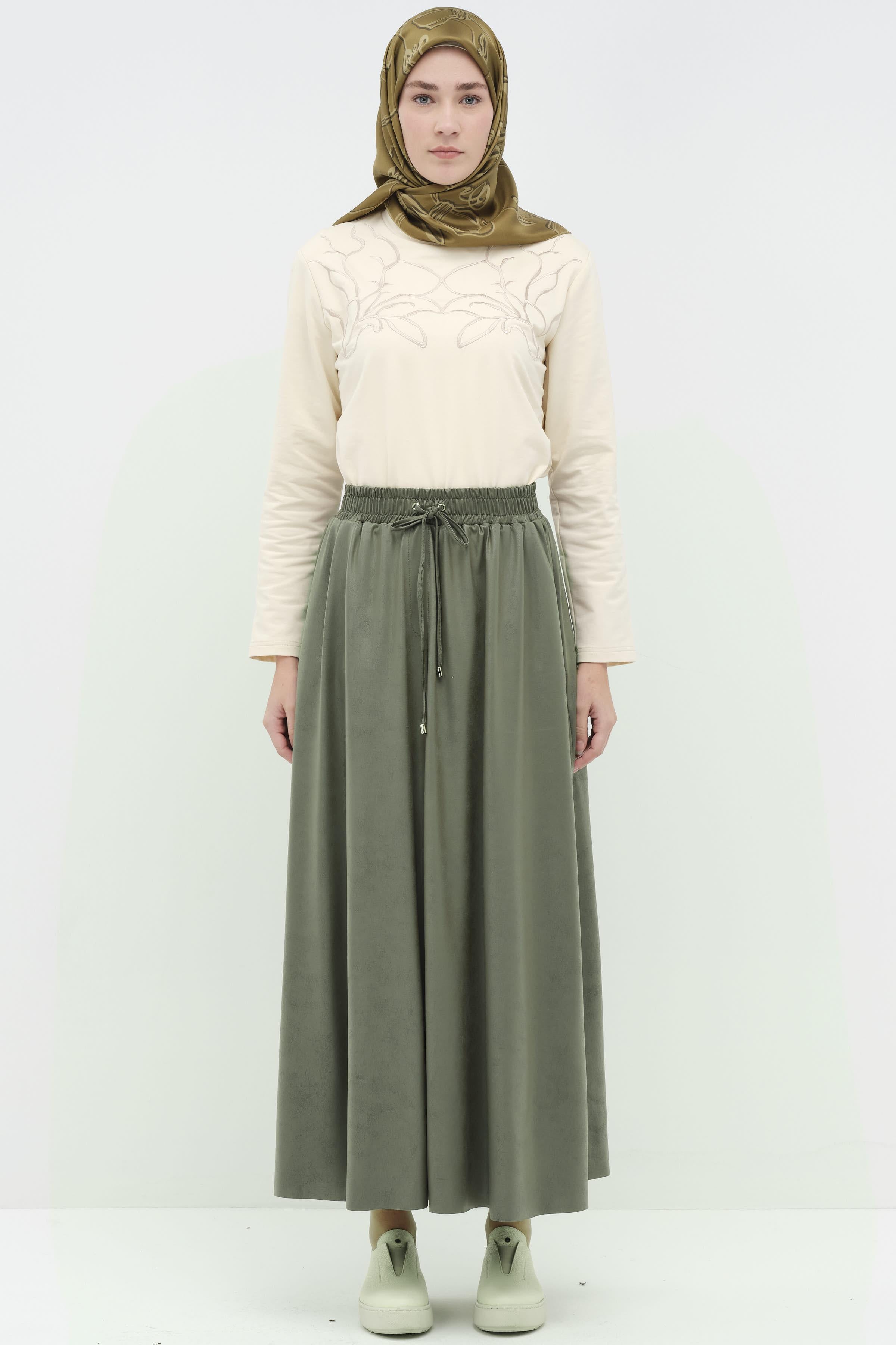 Dört Parçalı Cepli Etek - Haki