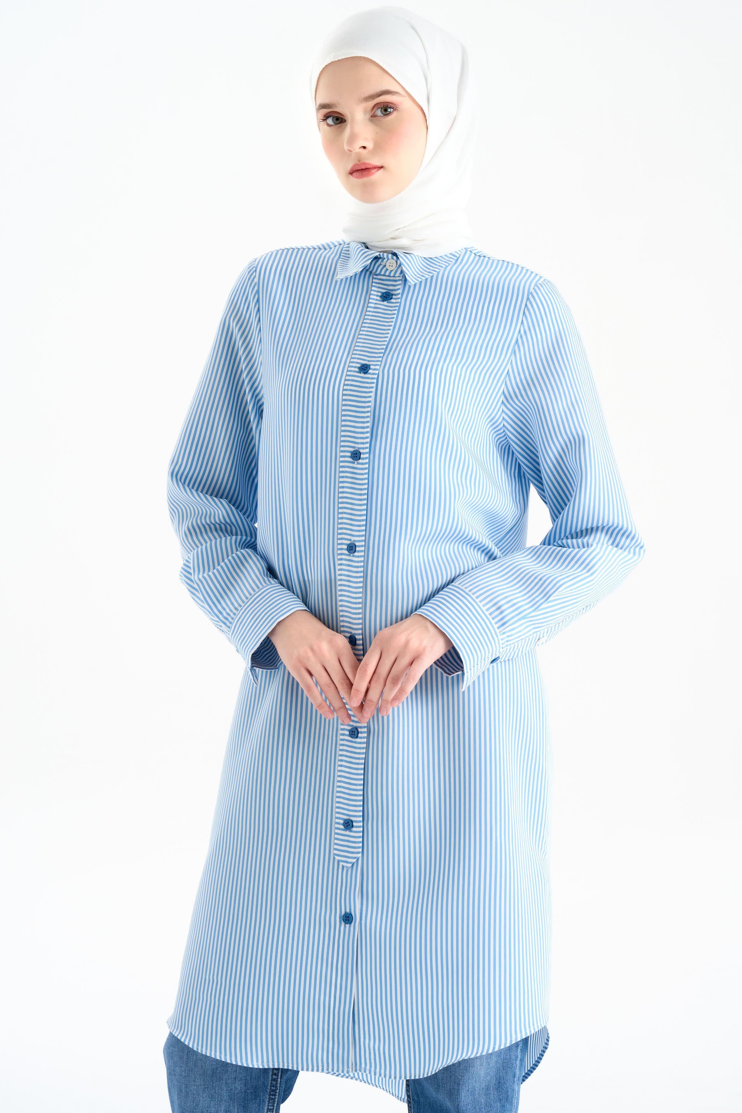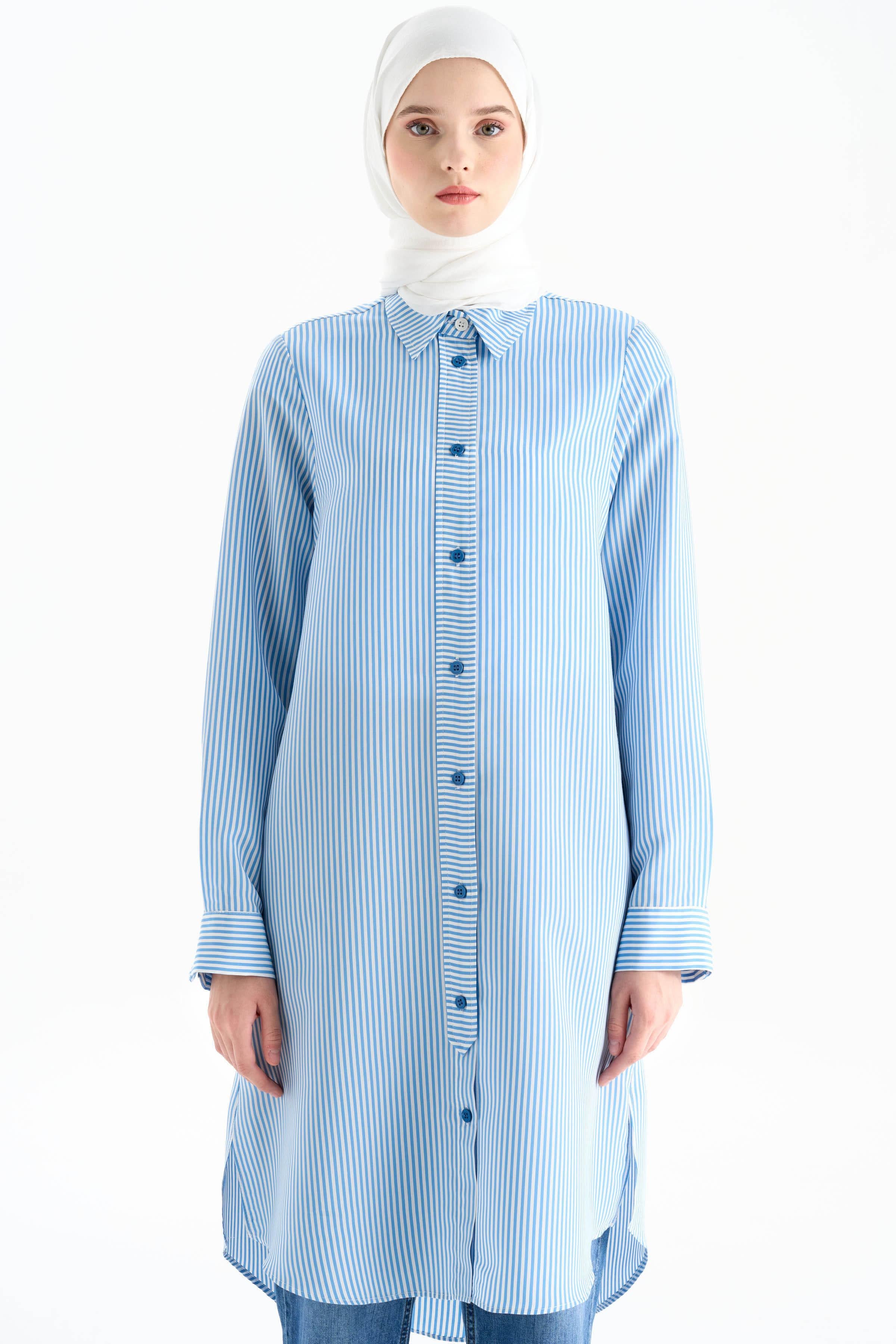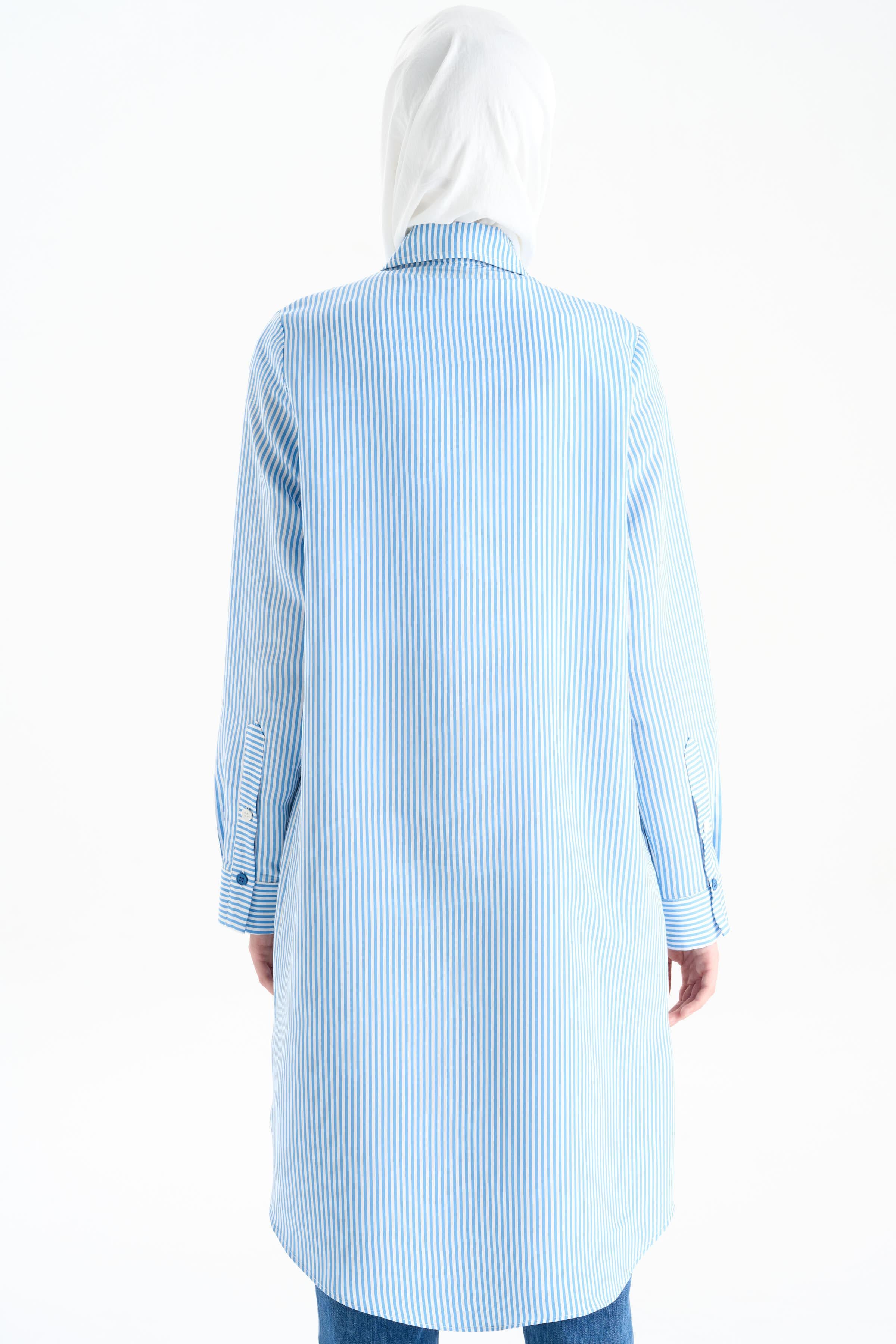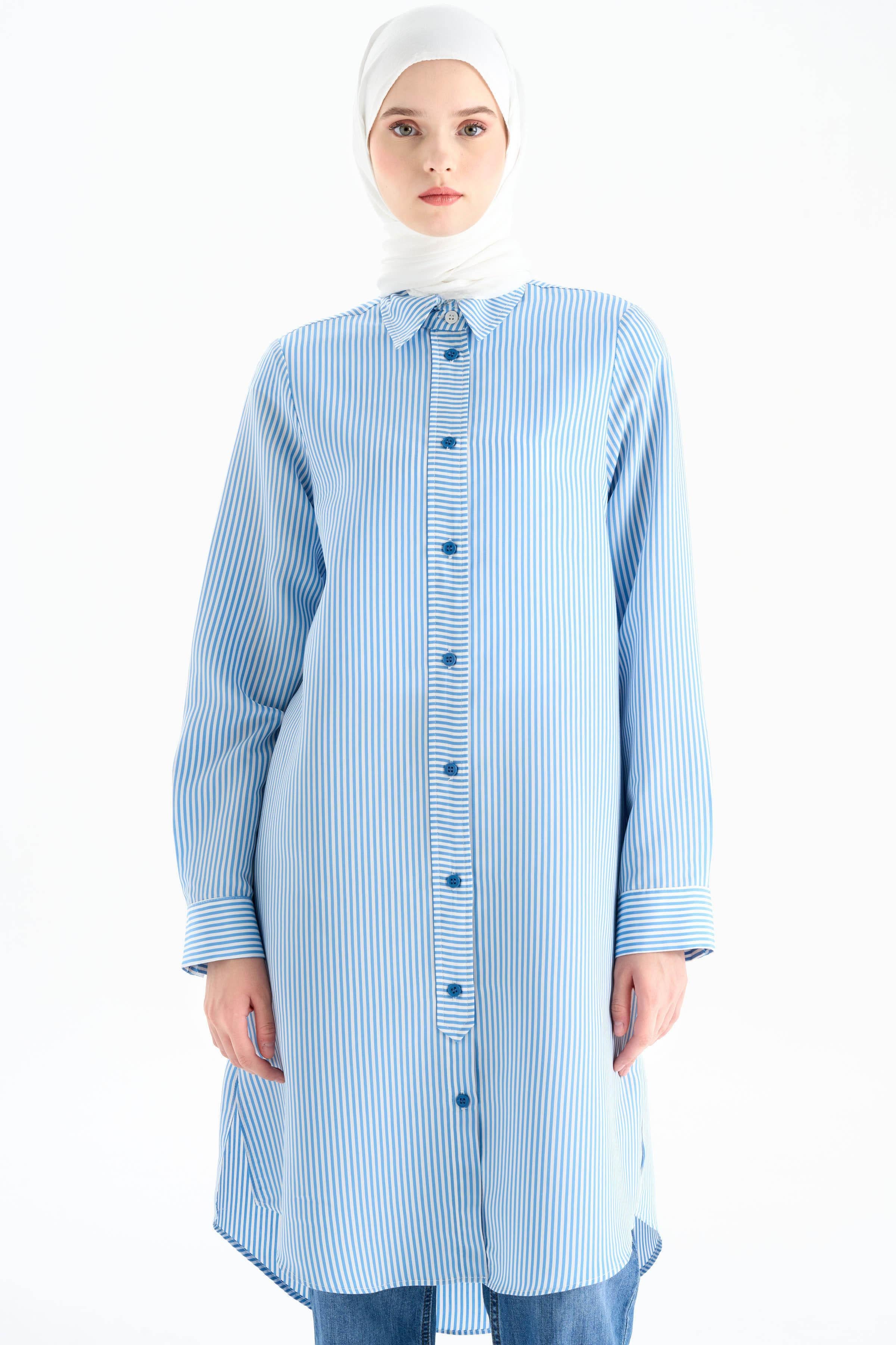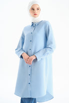 Düğme Detaylı Patlı Tunik - Açık Mavi