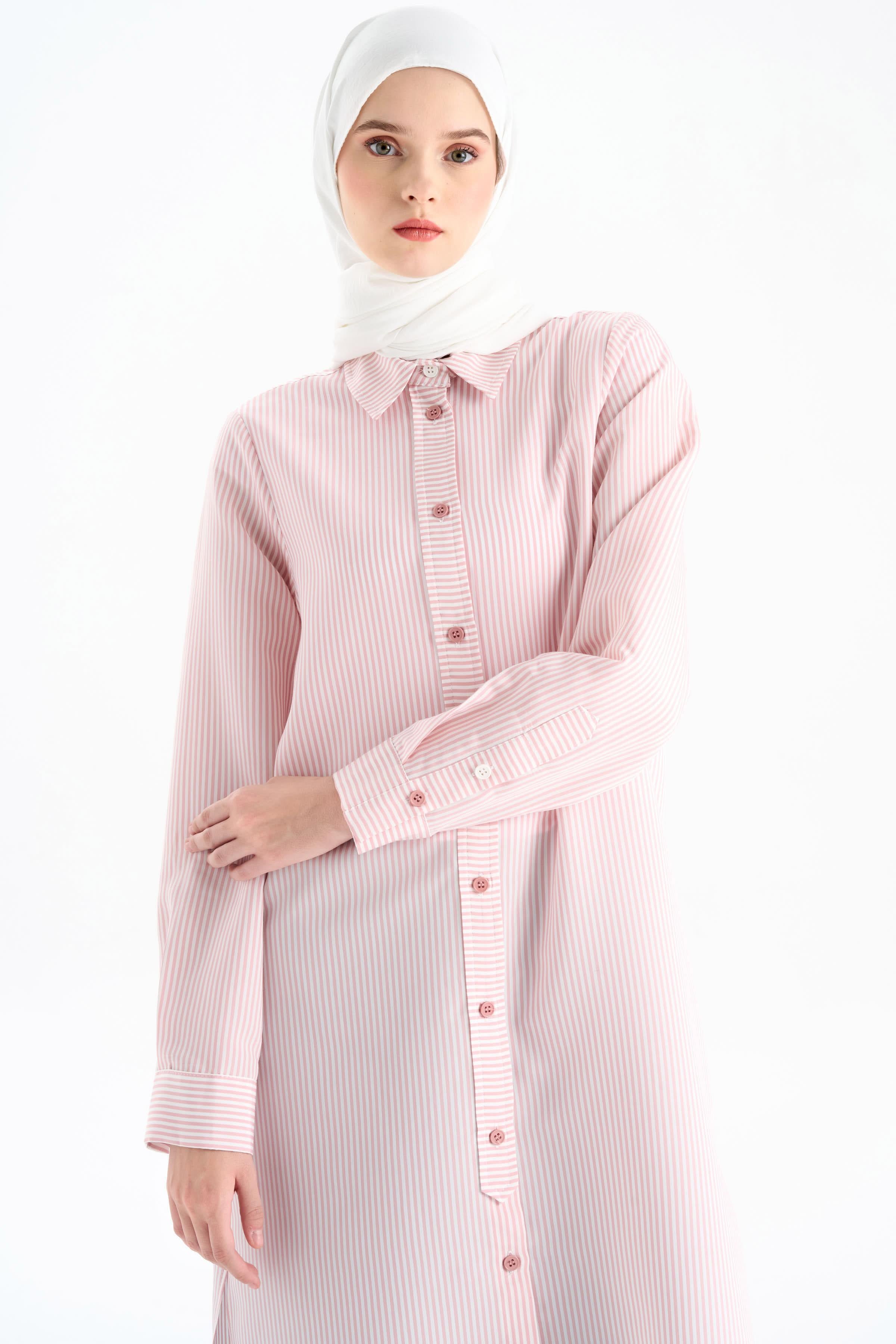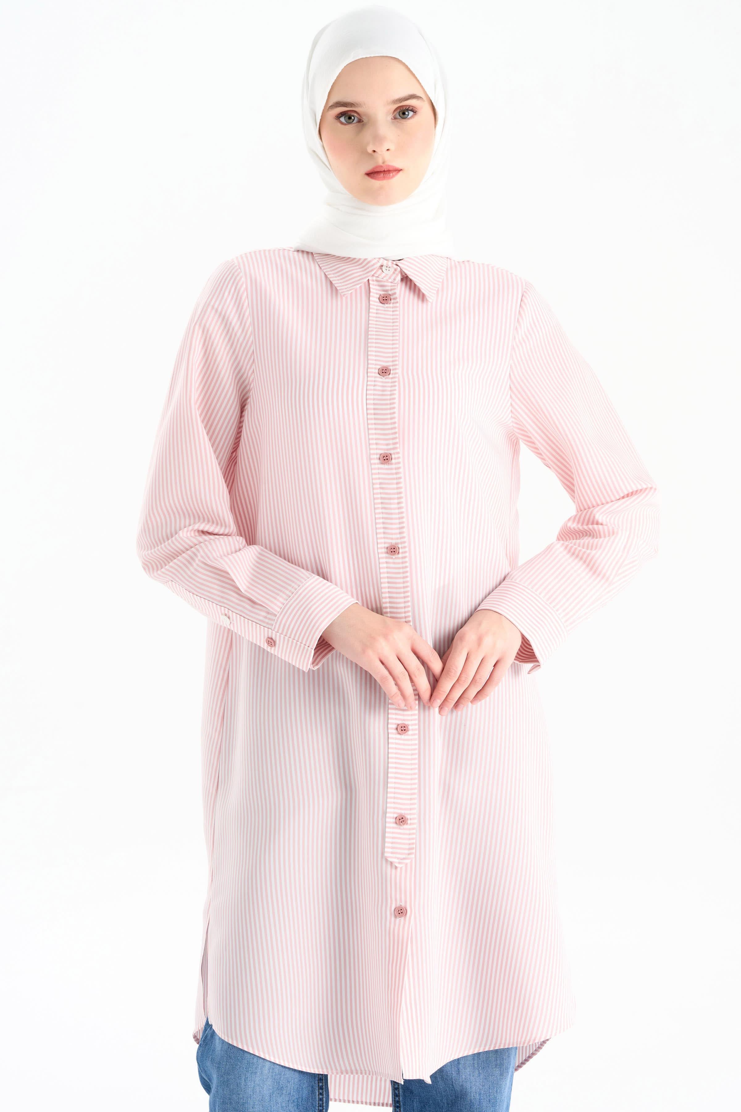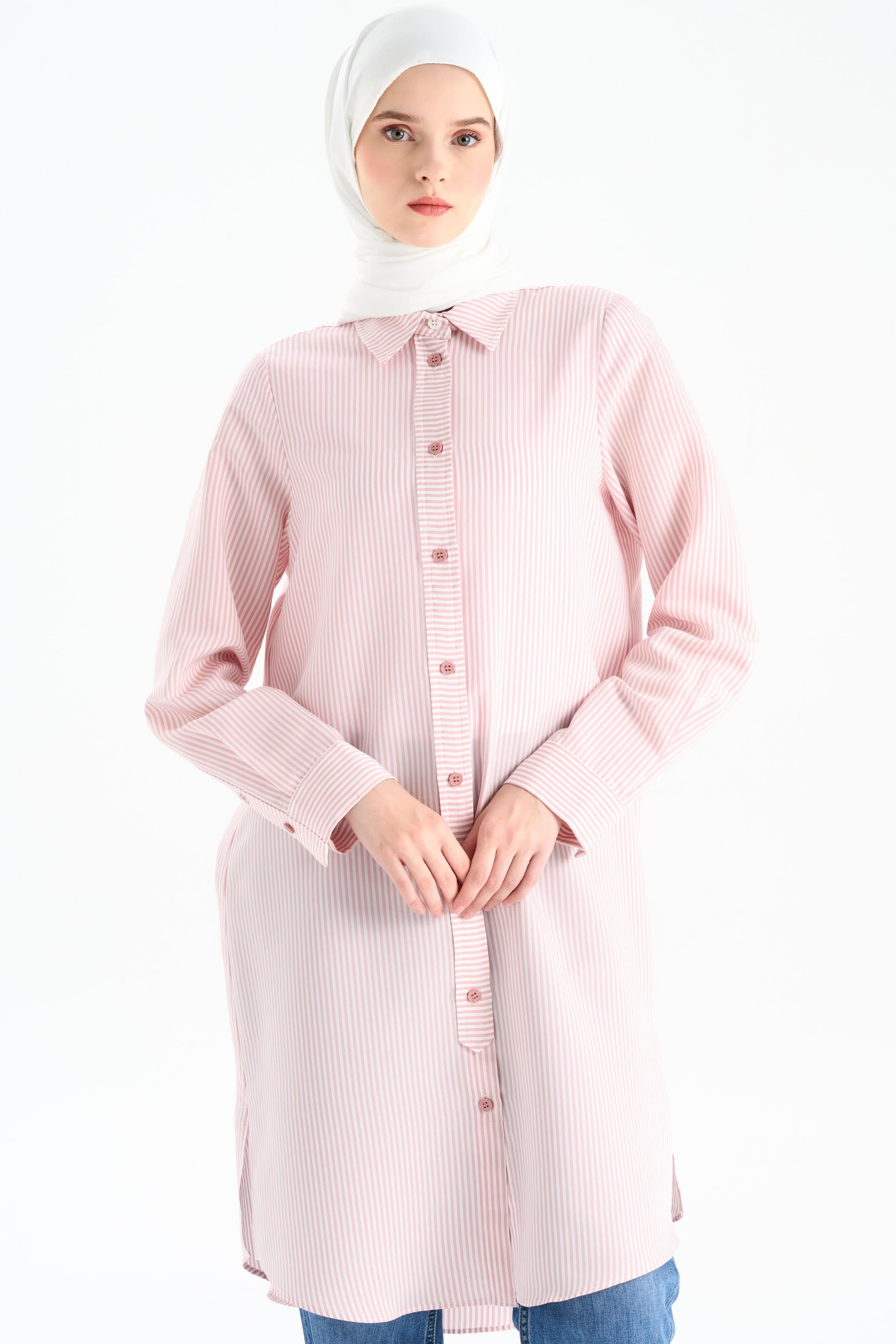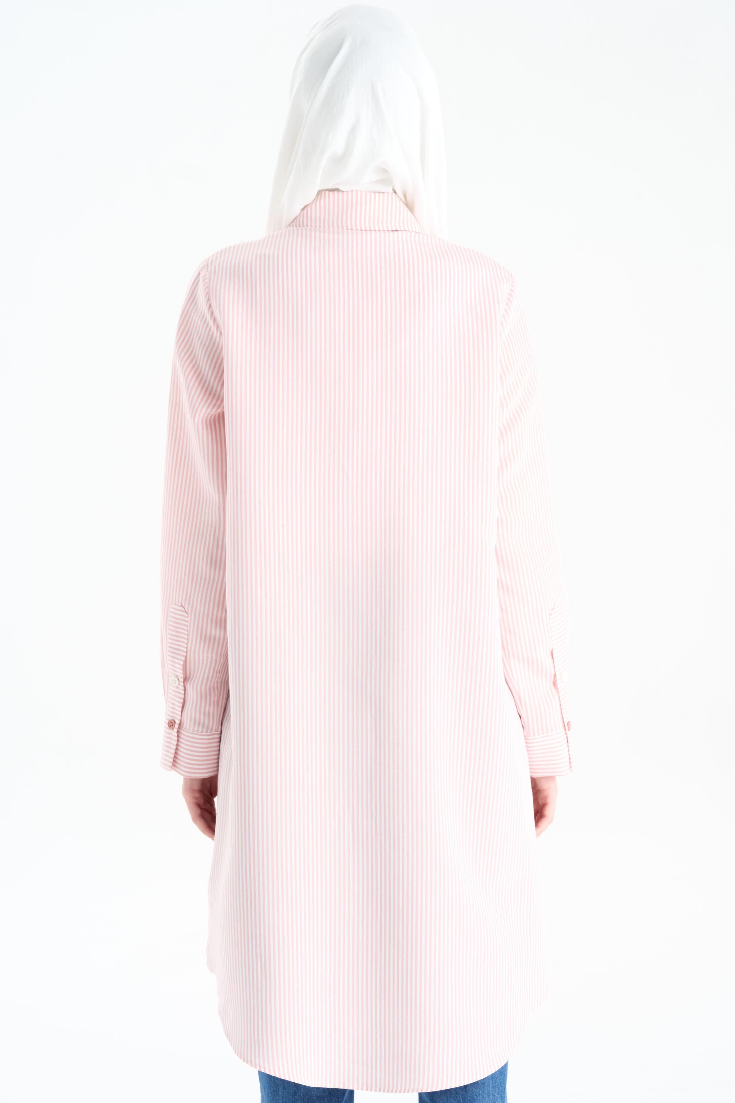 Düğme Detaylı Patlı Tunik - Pudra