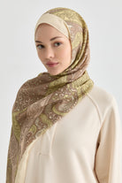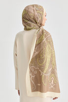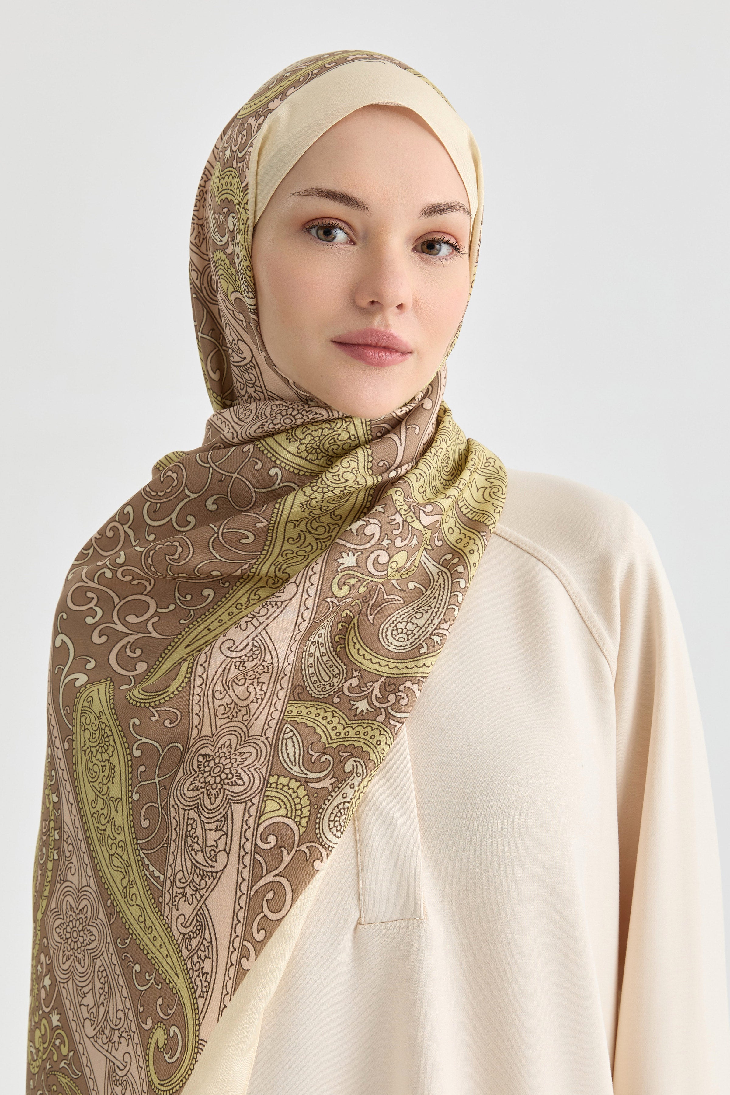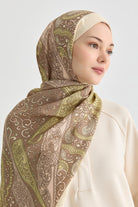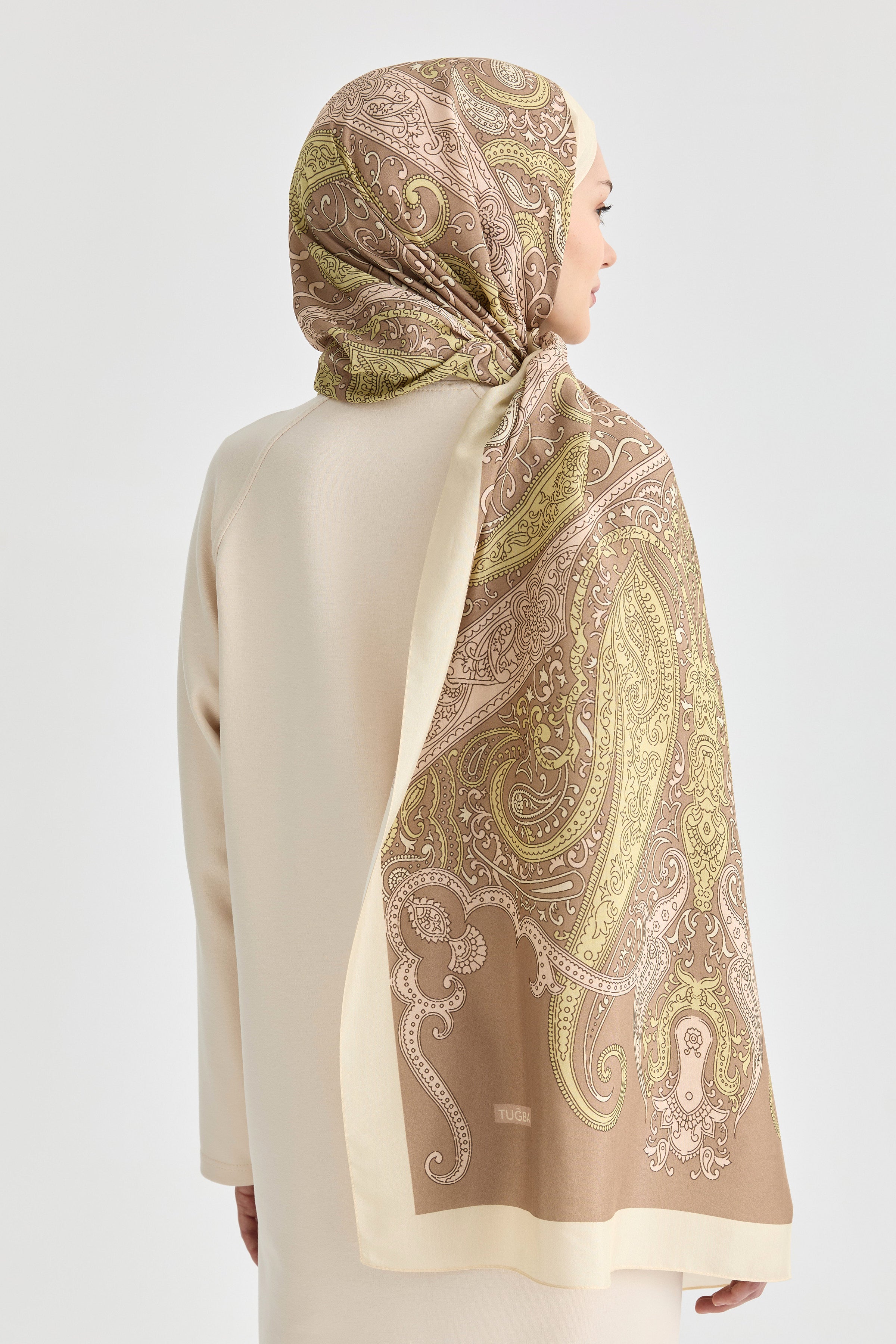 Etnik motiflerin zarif bir uyumla işlendiği bu natural şal, kültürel estetiği modern bir çizgide yeniden yorumlar. Yumuşak ve doğal dokusu ciltle mükemmel bir temas sağlarken, hafif yapısı gün boyu konfor sunar.