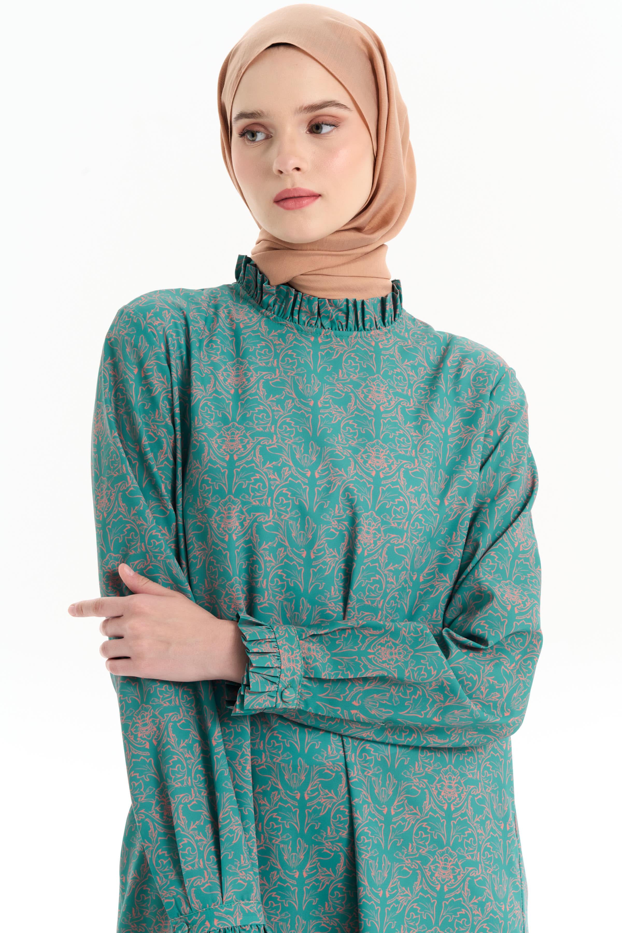 Fırfır detayları, tasarıma hareket katarken, zarif desenler ise sofistike bir görünüm sunuyor.