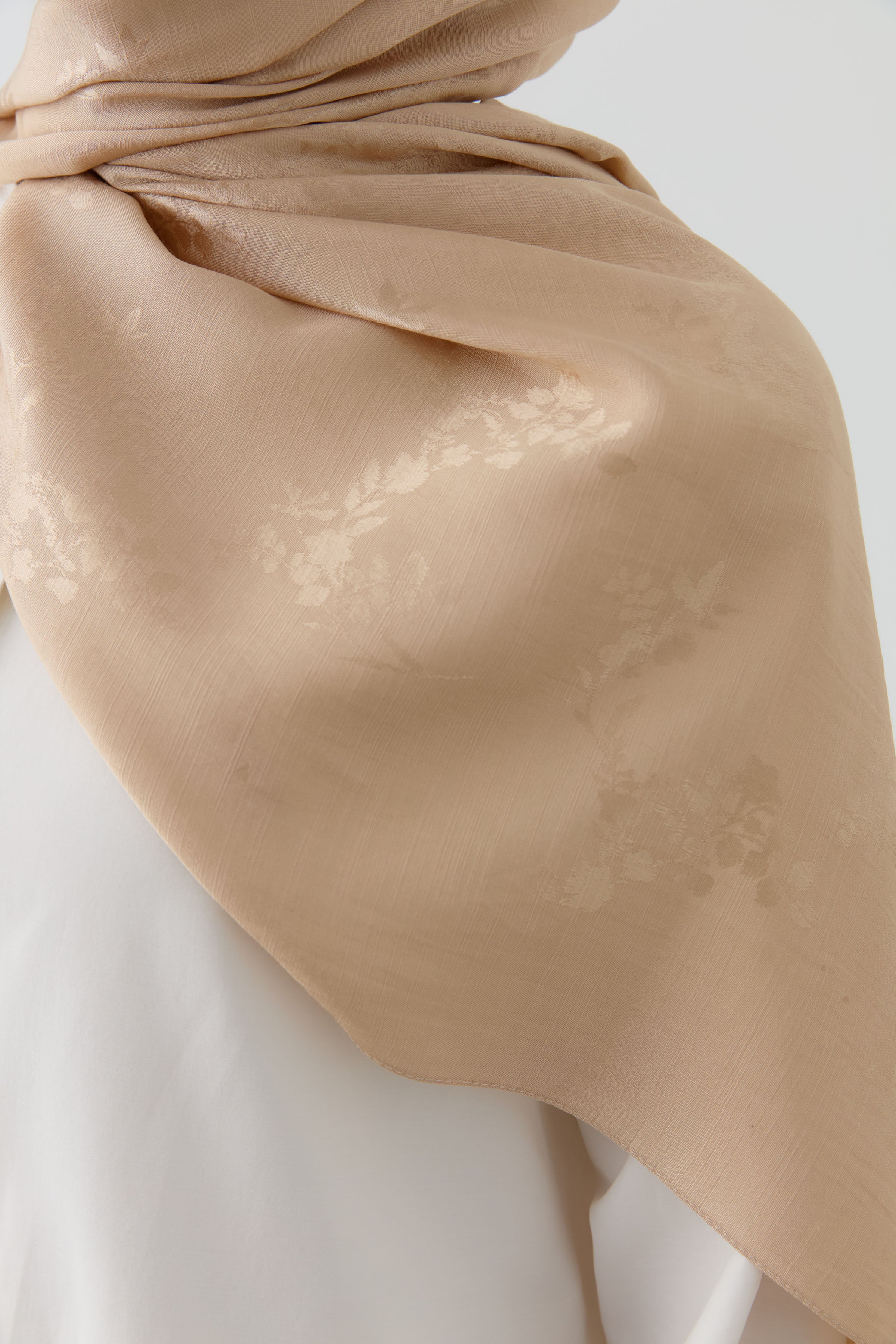 Doğal dokusu ve jakar zemine işlenmiş floral desenleriyle öne çıkan bu şal, zarif ve feminen bir stil sunar. Hafif yapısıyla gün boyu konfor sağlarken, her kombine sade bir şıklık katar.