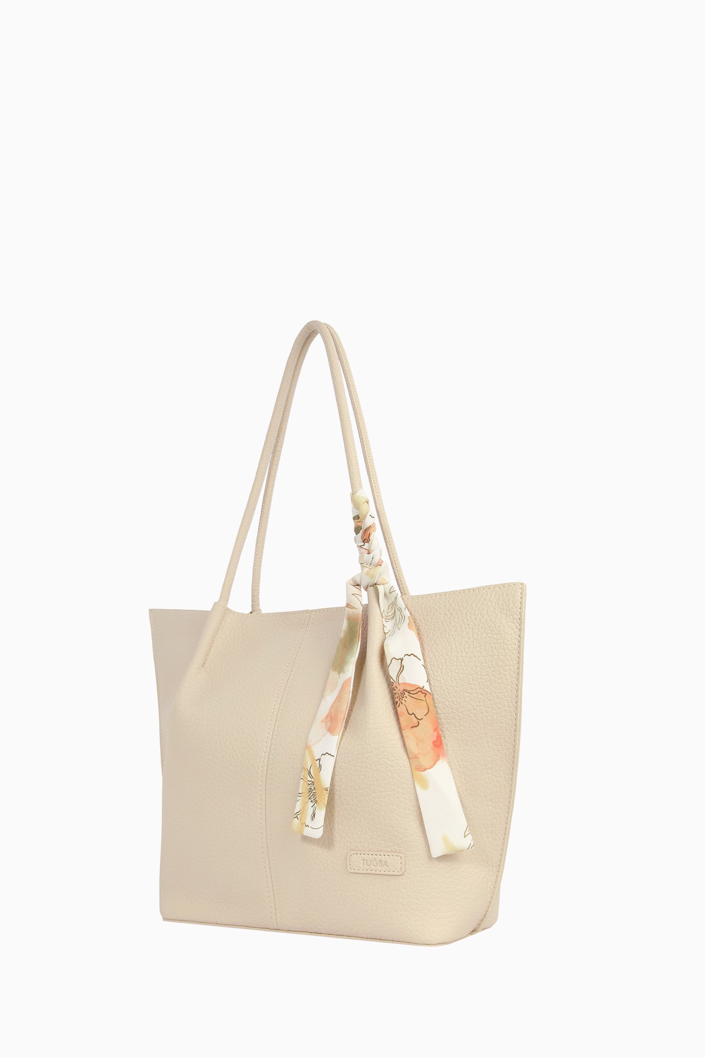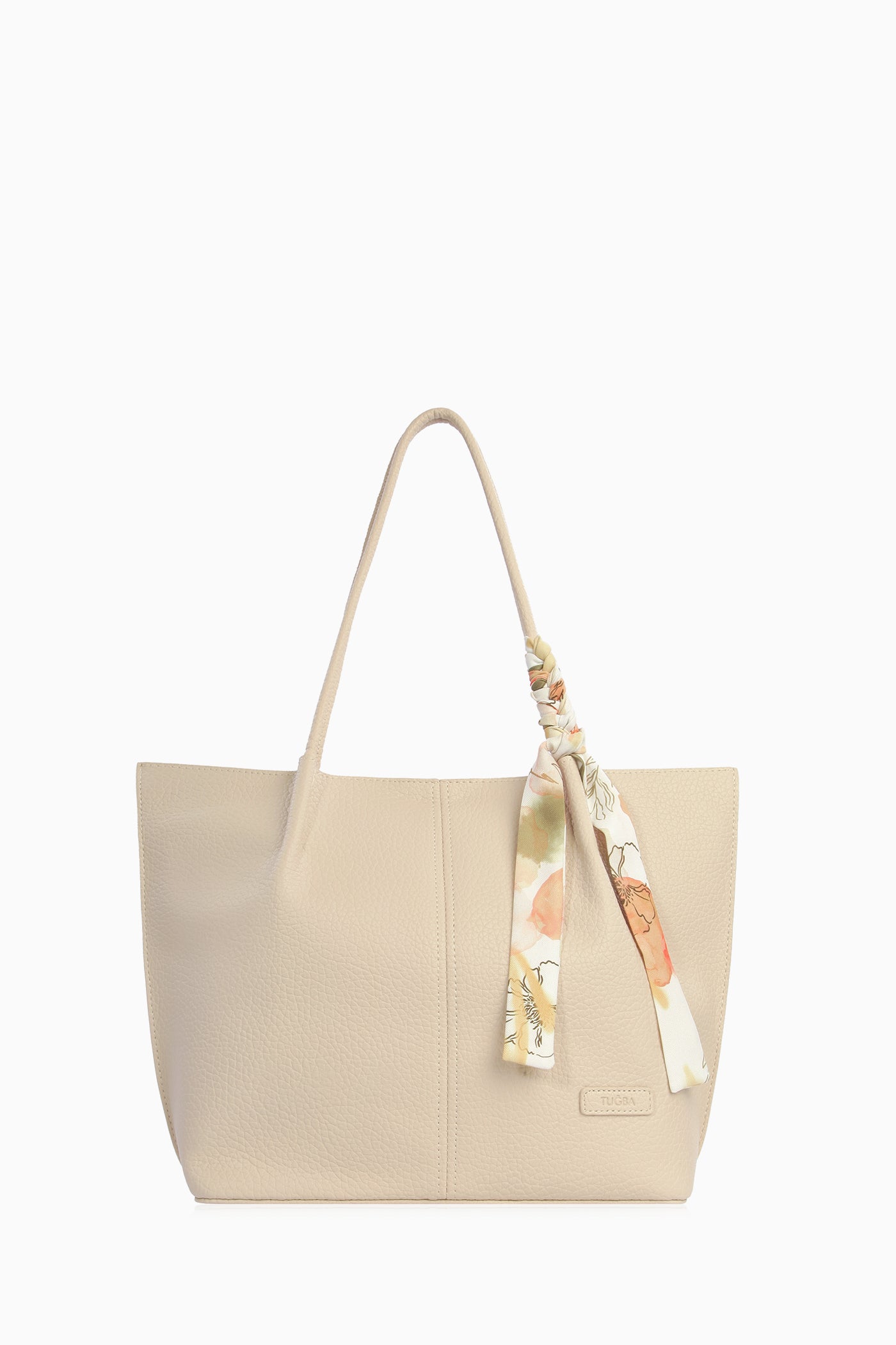 Sap kısmına bağlanan şık fular detayıyla sıradan çanta formlarının ötesine geçen bu model, stilinize özgün ve feminen bir hava katar.