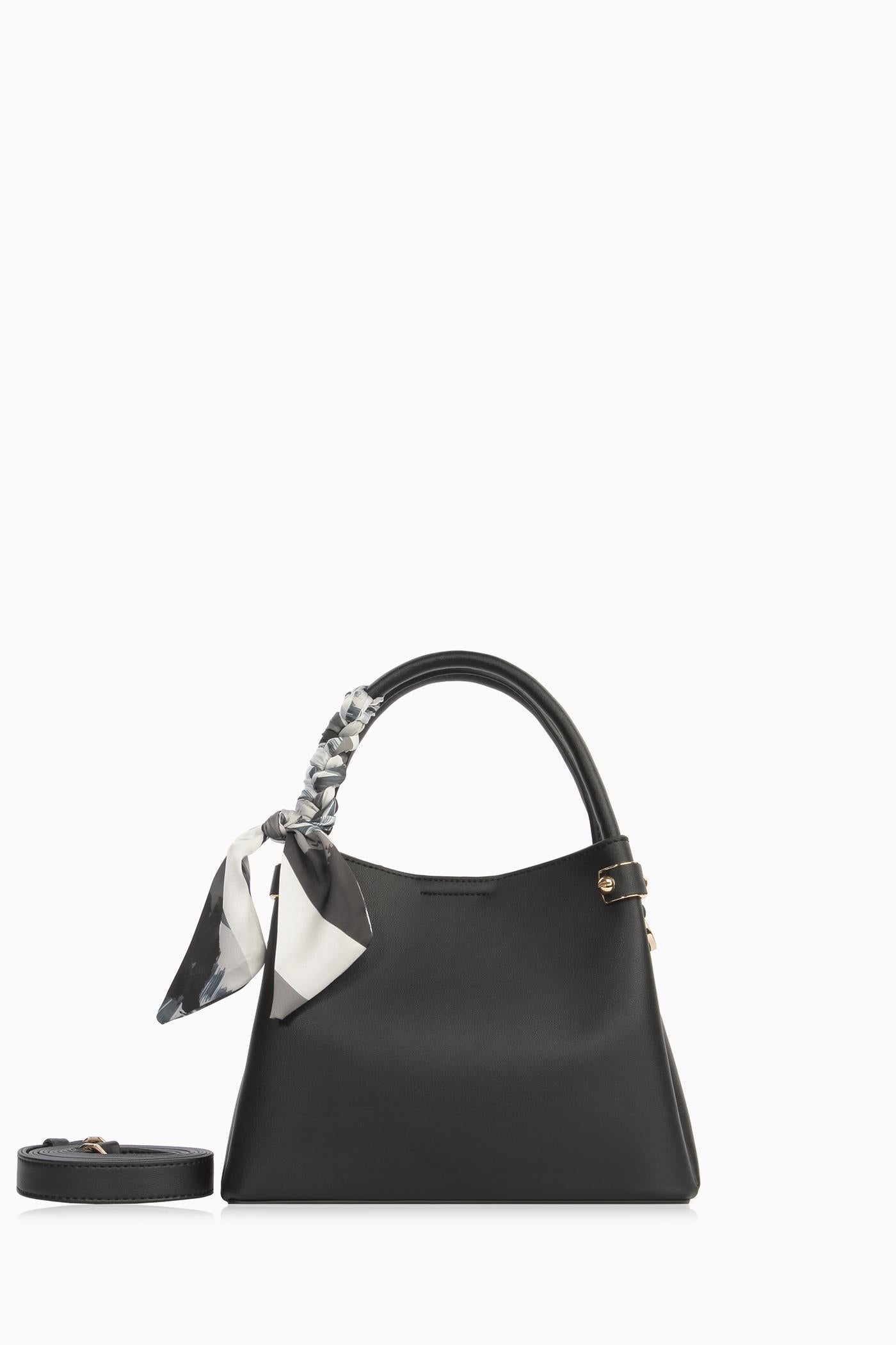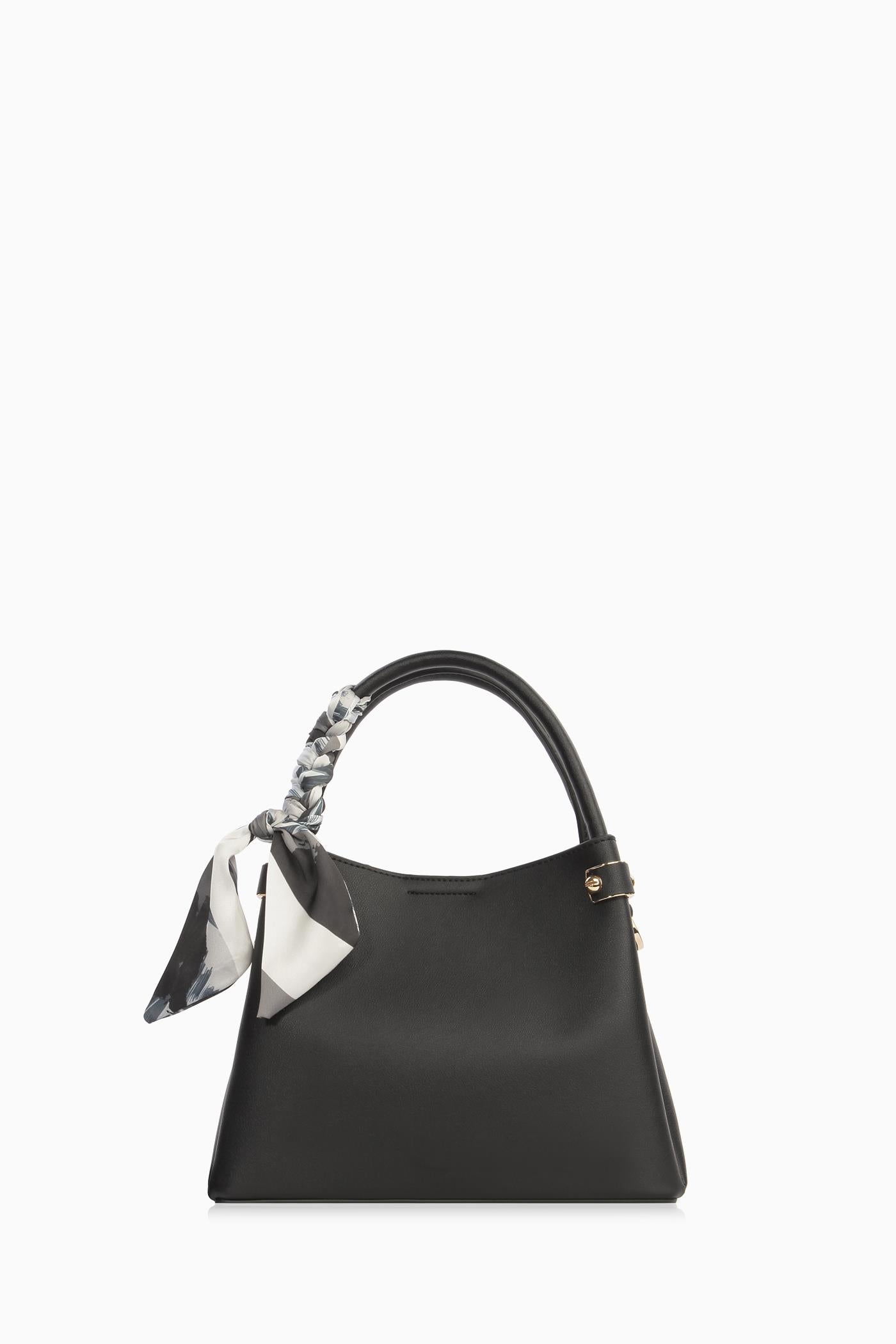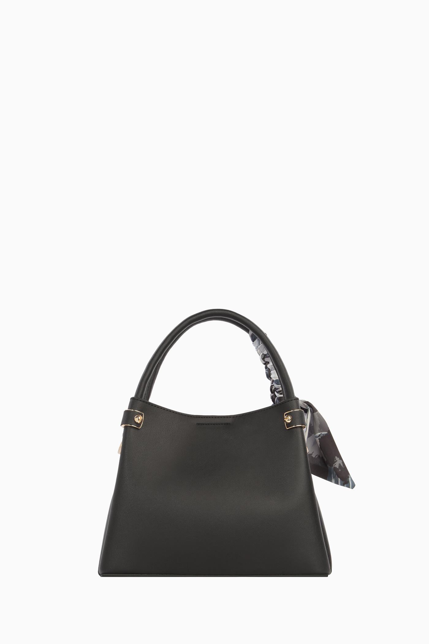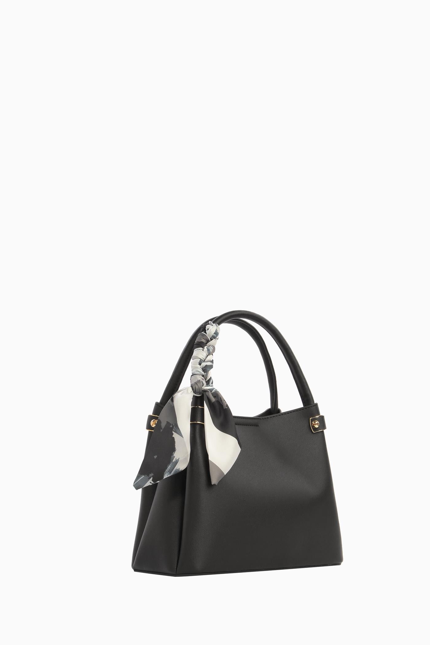 Fular Detaylı Çift Kulplu Çanta - Siyah