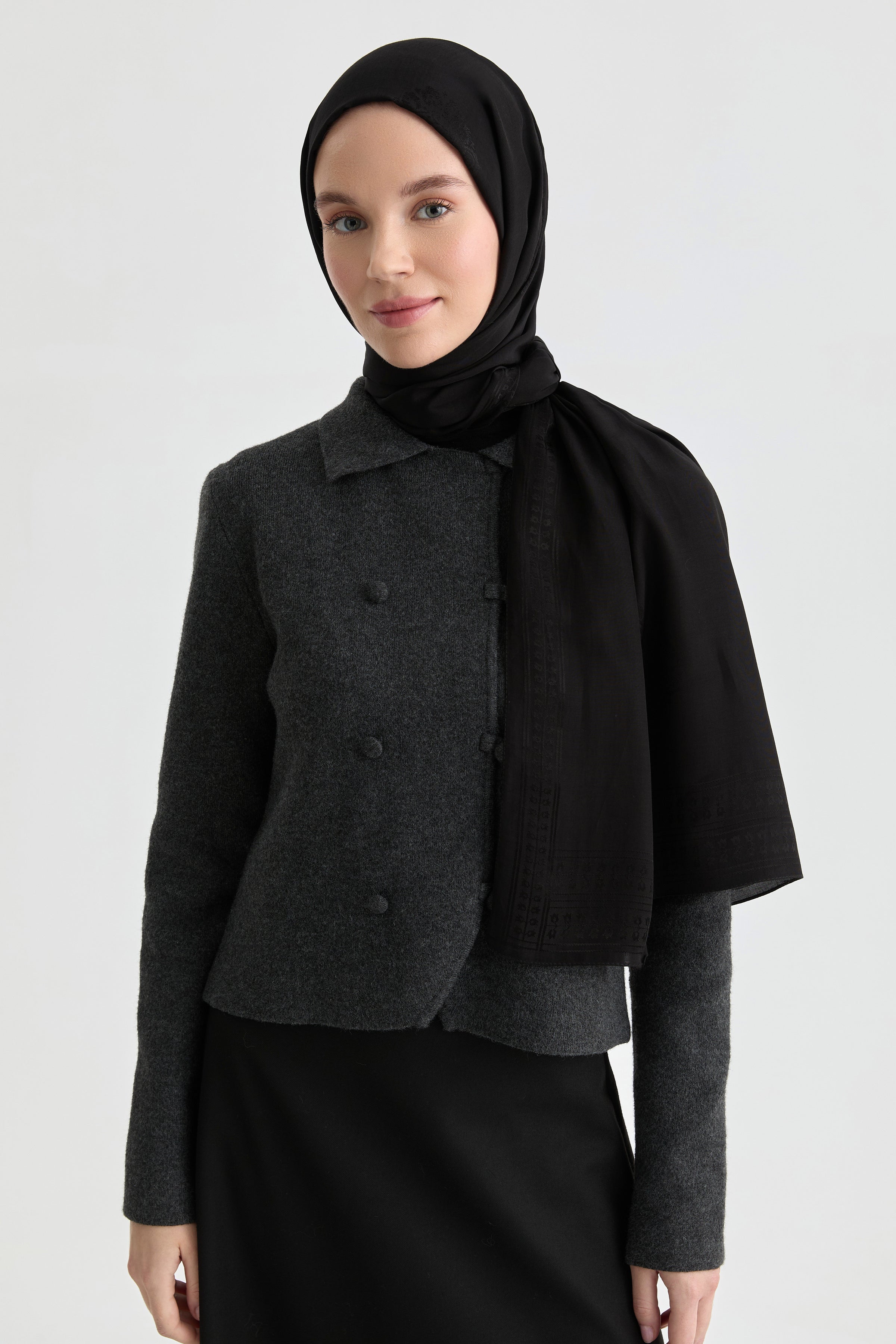 Zengin jakar dokusunun ince ışıltısıyla öne çıkan Füruzan şal, dokusundaki derinlik ve desen oyunlarıyla sofistike bir şıklık sunar. Hafif ama etkileyici yapısı, her kombine zarif bir dokunuş kazandırırken, akıcı duruşu gün boyu konfor sağlar.