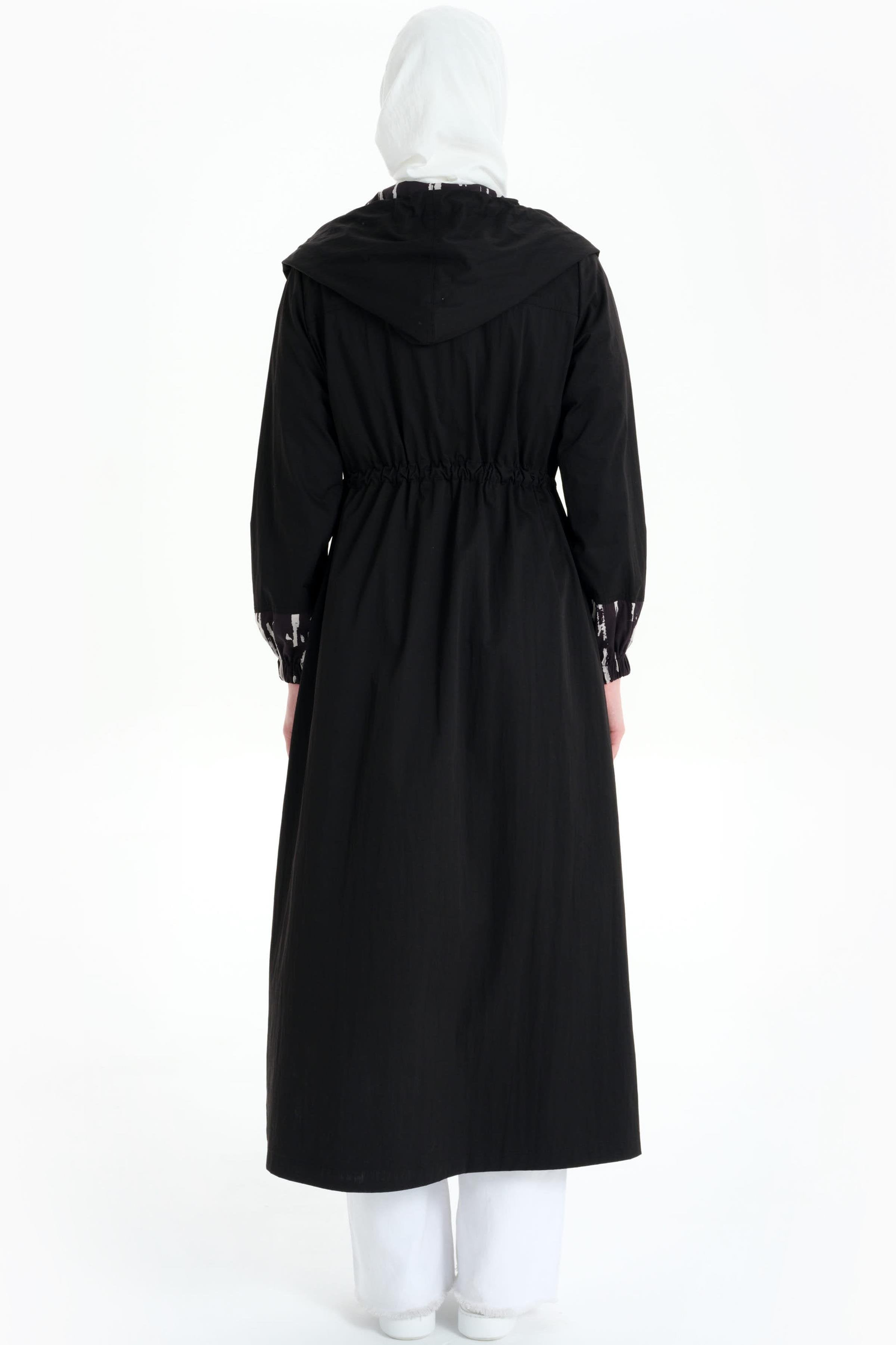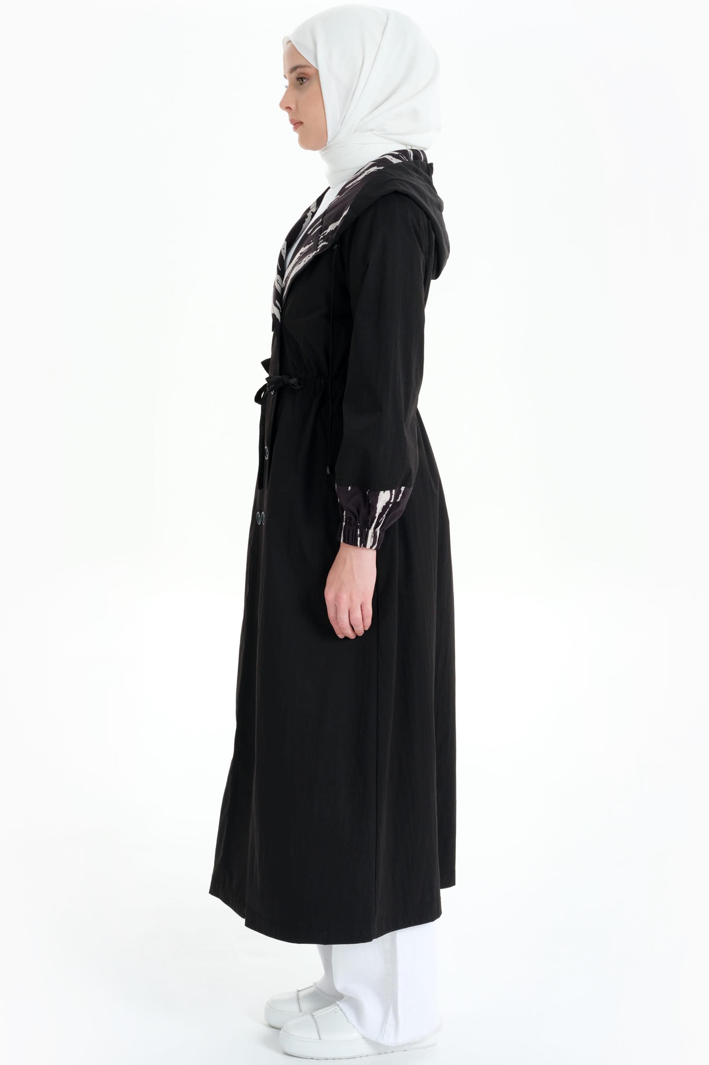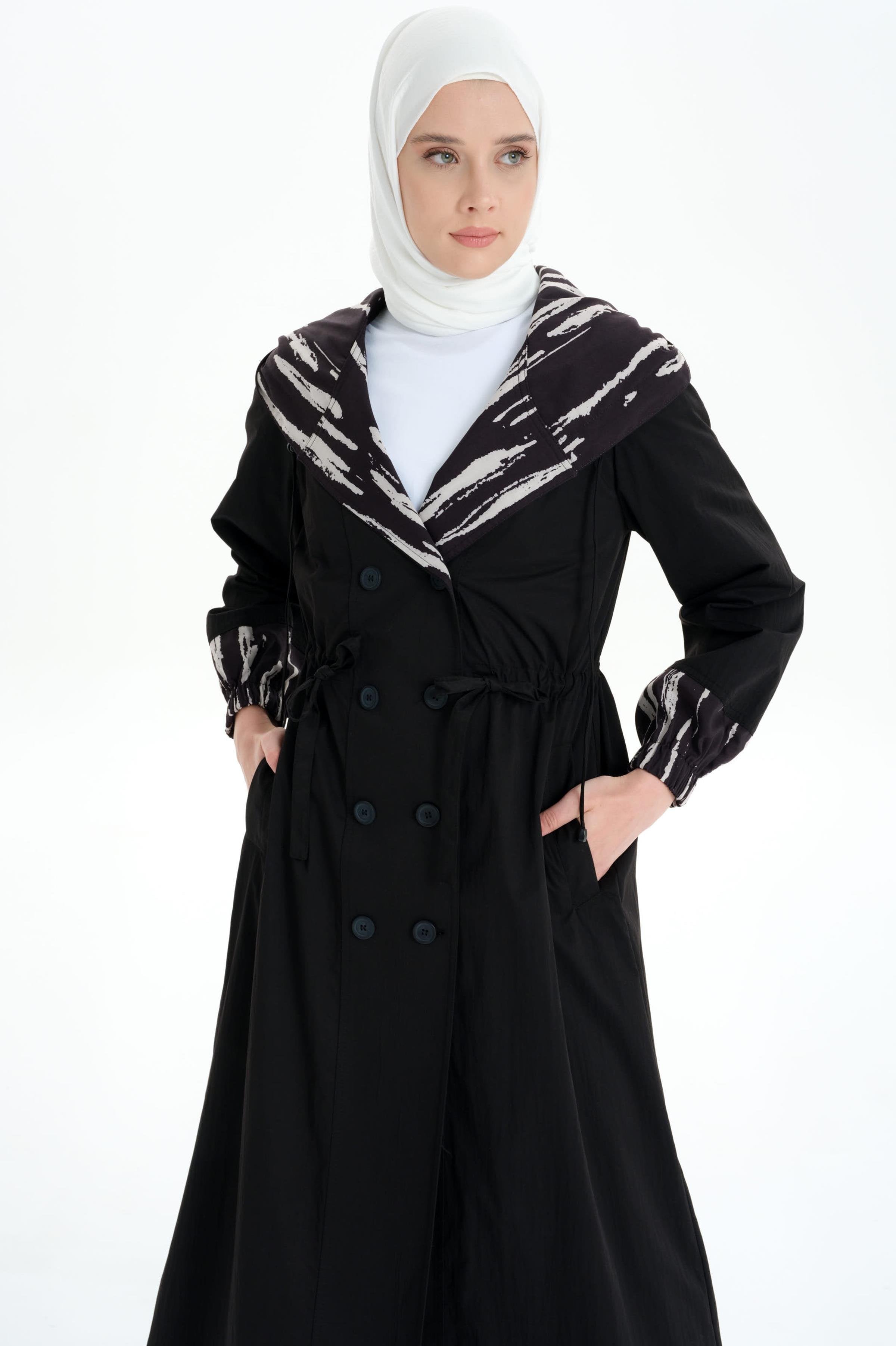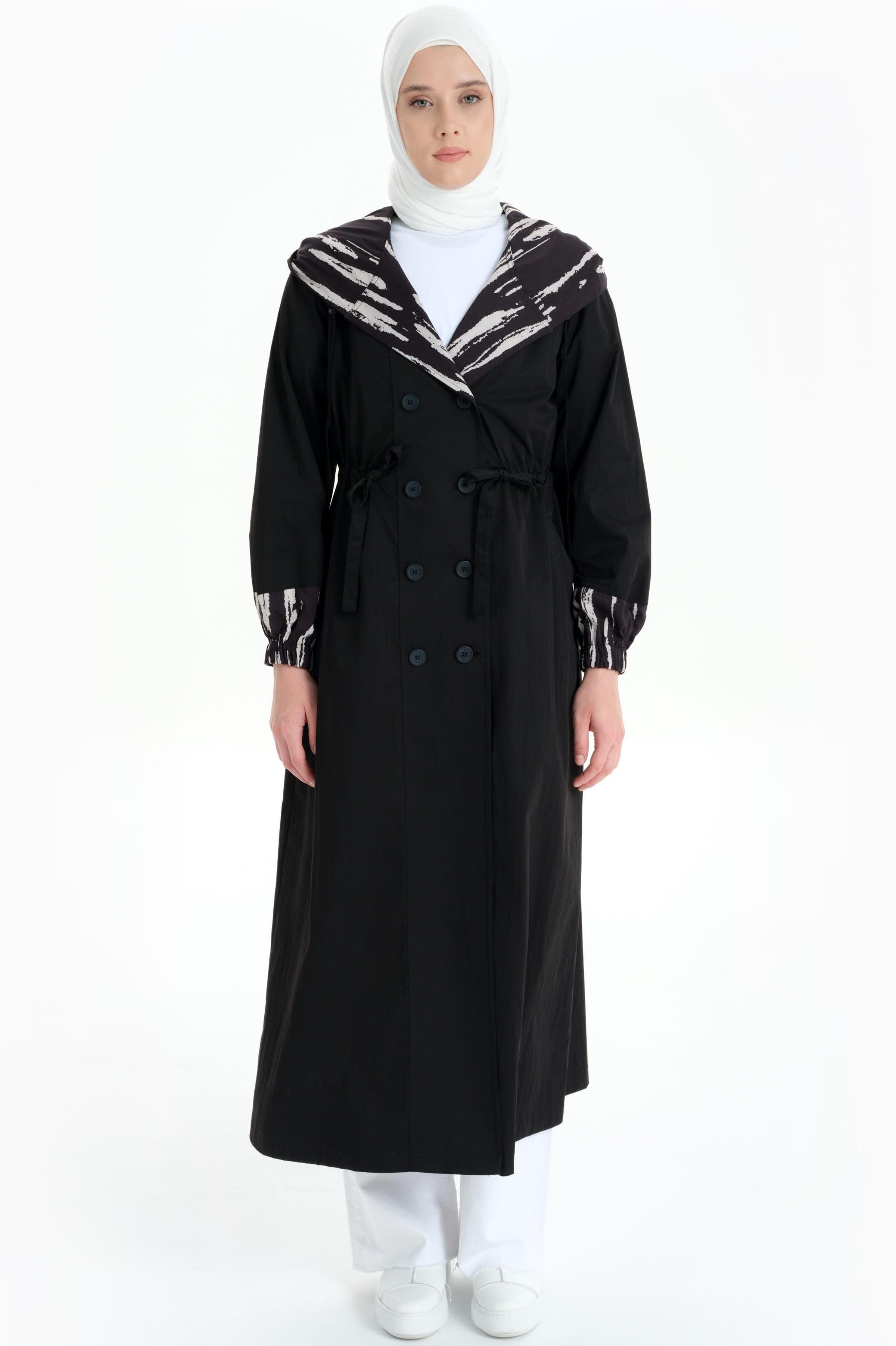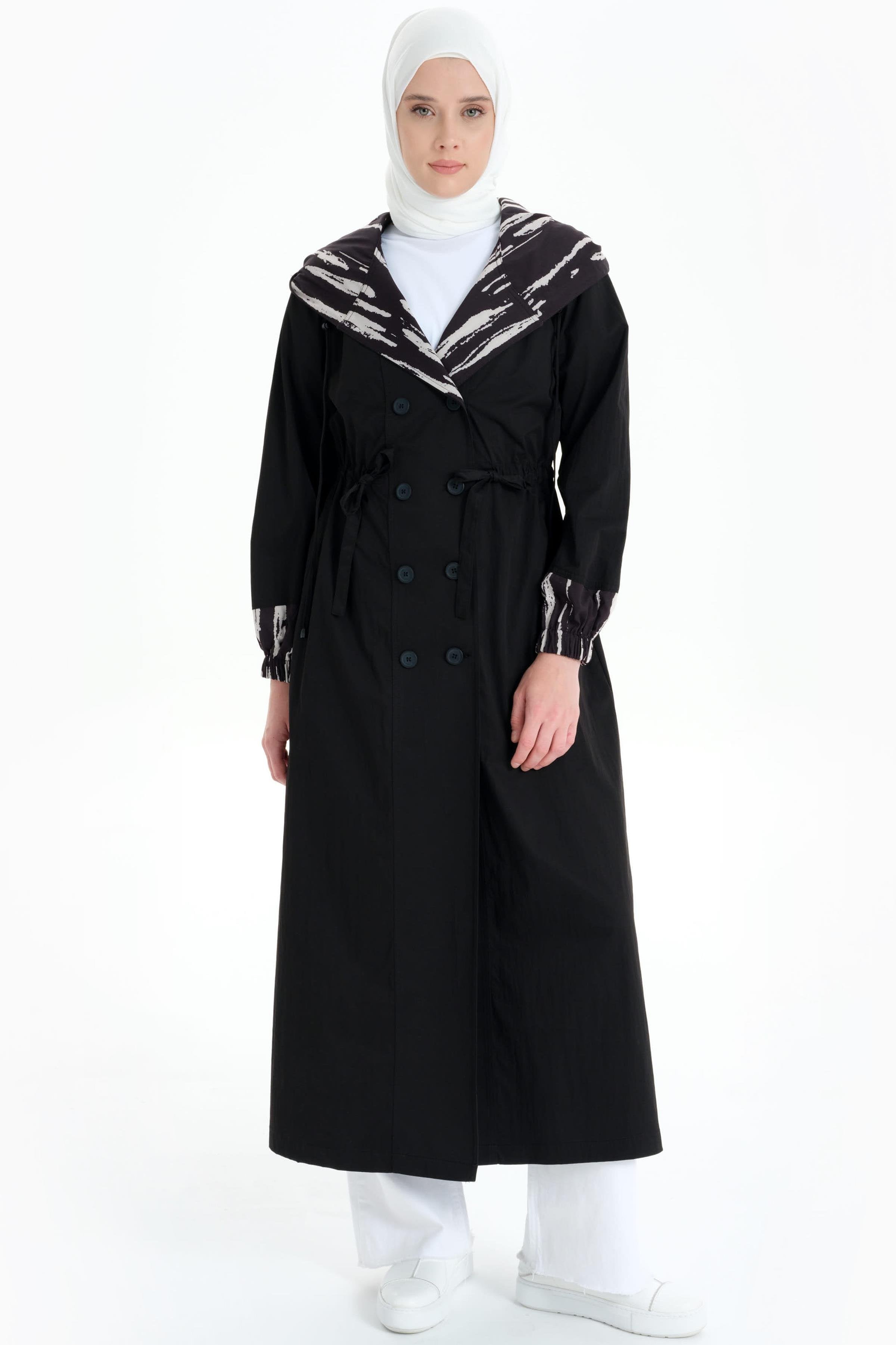 Garnili Kruvaze Düğmeli Yağmurluk - Siyah