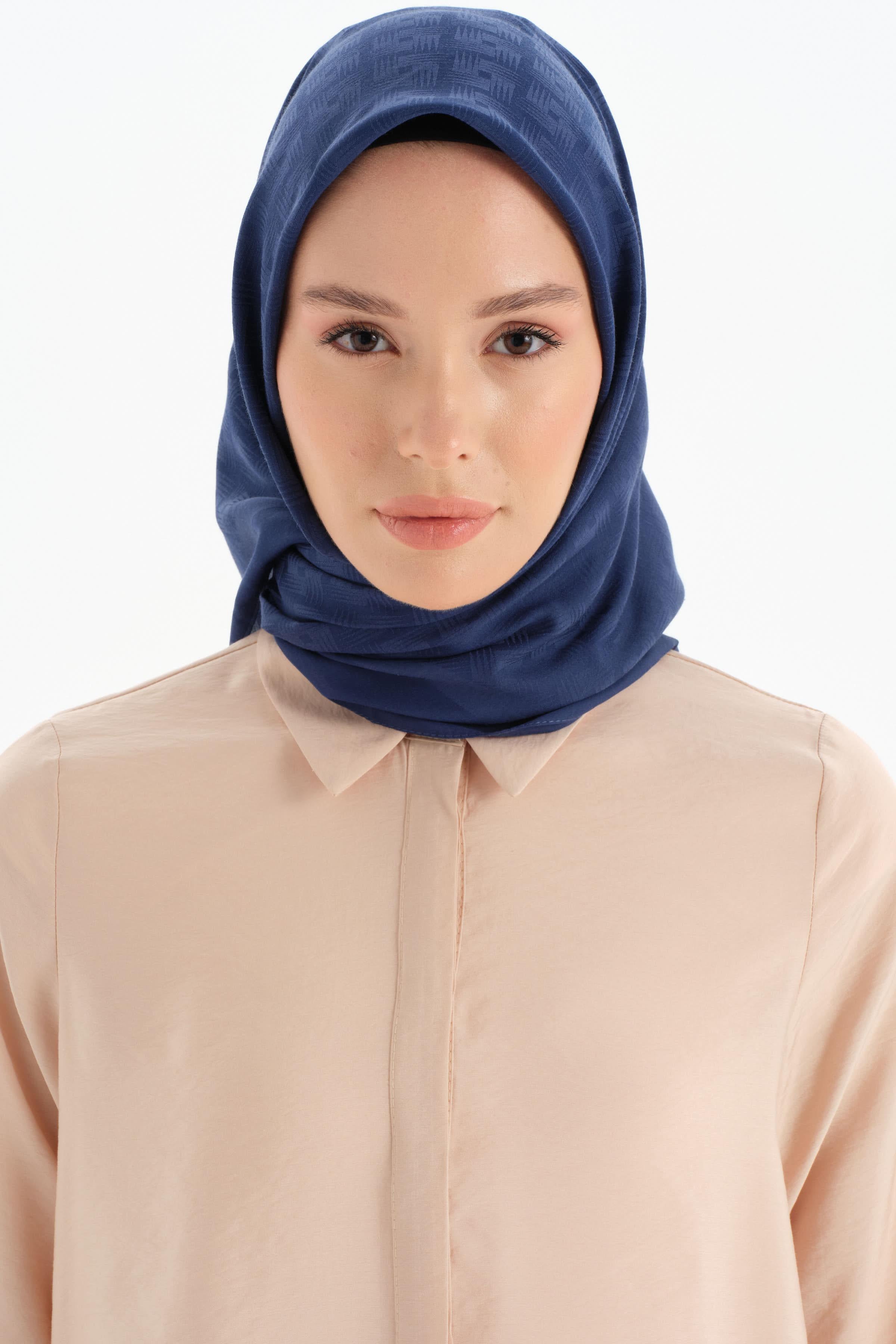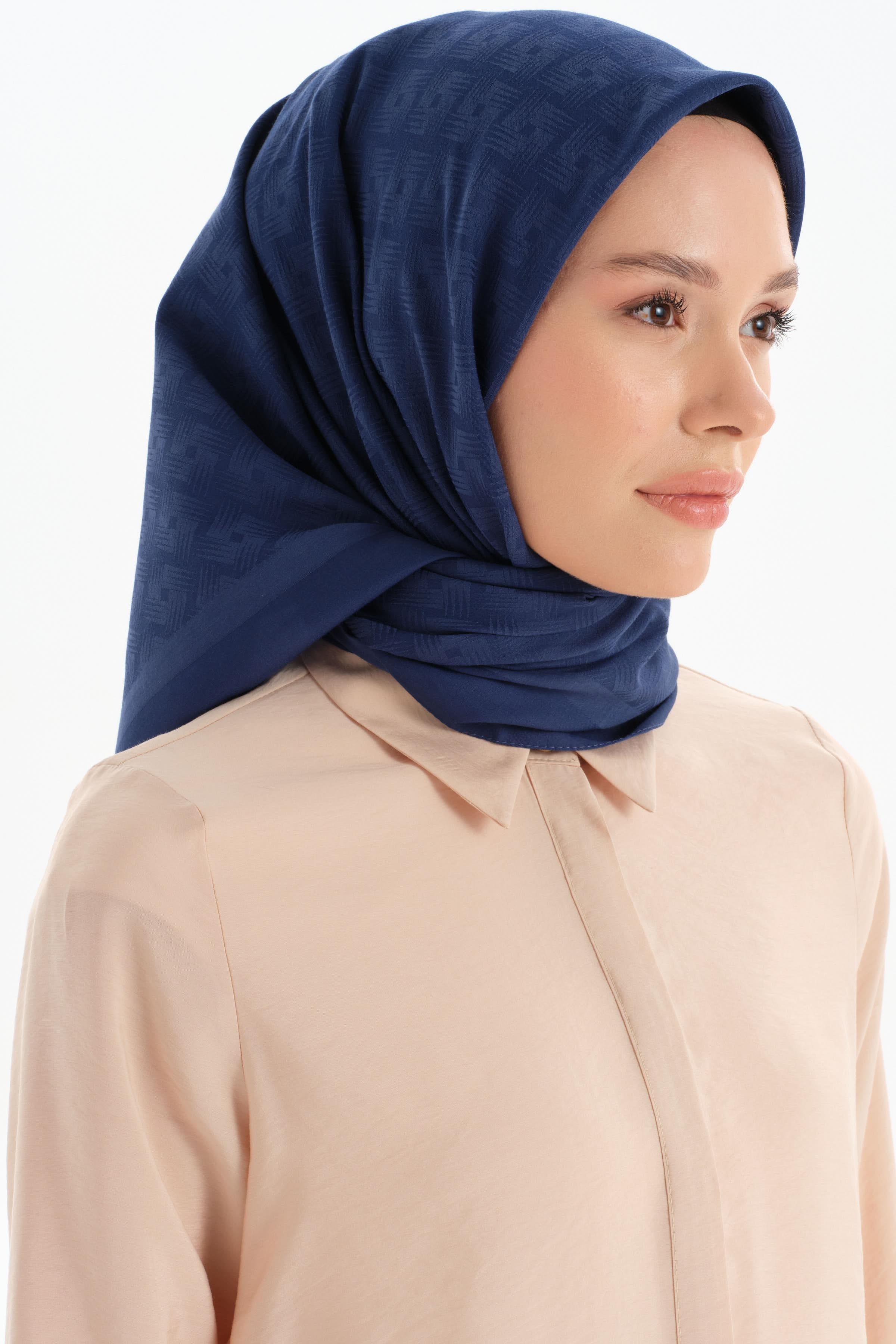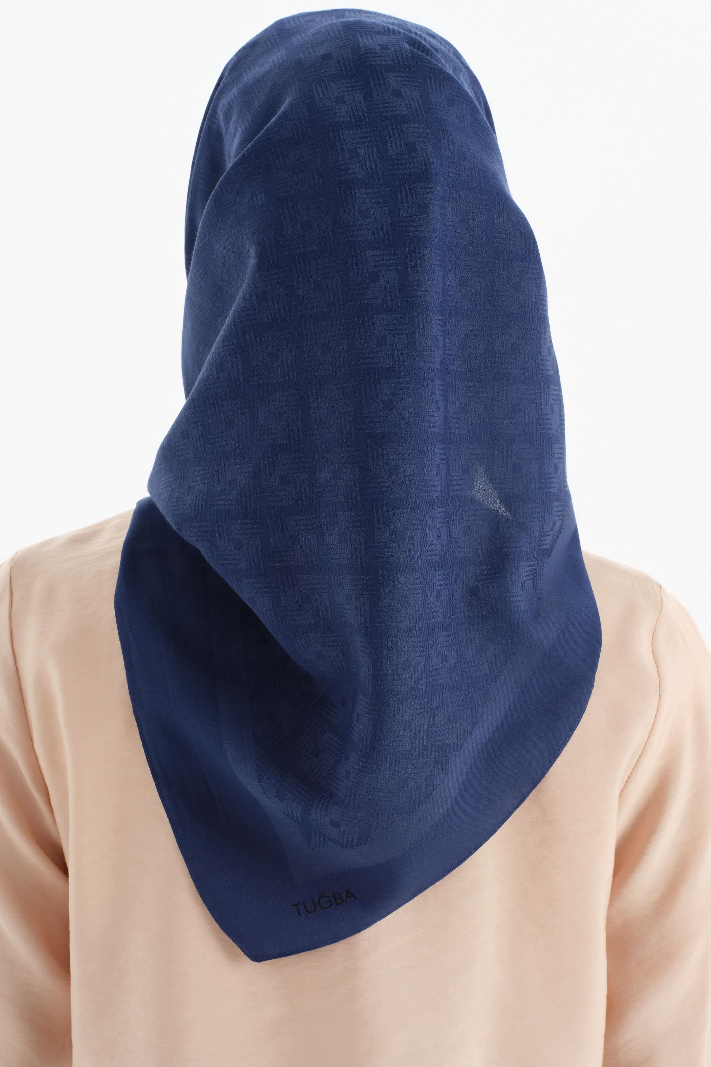 Geometrik Desen Pamuk Eşarp - Lacivert