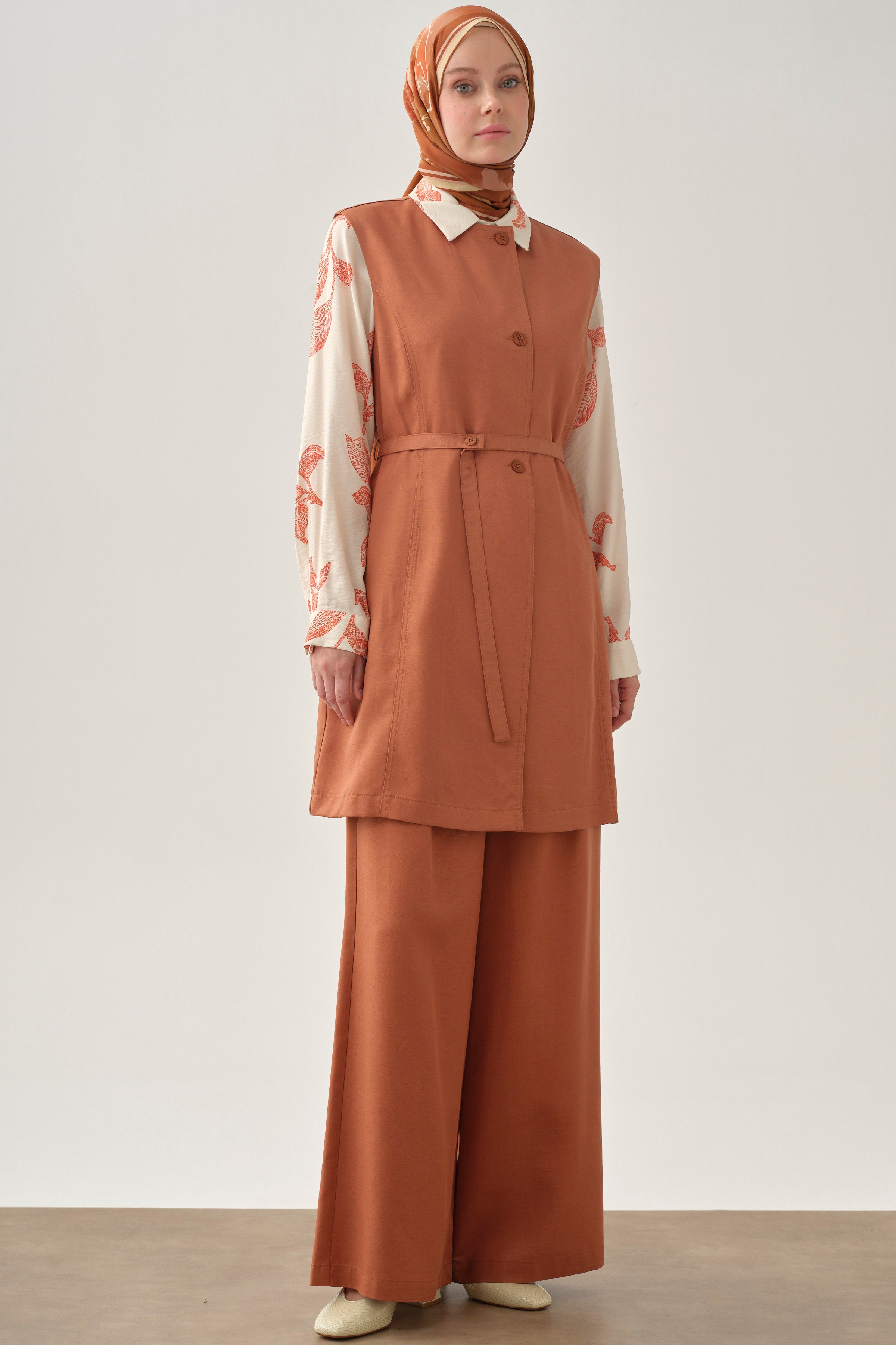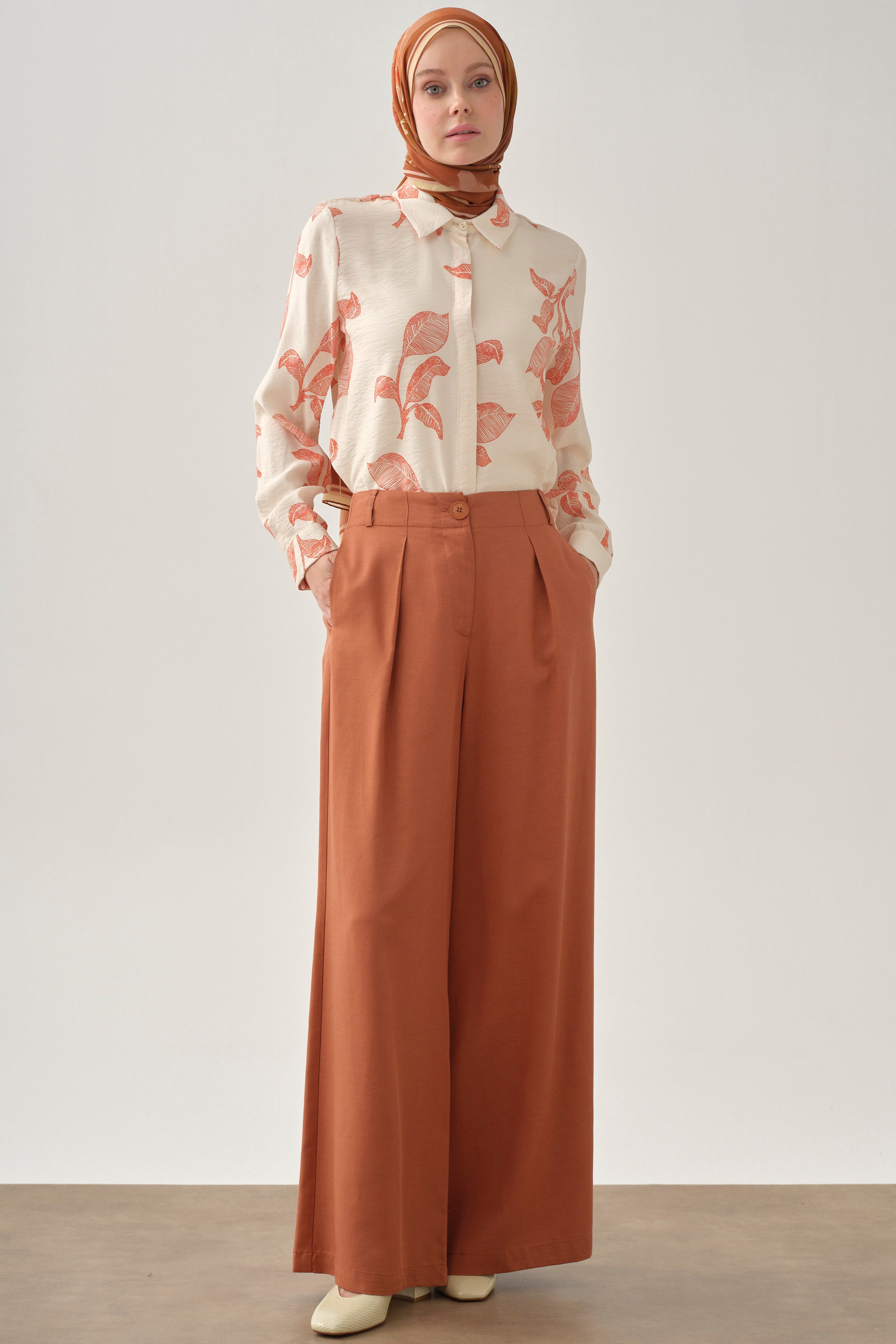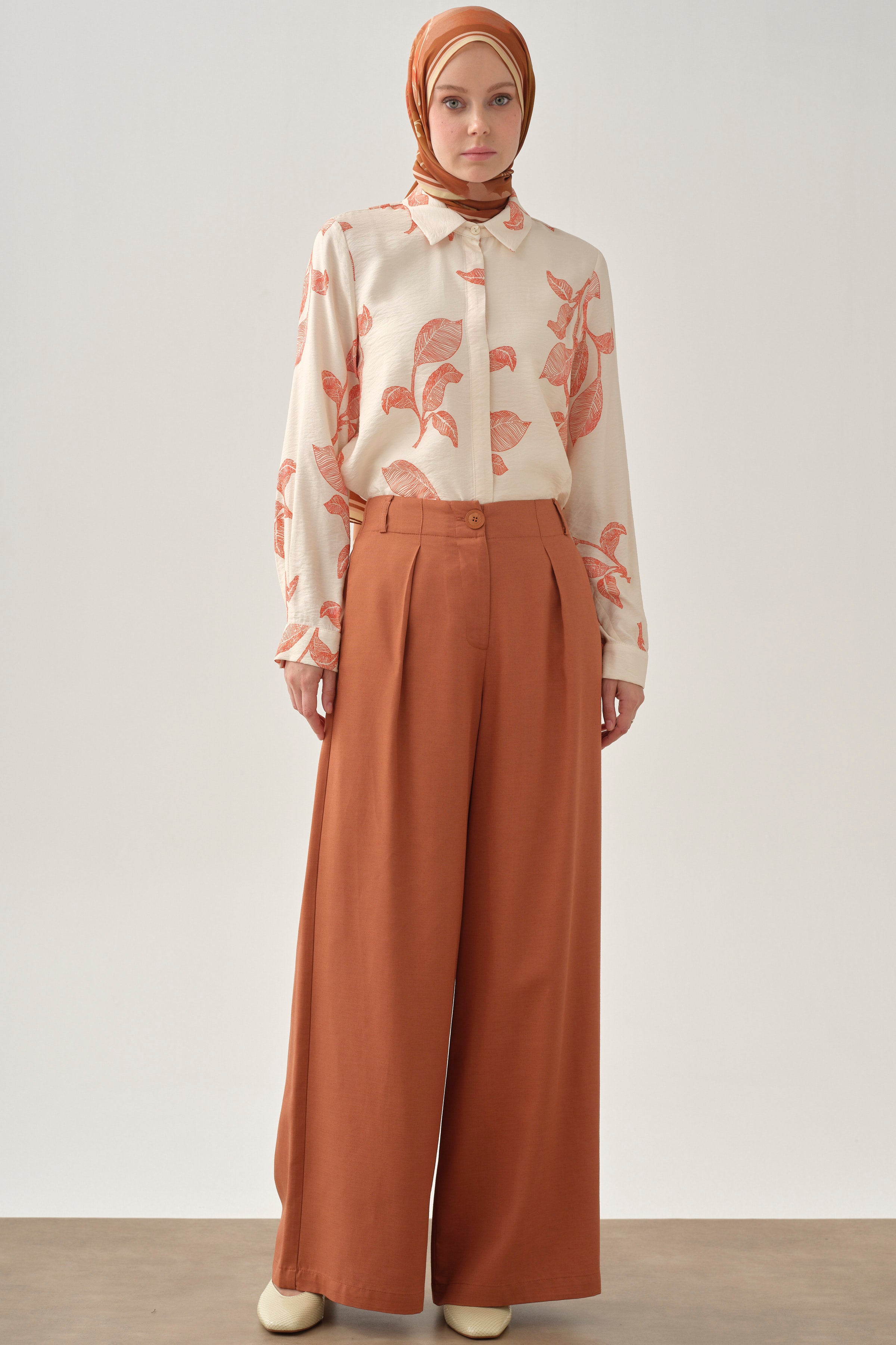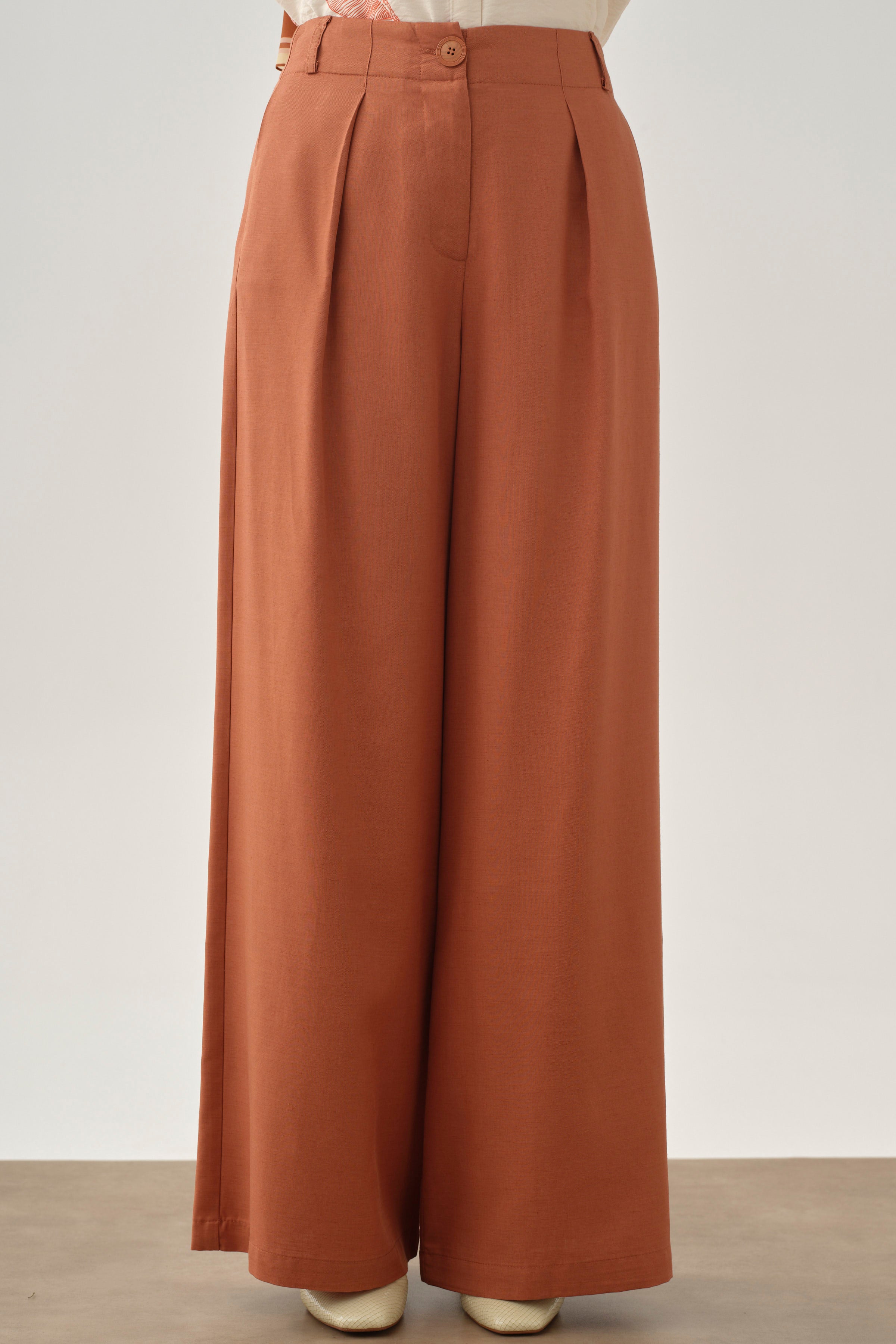 Gizli Cepli Pile Detaylı Pantolon - Kiremit