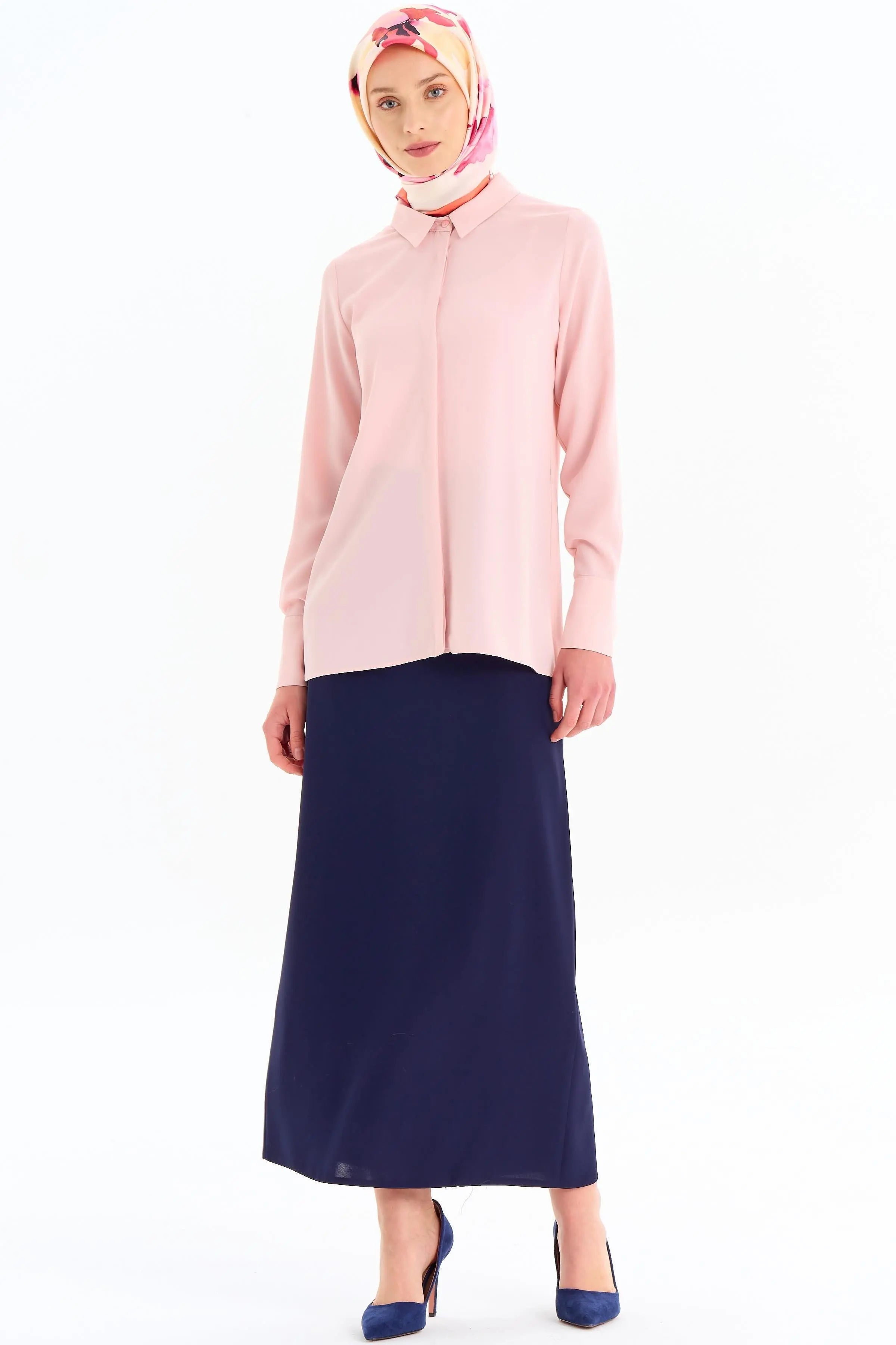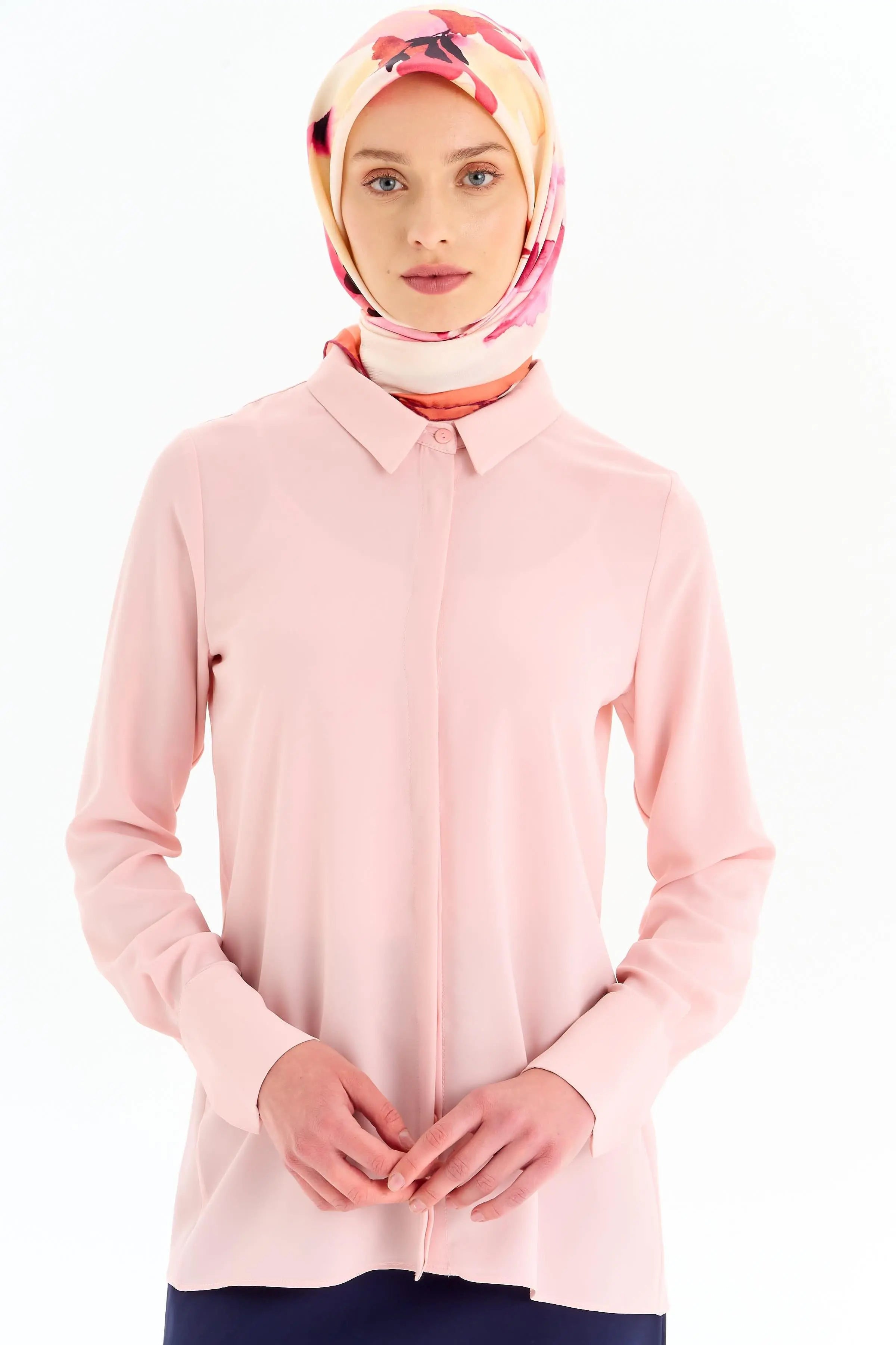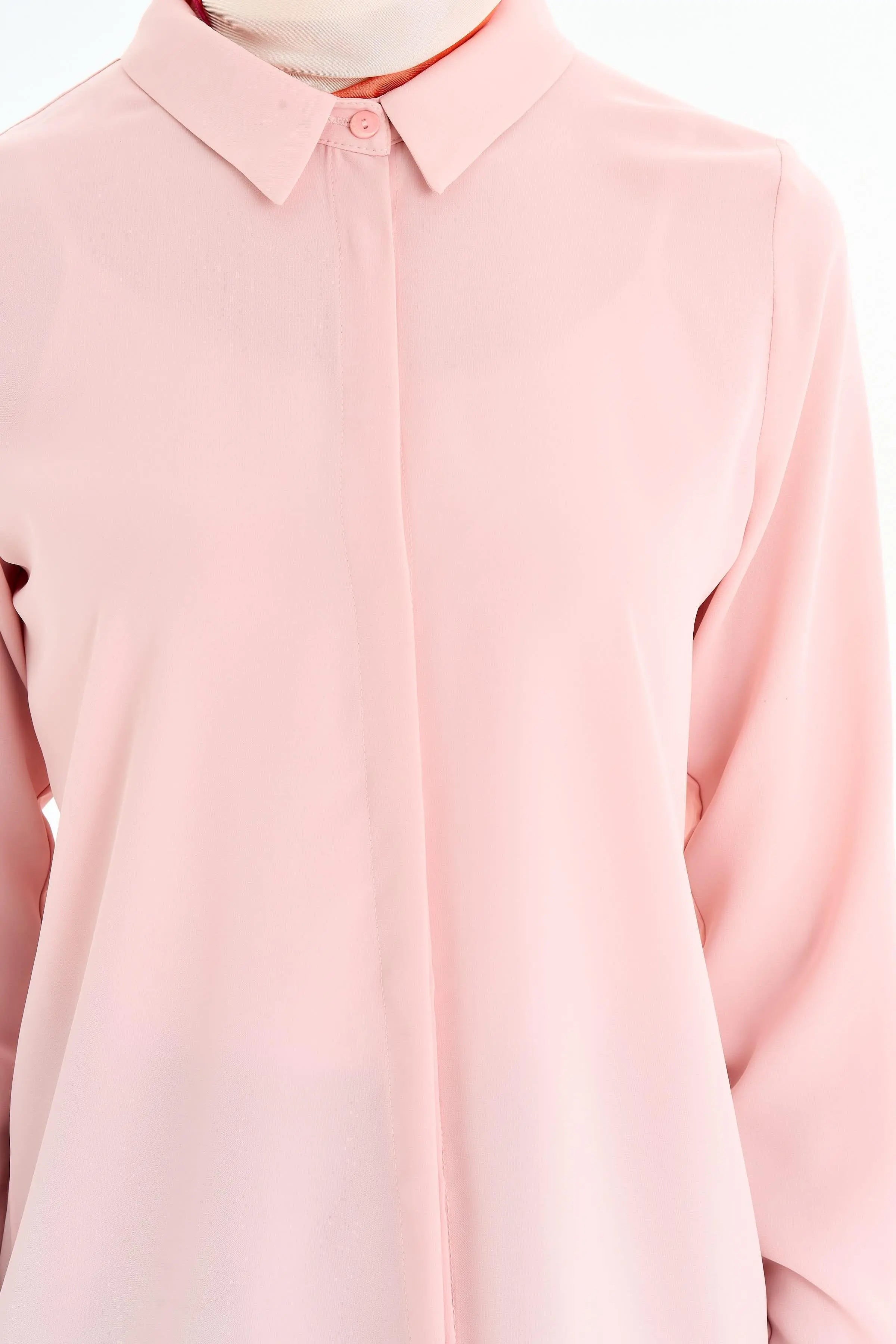 Gizli Patlı Basic Gömlek - Pudra