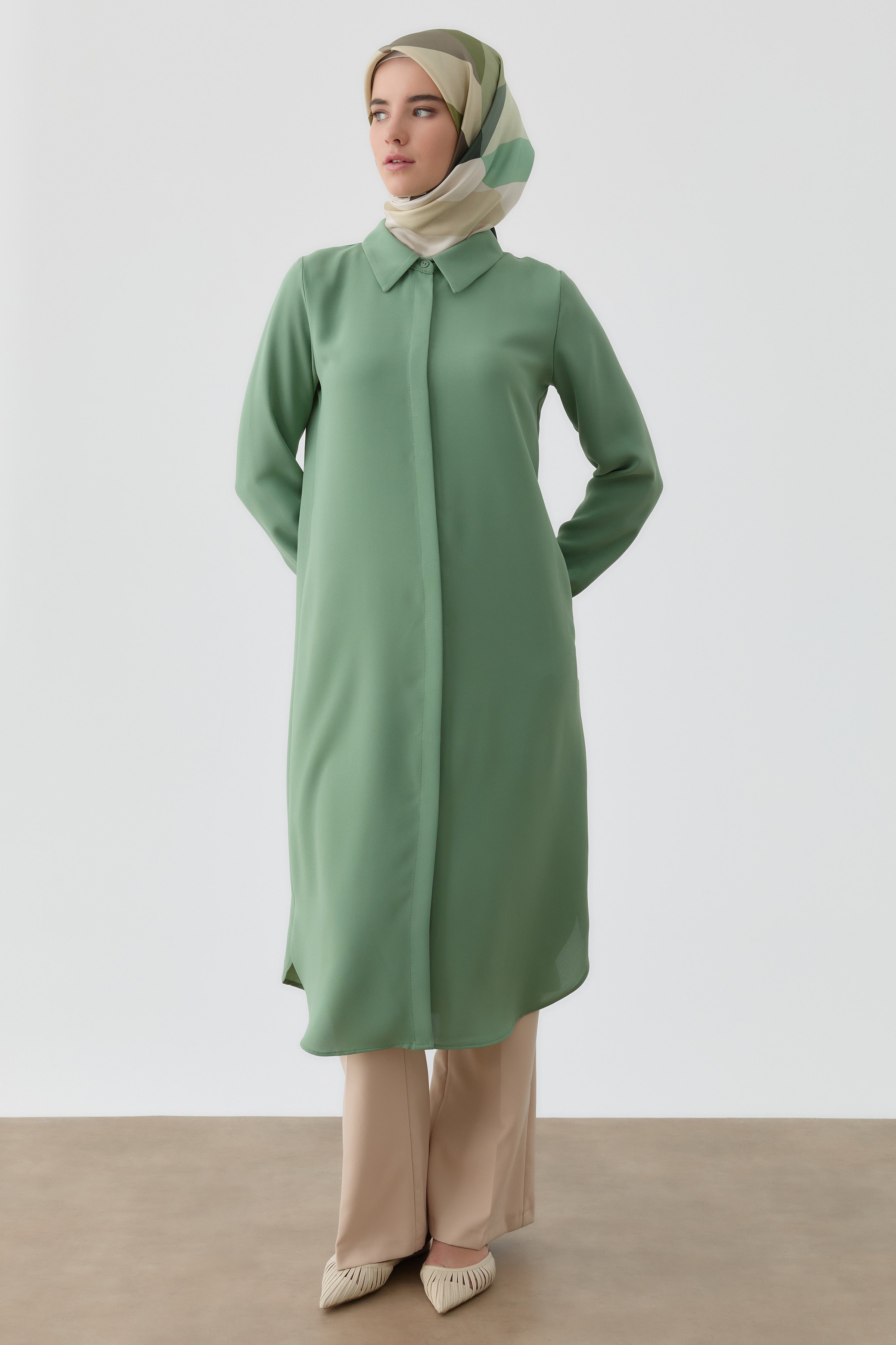 Sade ve şık bir tasarıma sahip bu basic tunik, gizli pat detaylarıyla zarif bir dokunuş sunar. Rahat kesimi ve kaliteli kumaşı, günlük konforu garanti eder.