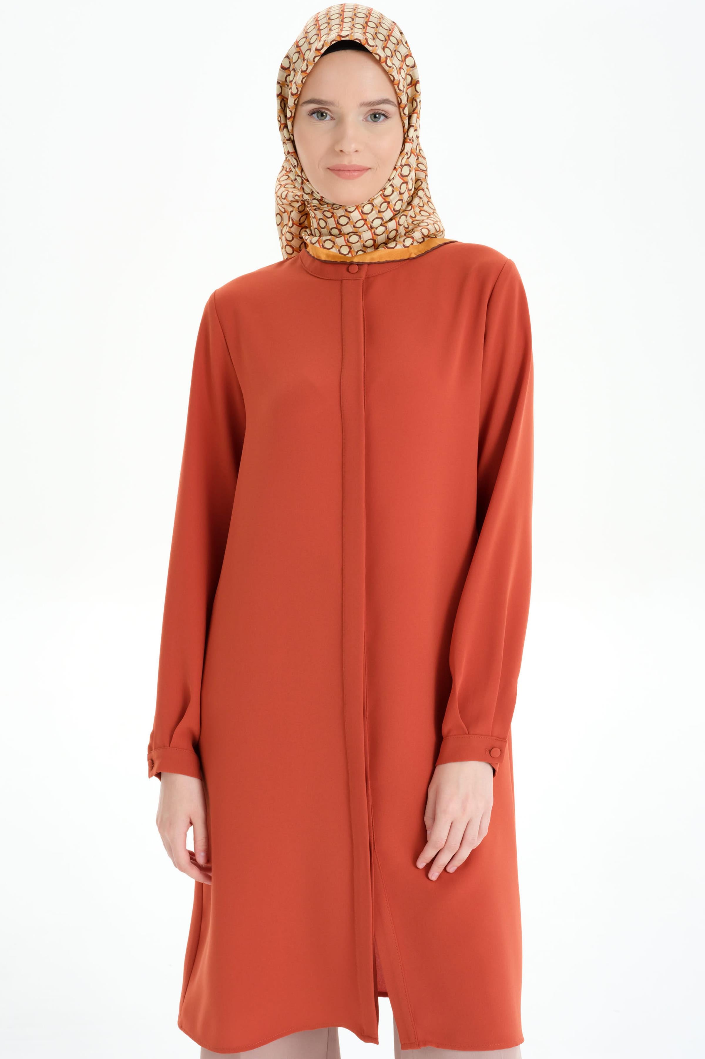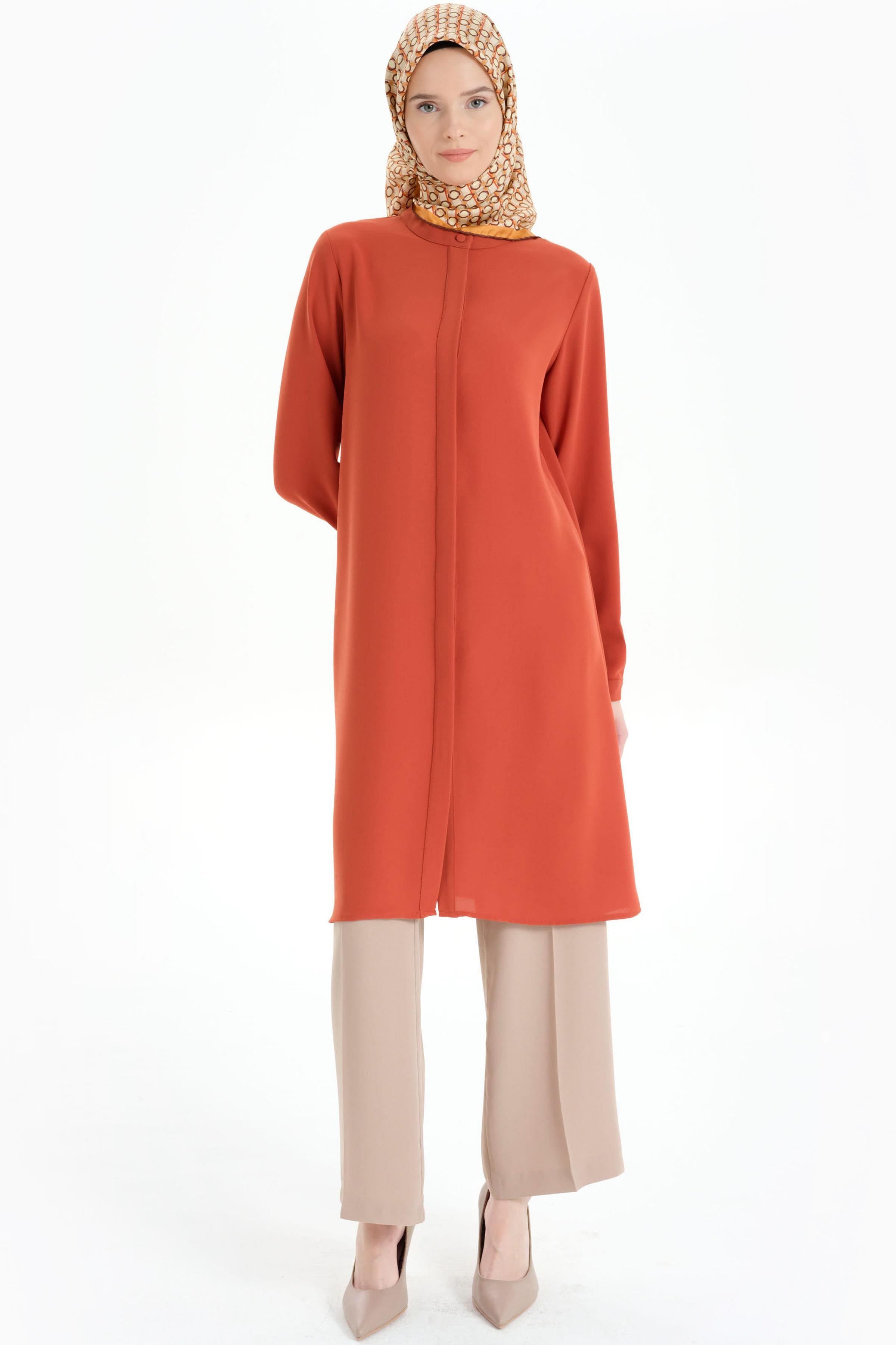 Hakim Yaka Gizli Patlı Tunik - Kiremit