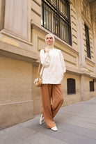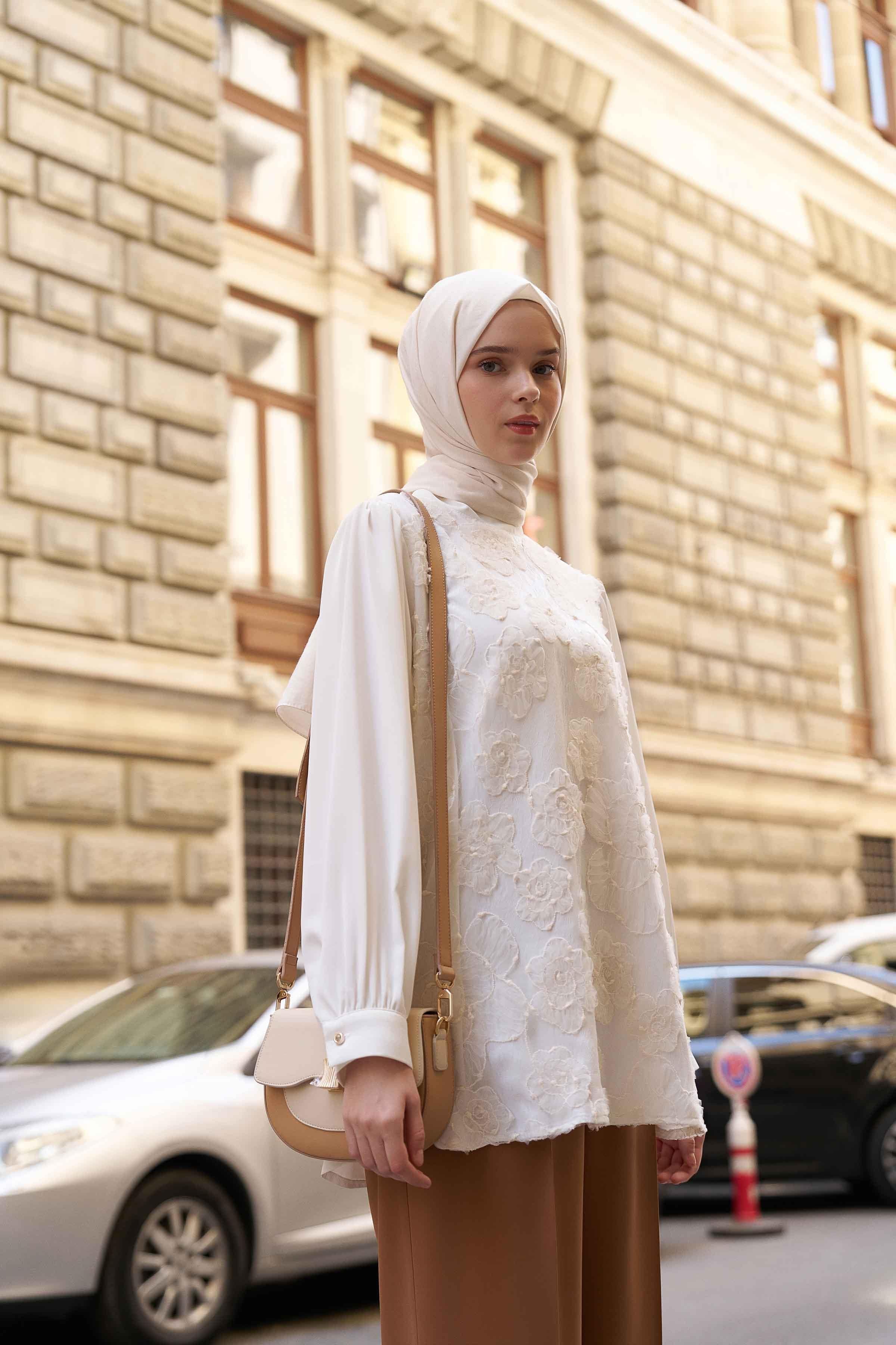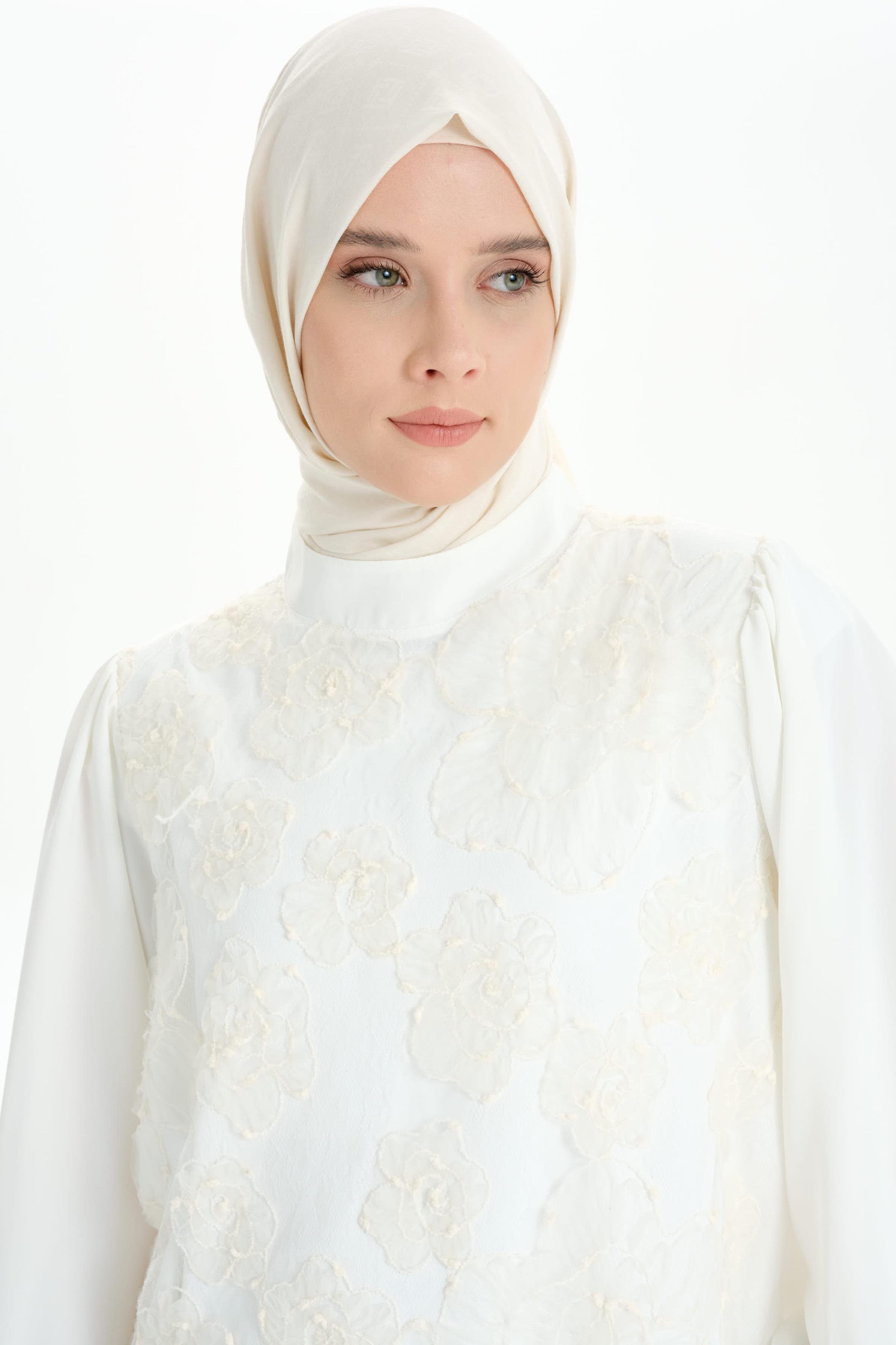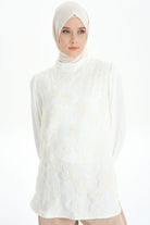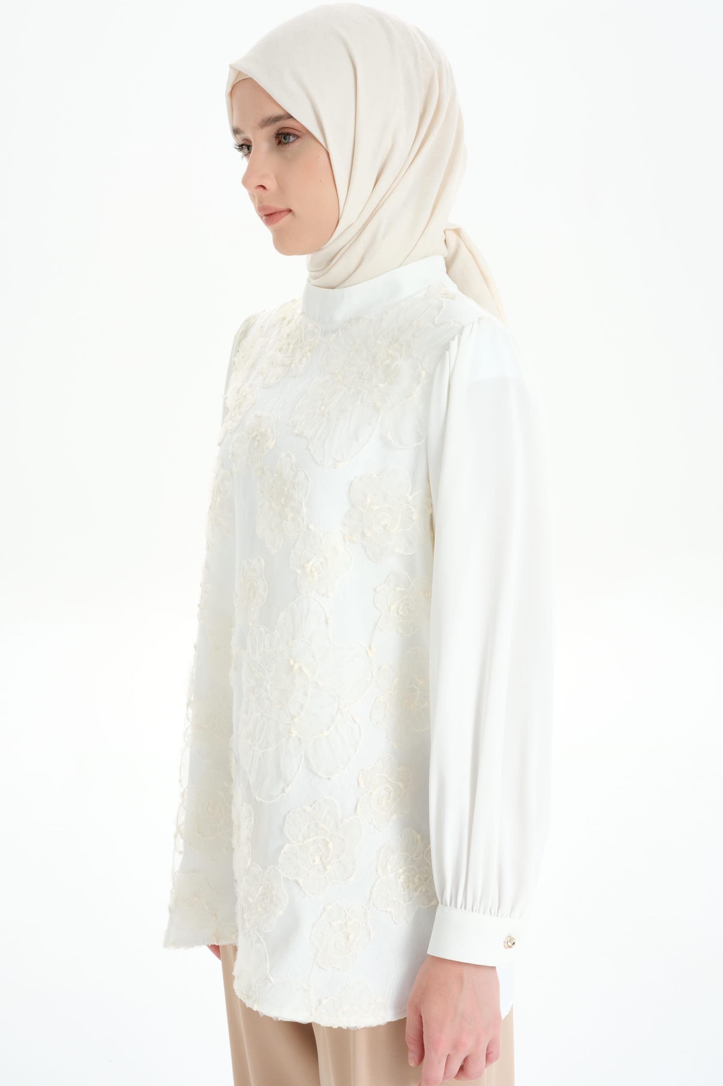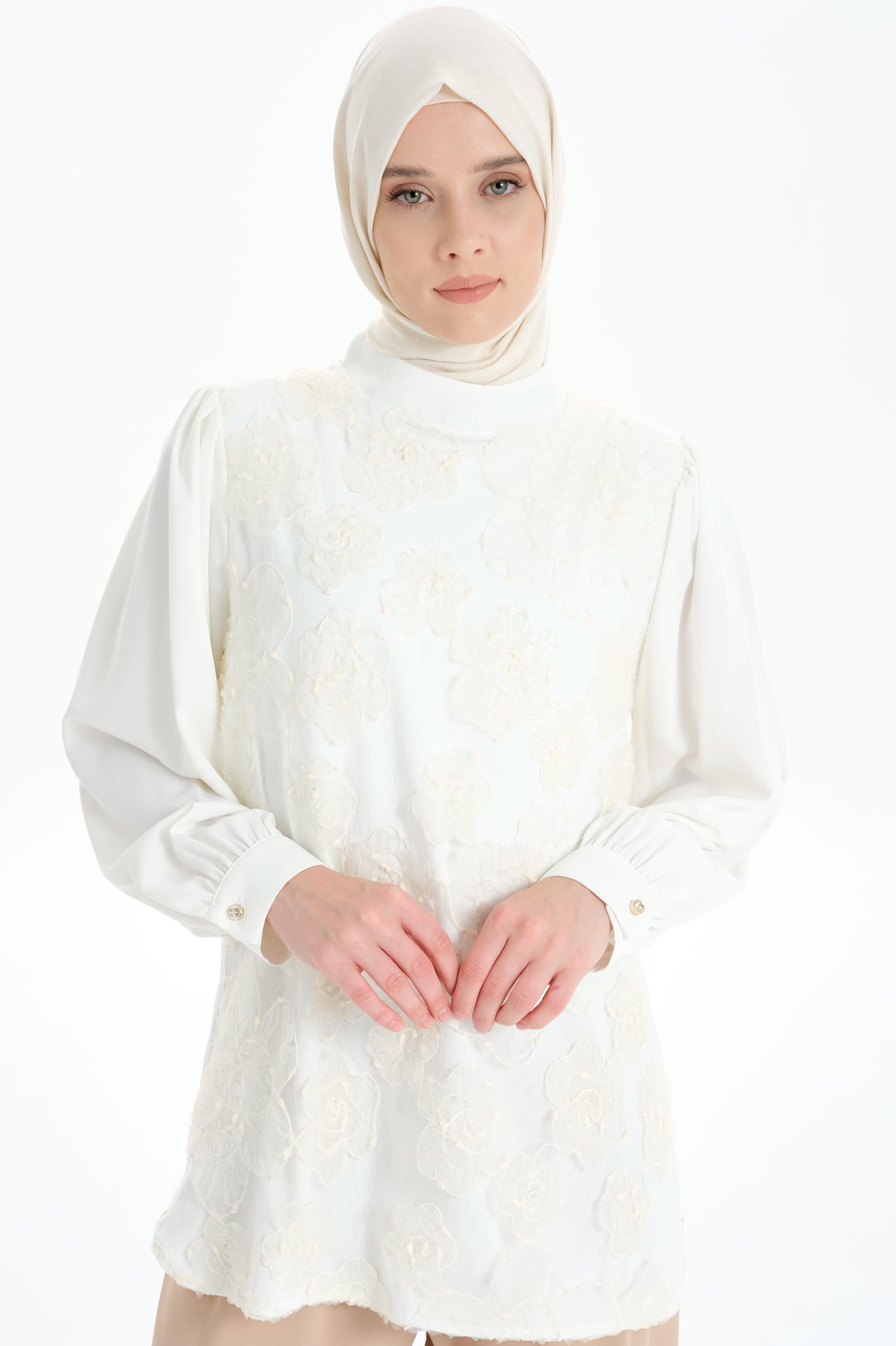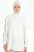 Hakim Yaka Tül Garnili Bluz - Ekru