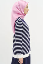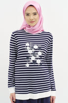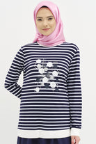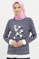 İşlemeli Çizgili Örme Bluz - Lacivert