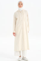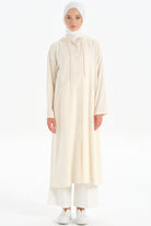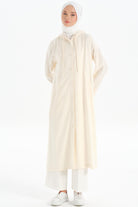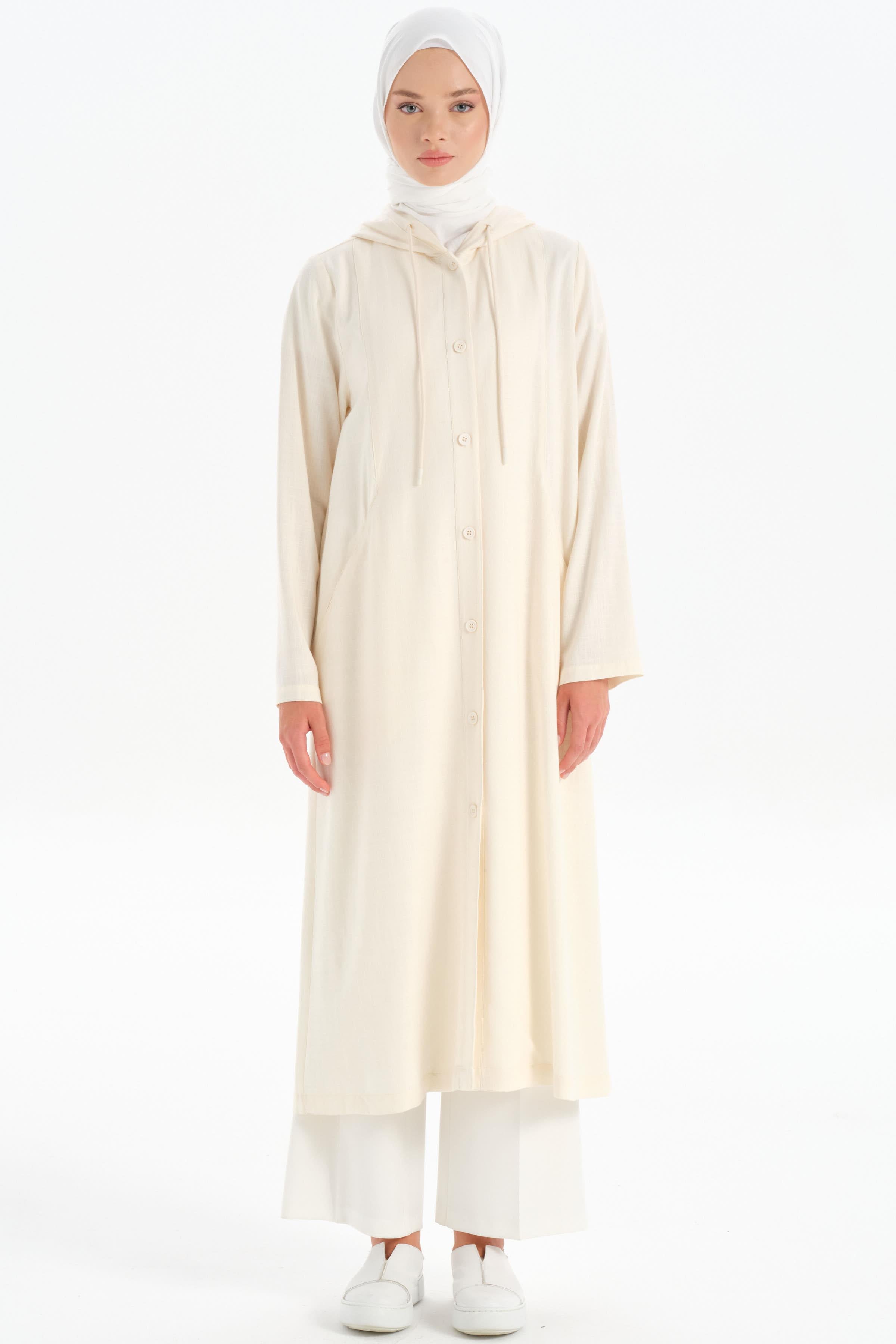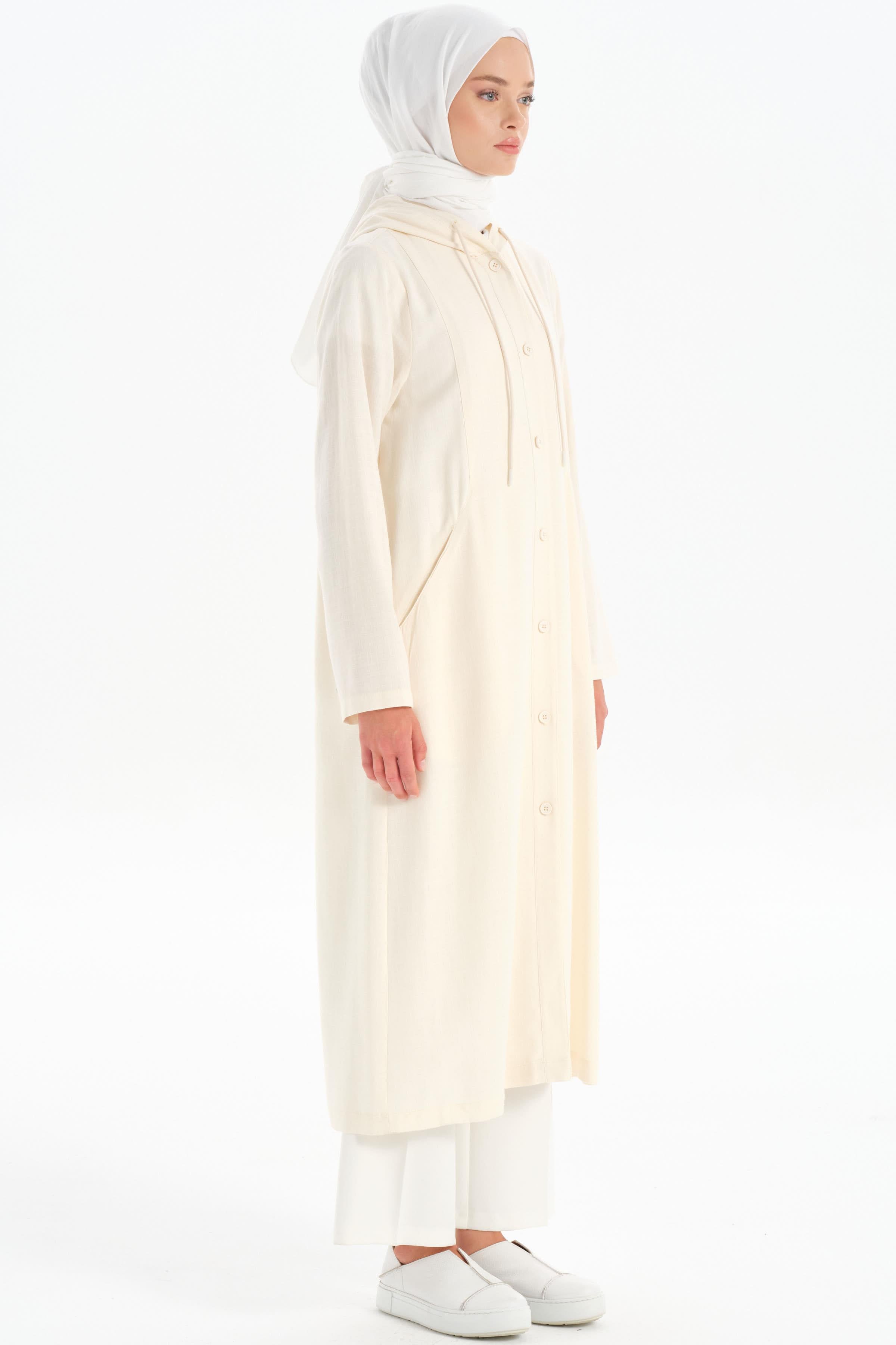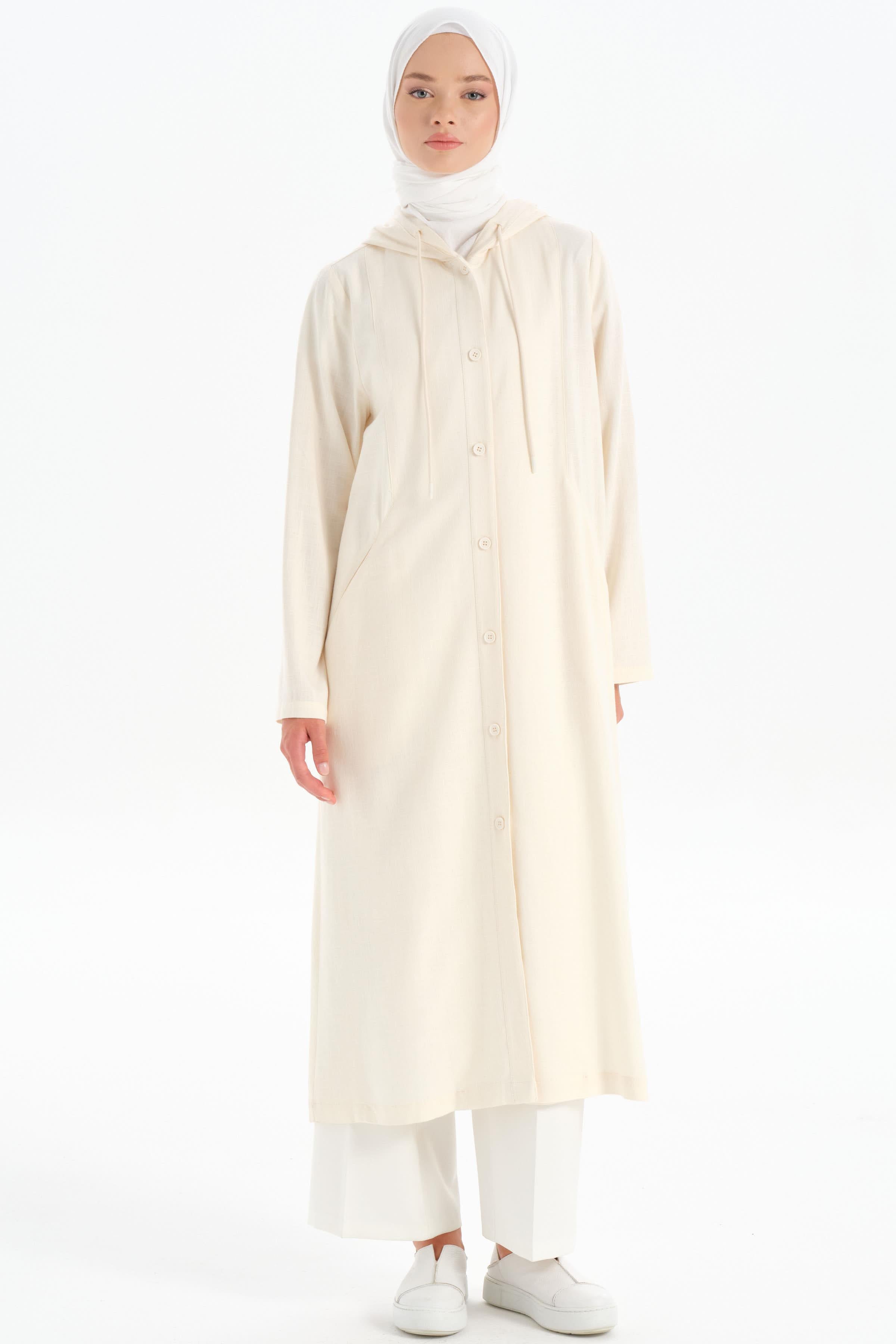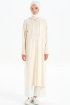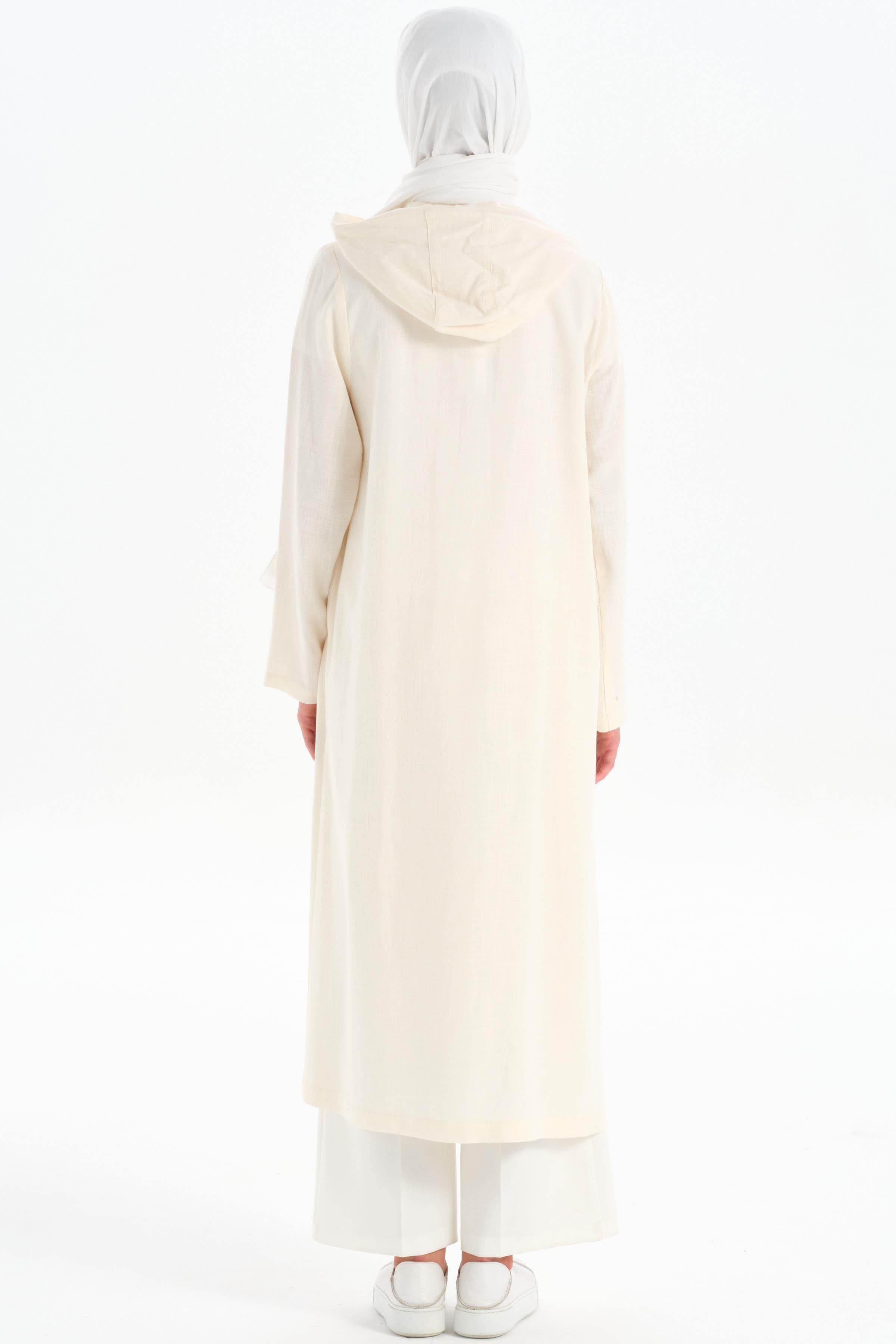 Kapüşonlu Yırtmaç Detaylı Giy-Çık - Ekru