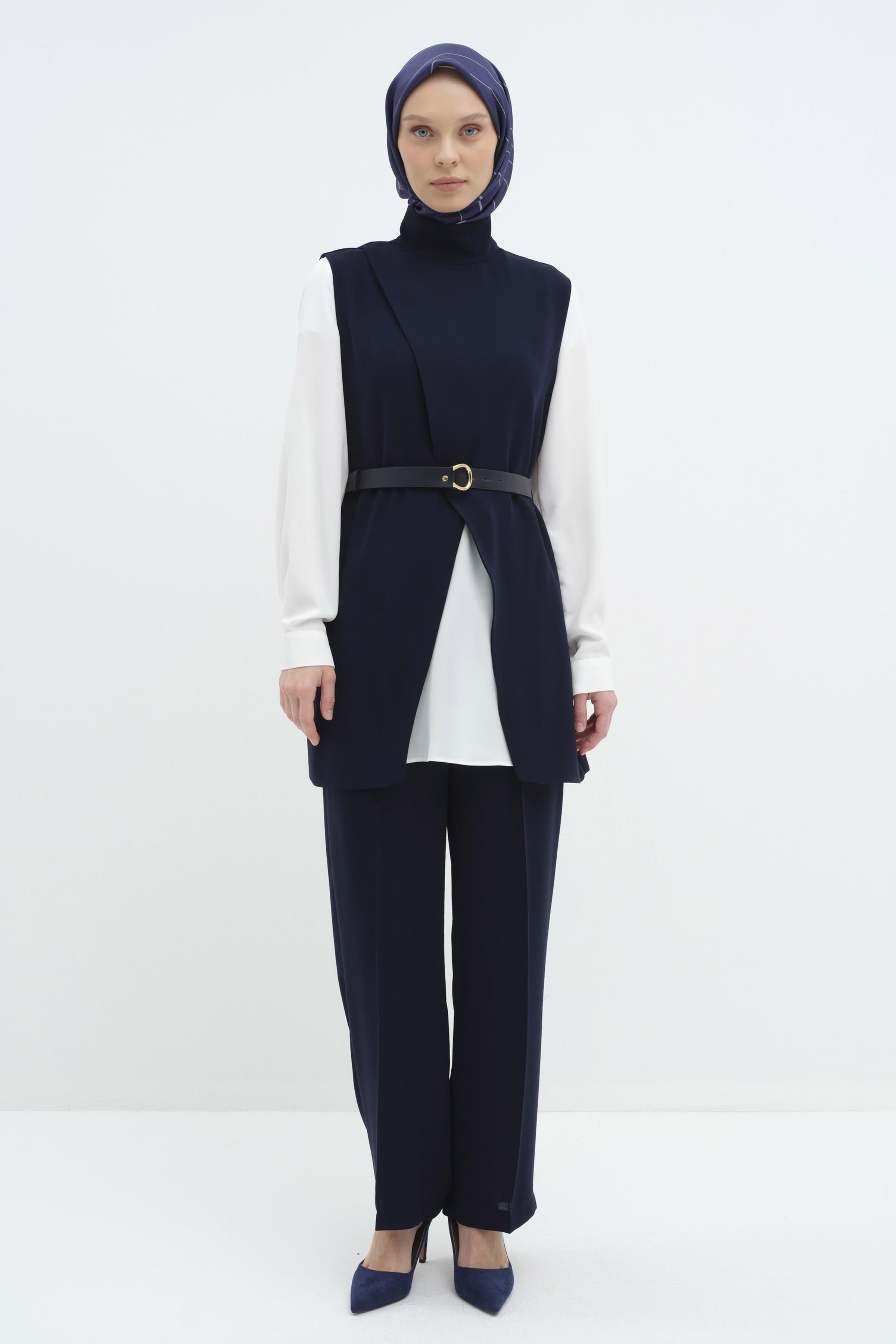 Kemerli Detaylı Üçlü Takım - Lacivert