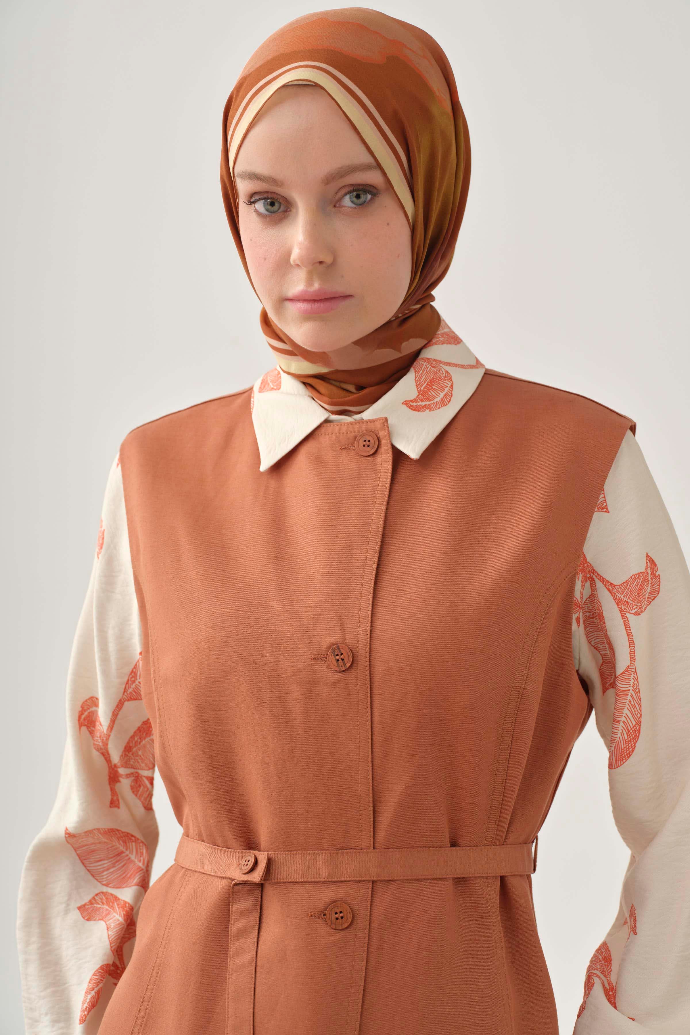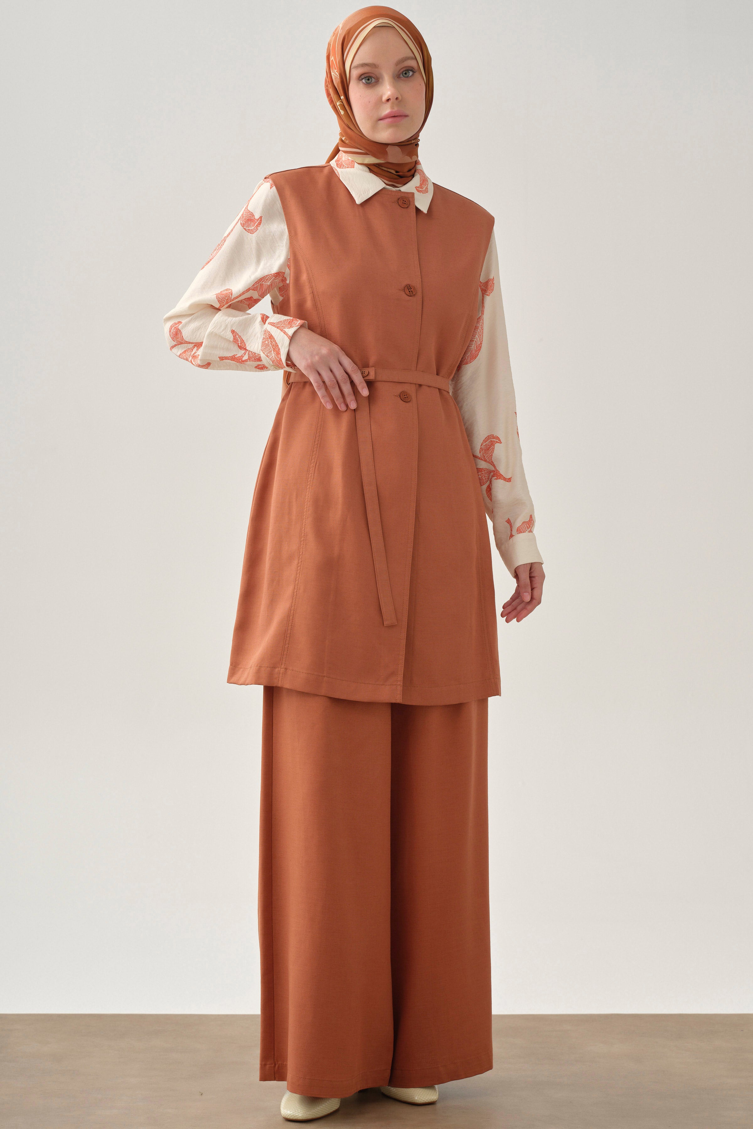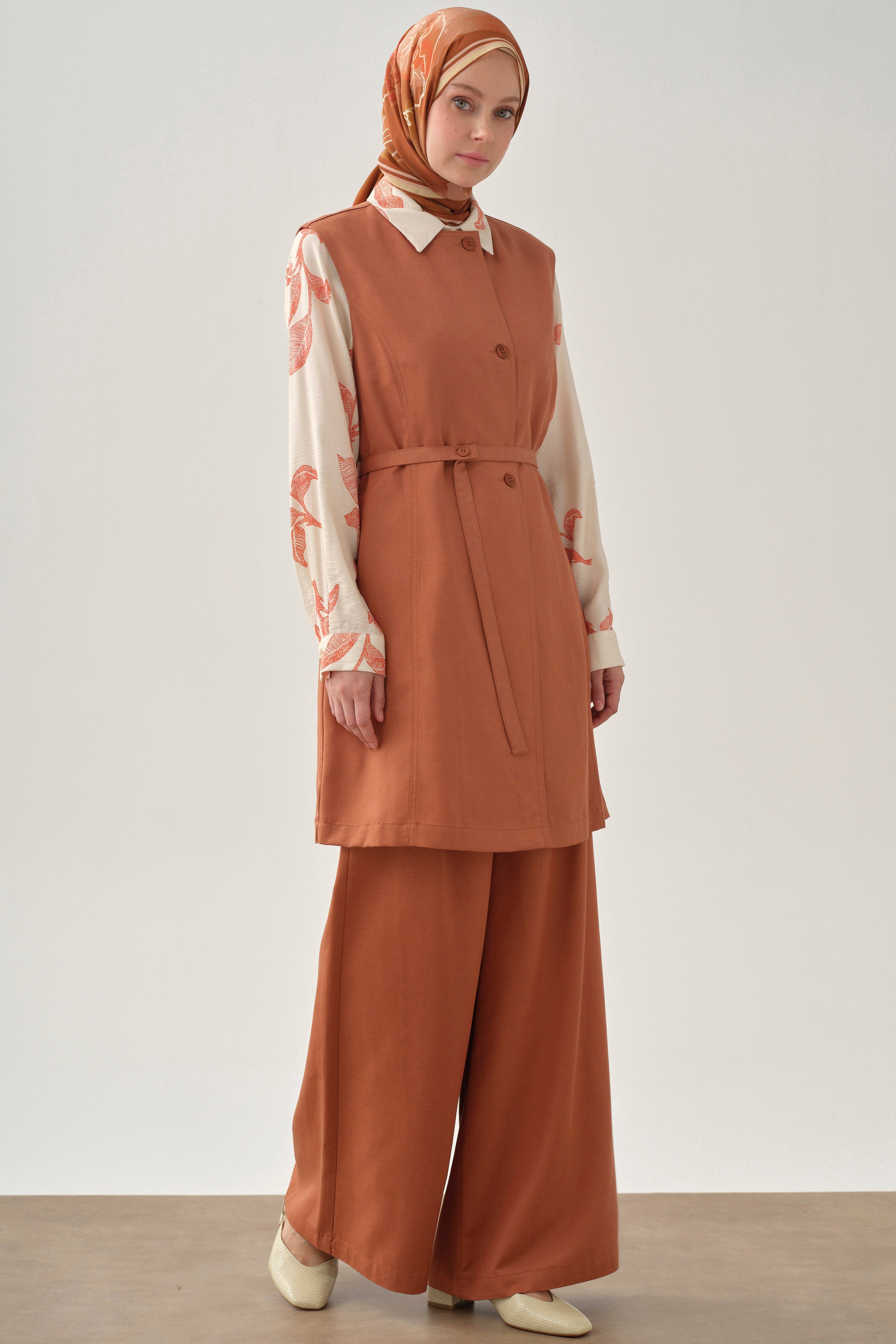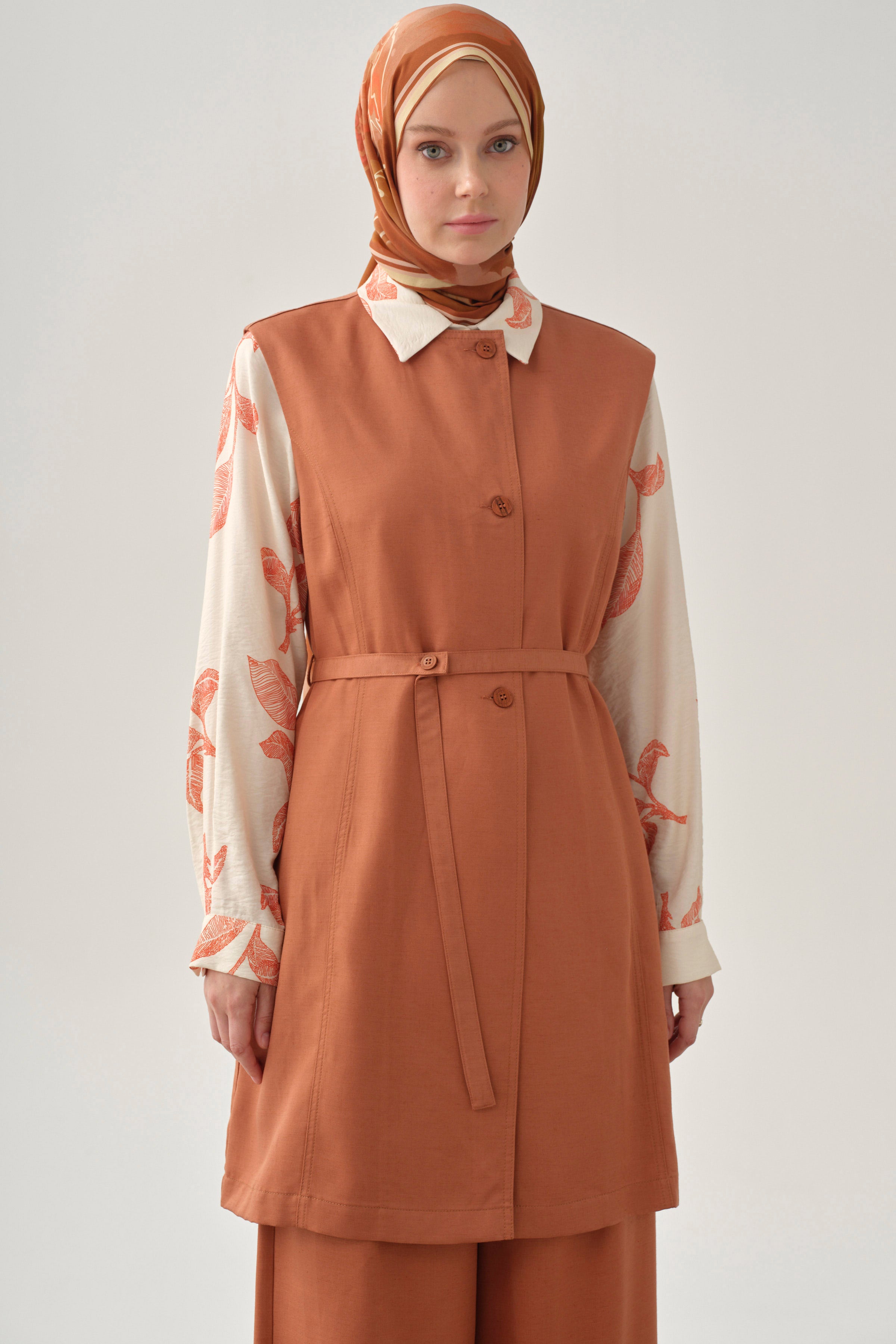 Kemerli Sıfır Yaka Yelek - Kiremit