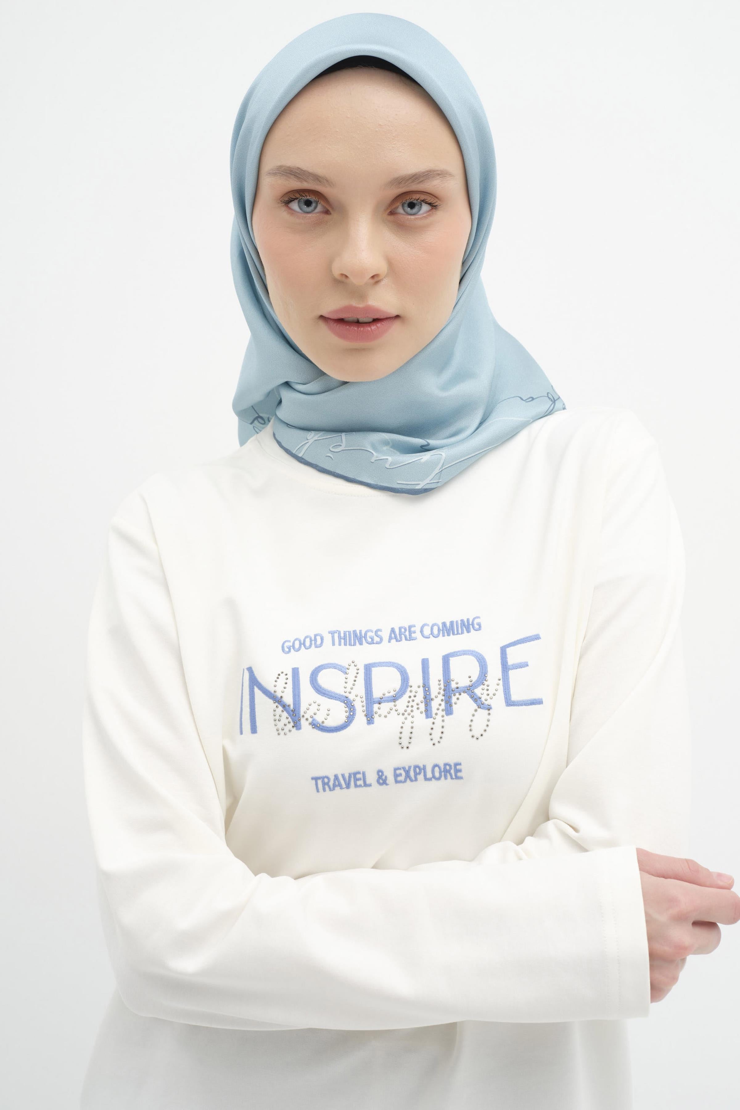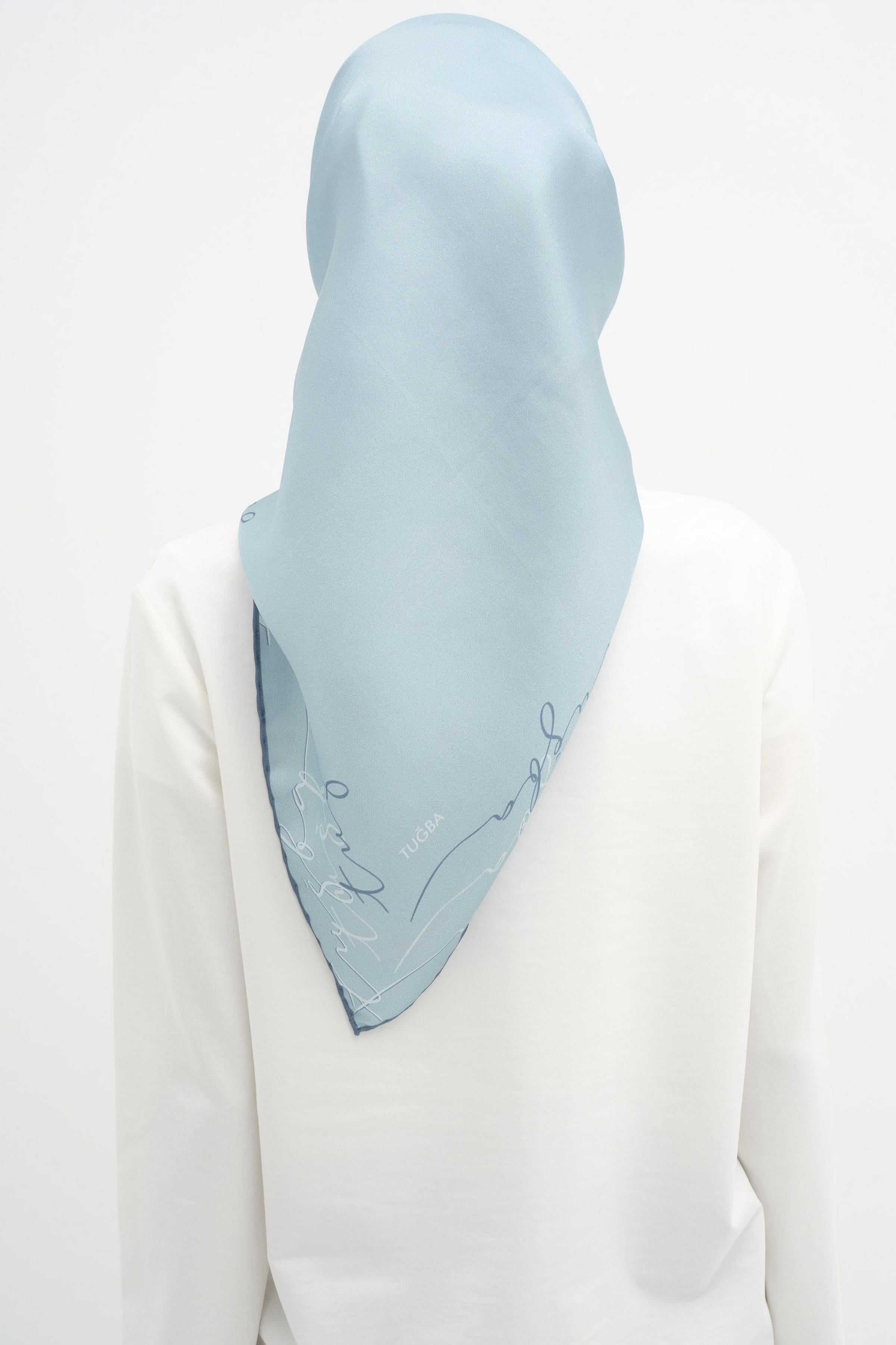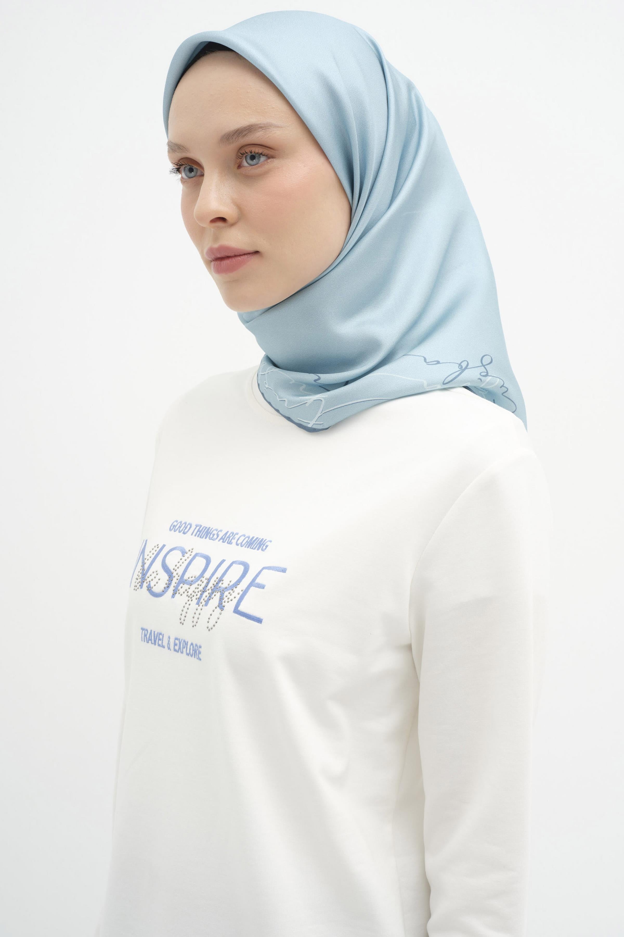 Kenar Detaylı Twill İpek Eşarp - Açık Mavi