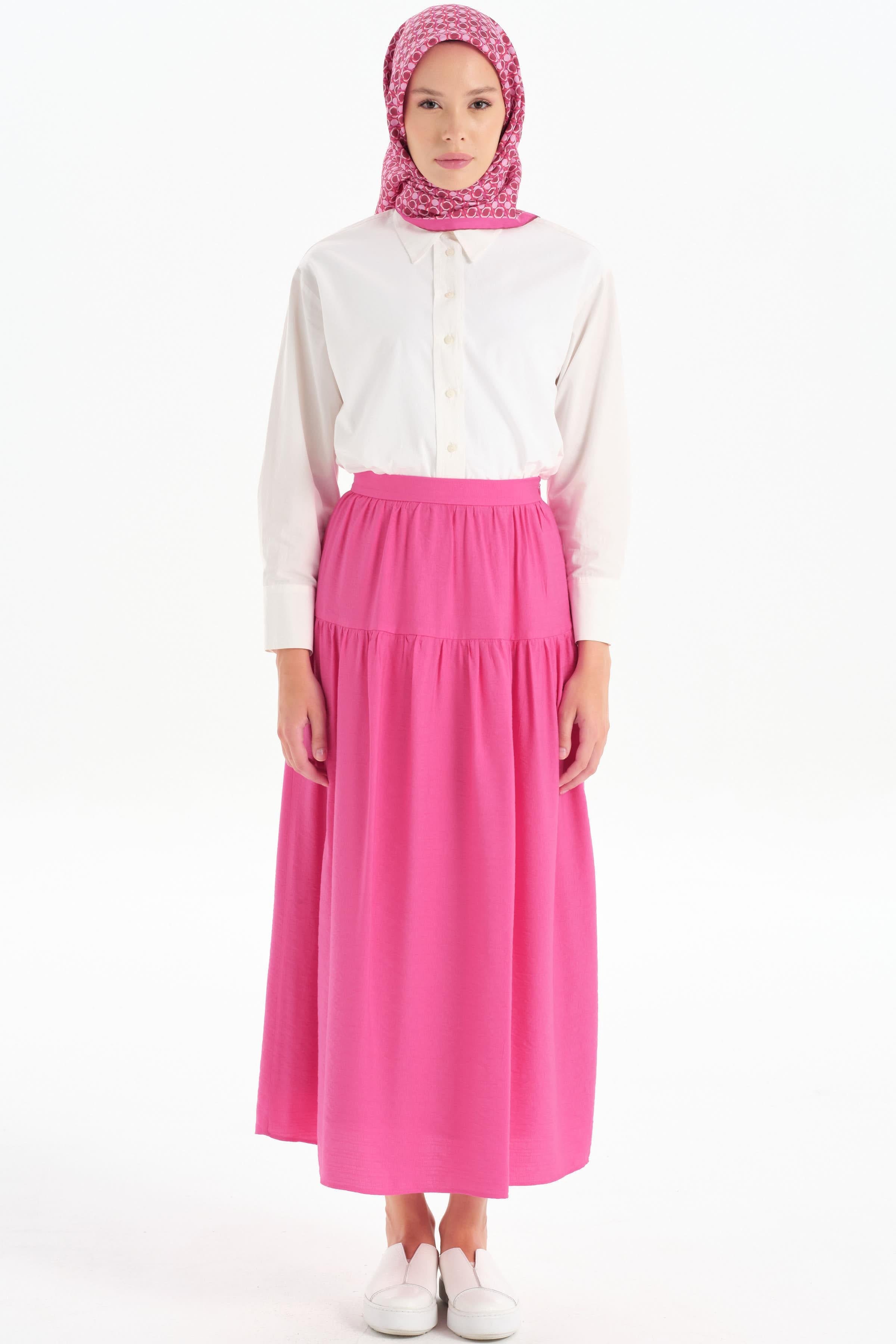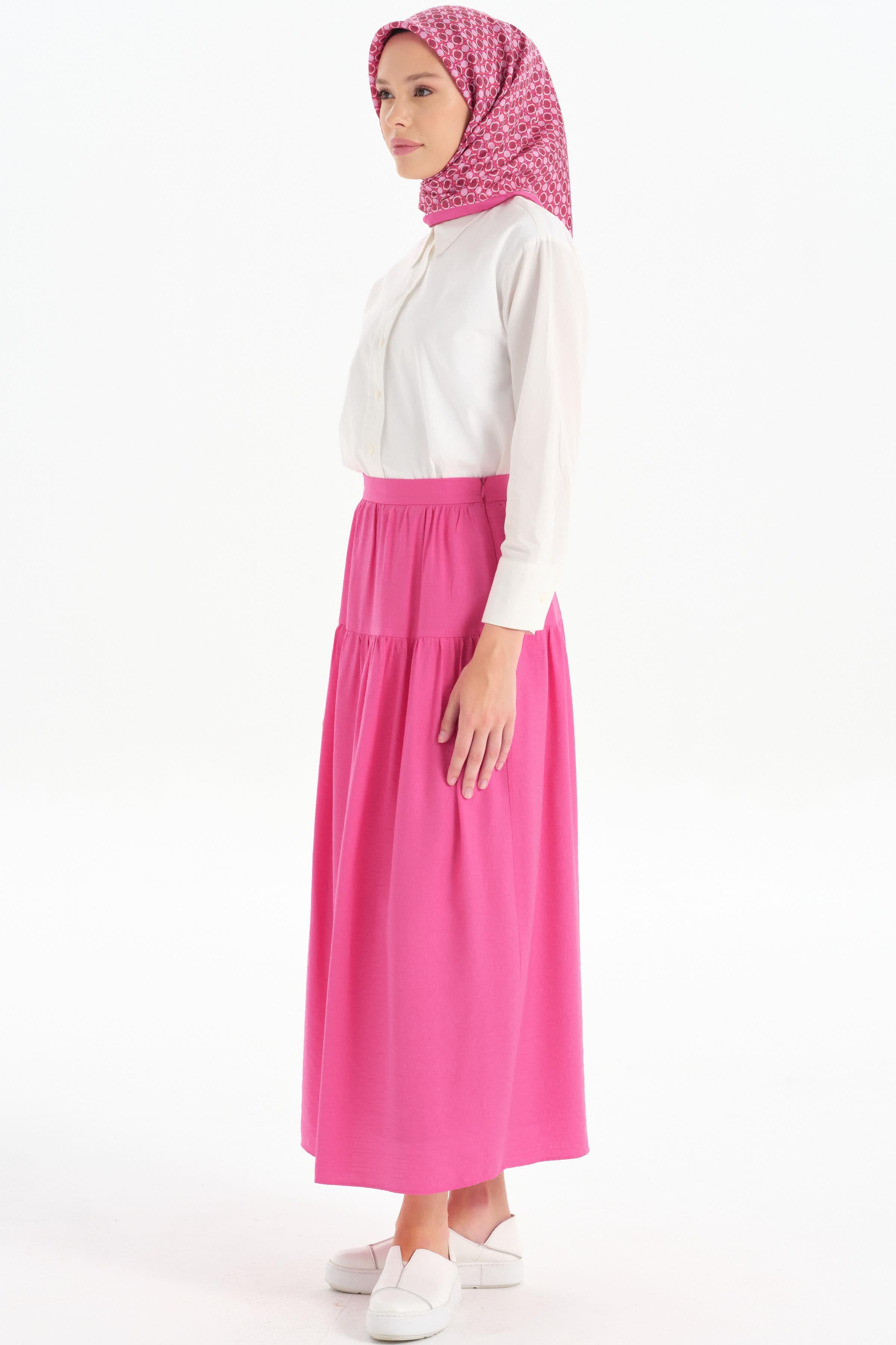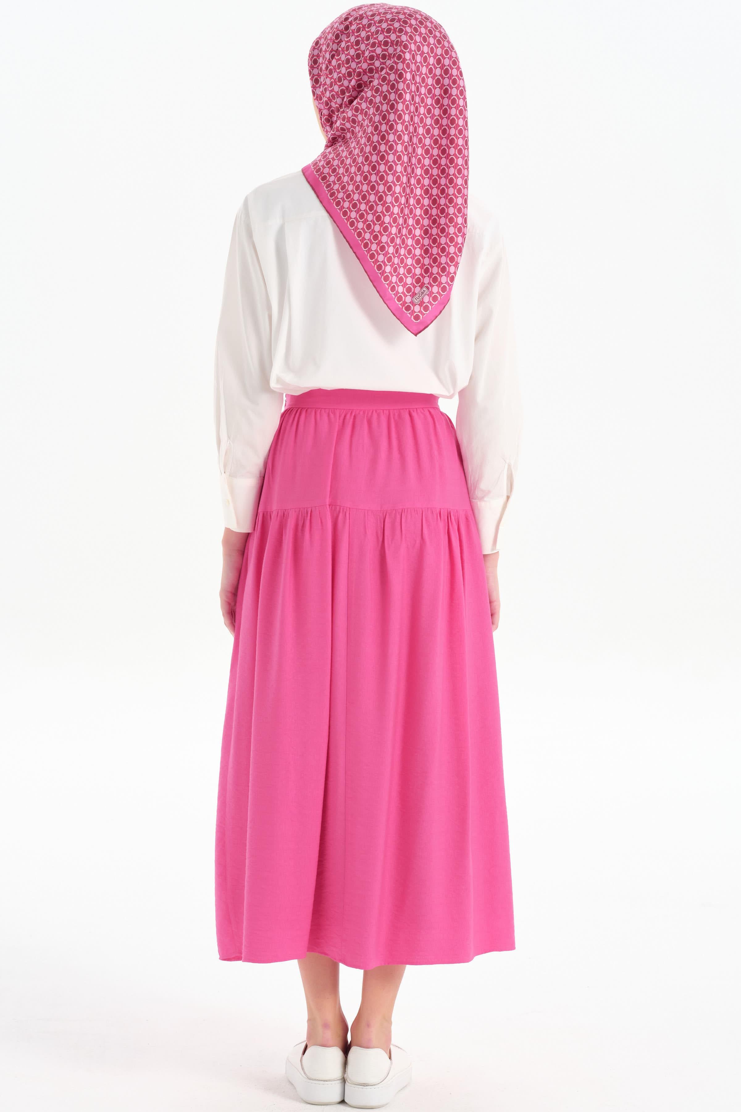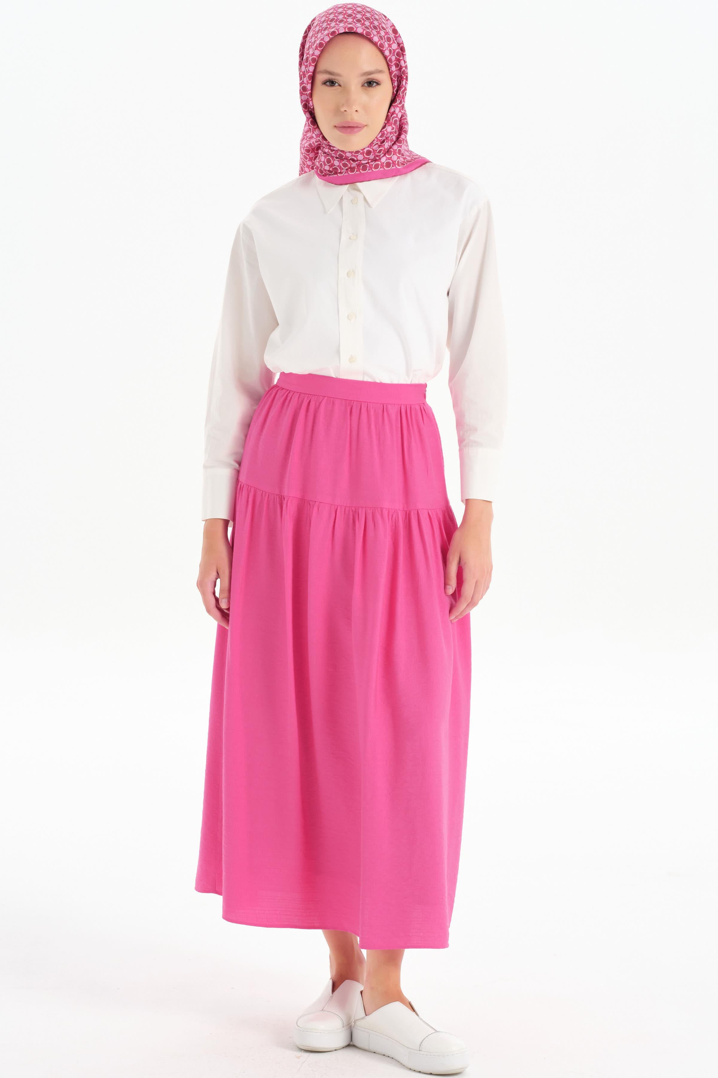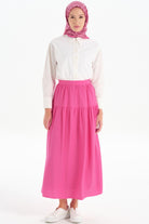 Kesik Detaylı Büzgülü Etek - Fuşya