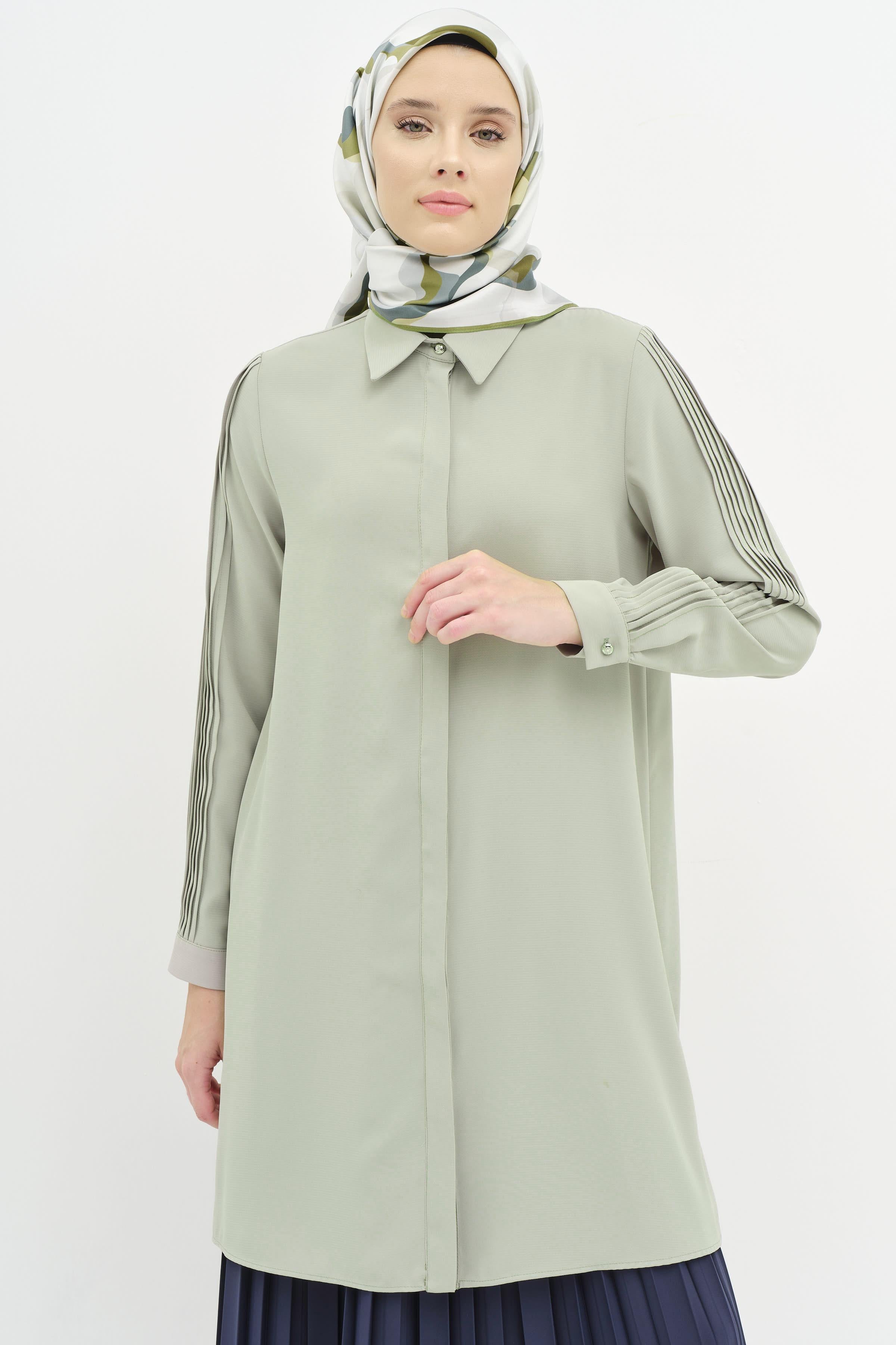 Kolları Nervür Detaylı Tunik, sade tasarımına ince ve zarif dokunuşlar ekleyen şık bir modeldir. Nervür detayları, kolların üzerinde yer alan ince ve düzenli dikişlerle oluşturulmuş çizgiler olup, tunikte sofistike bir görünüm sağlar.