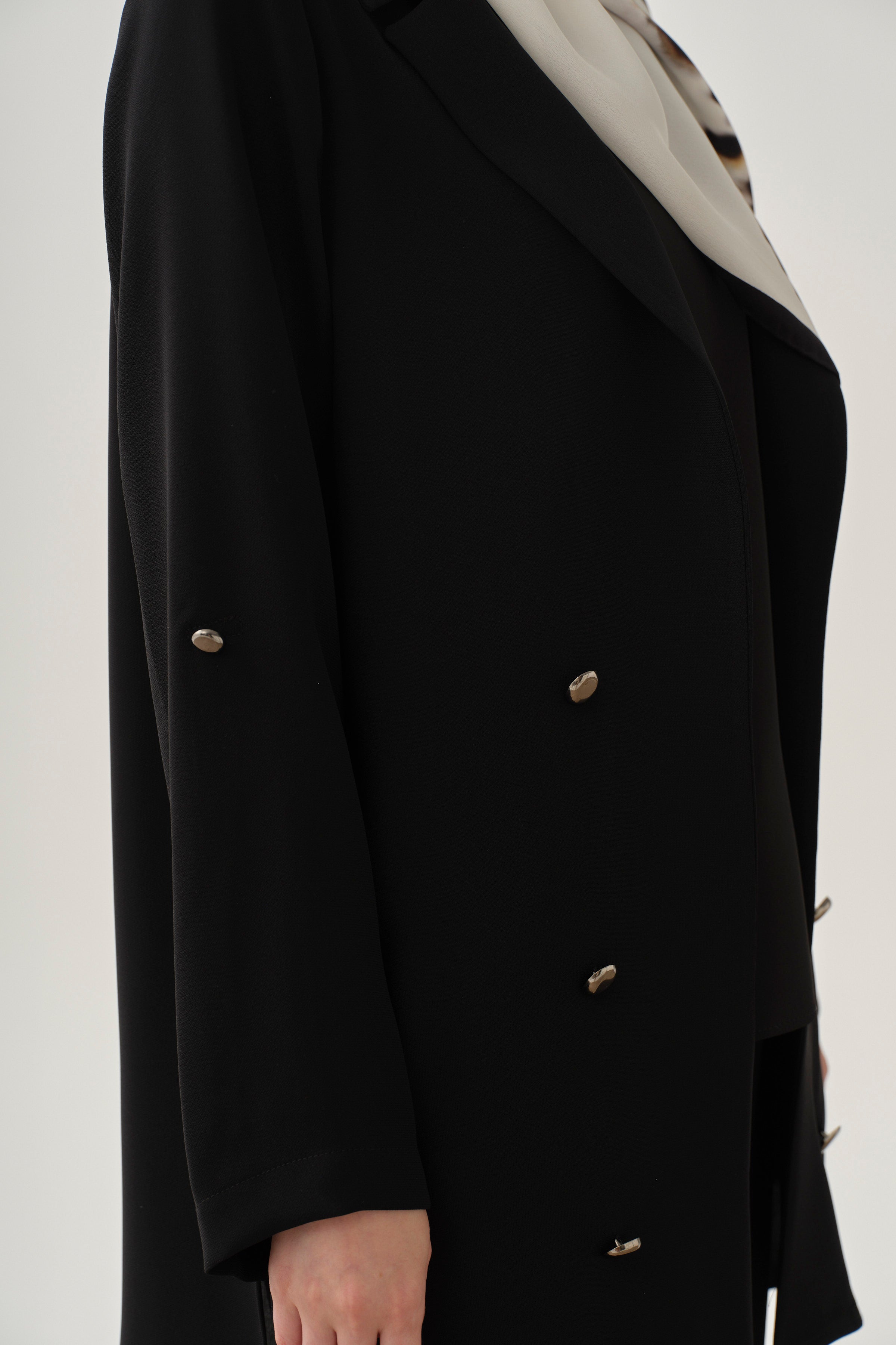 Kolu Bant Detaylı Süs Düğmeli Ceket - Siyah