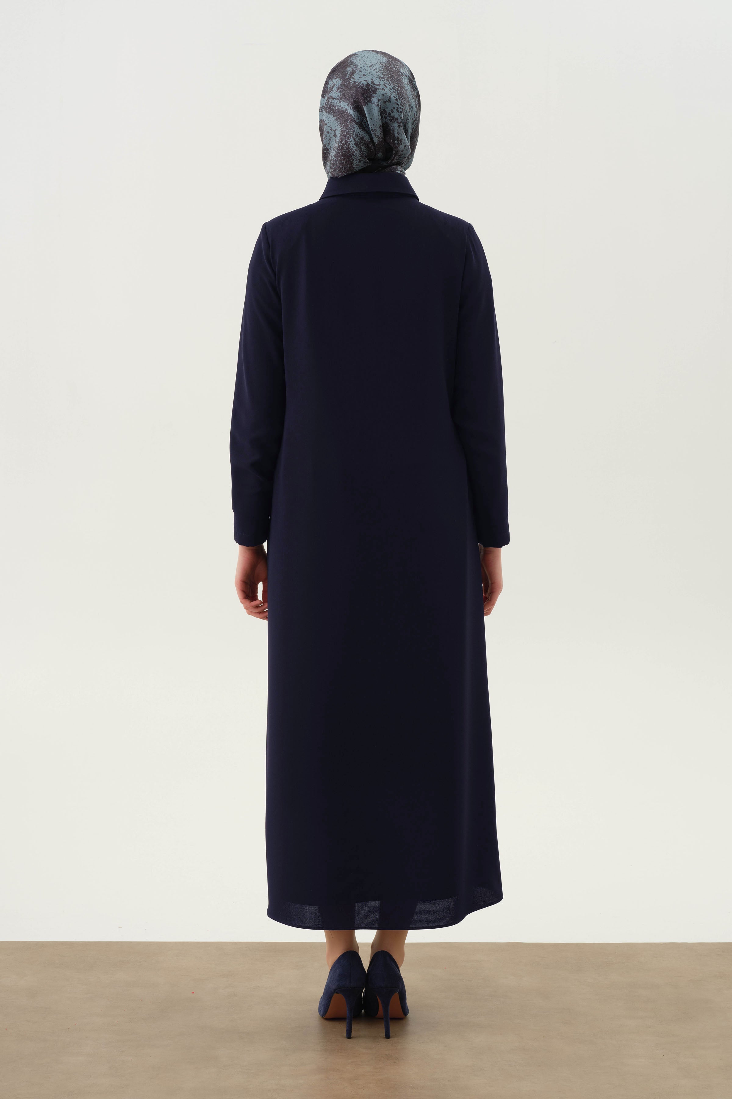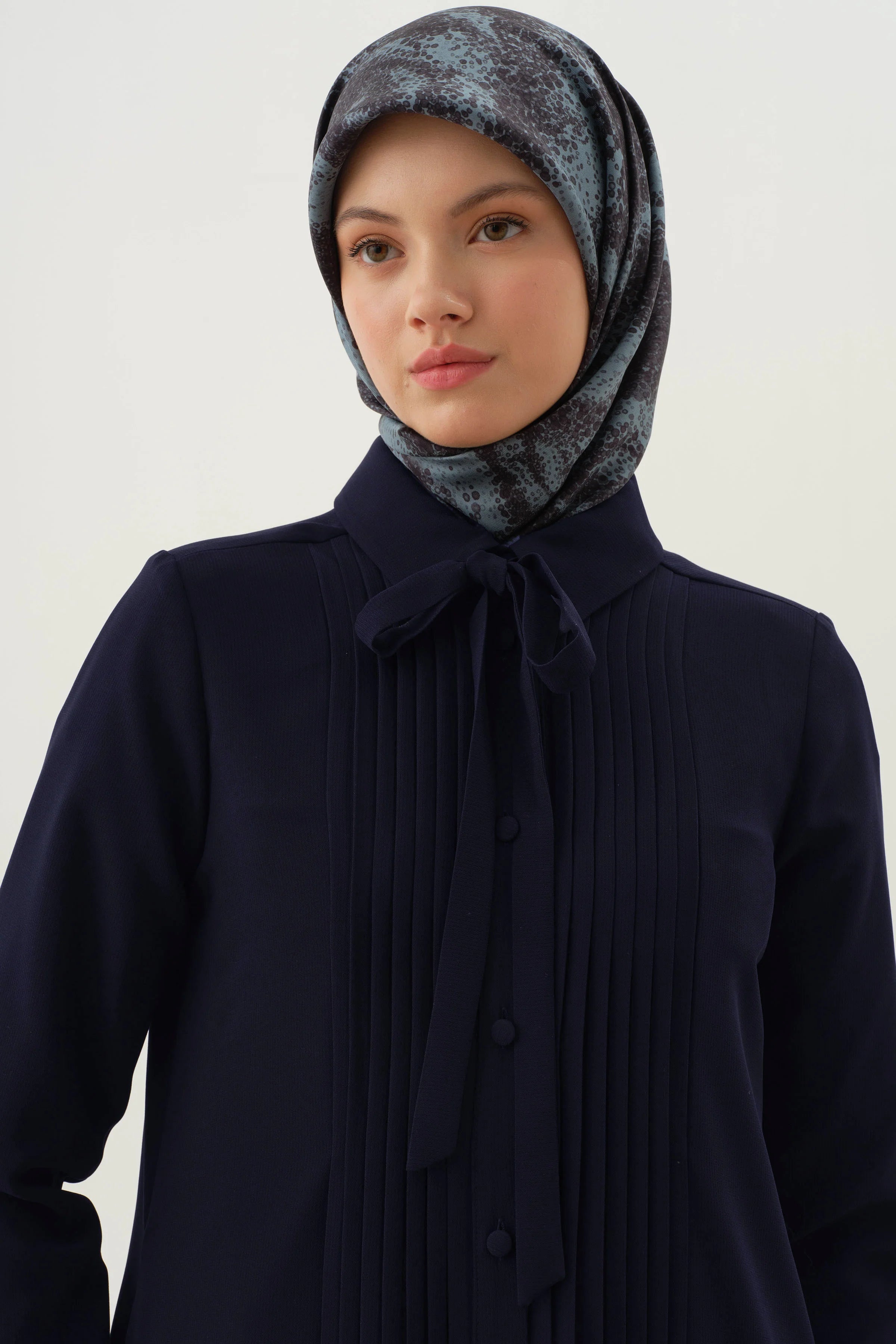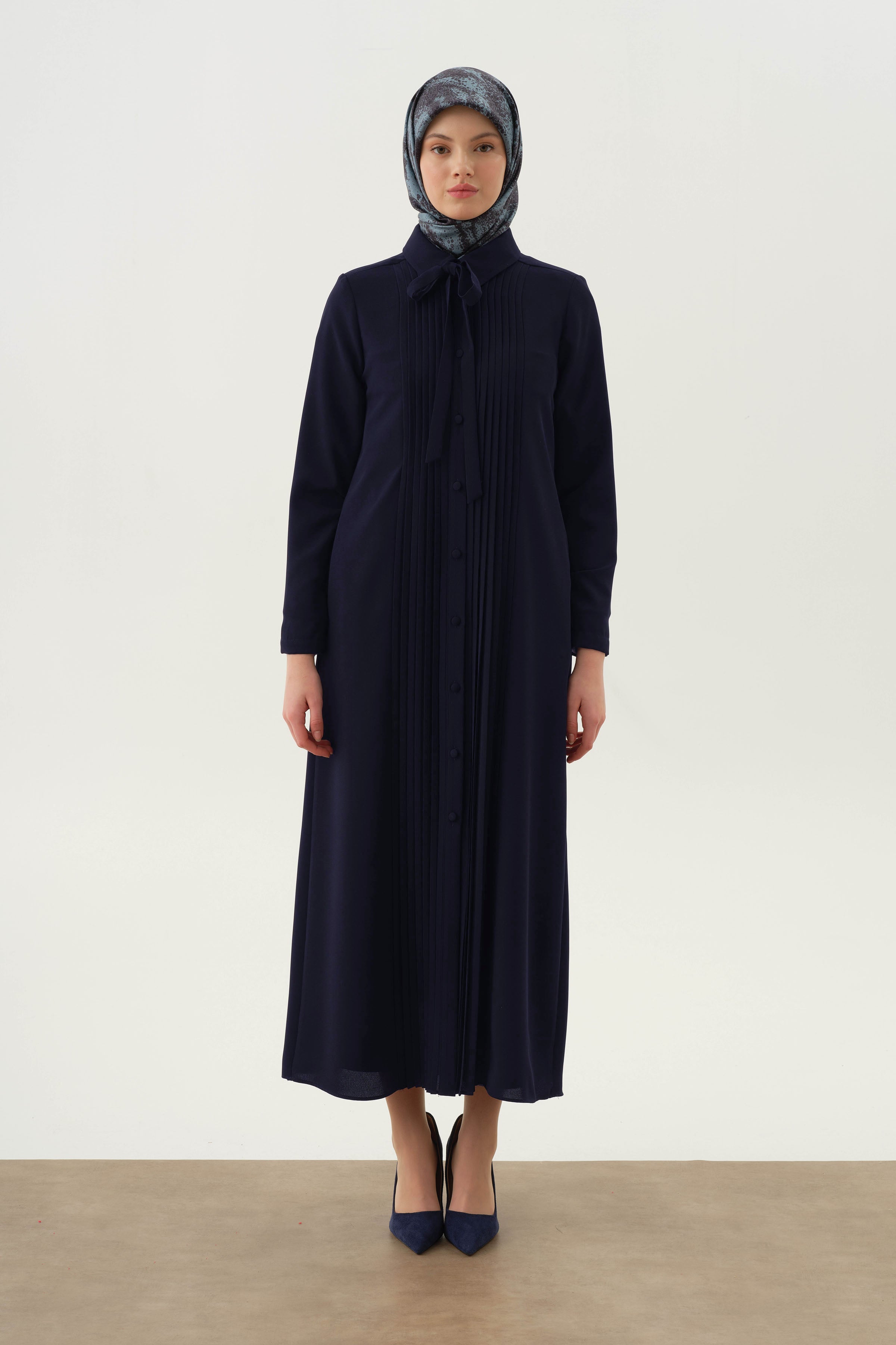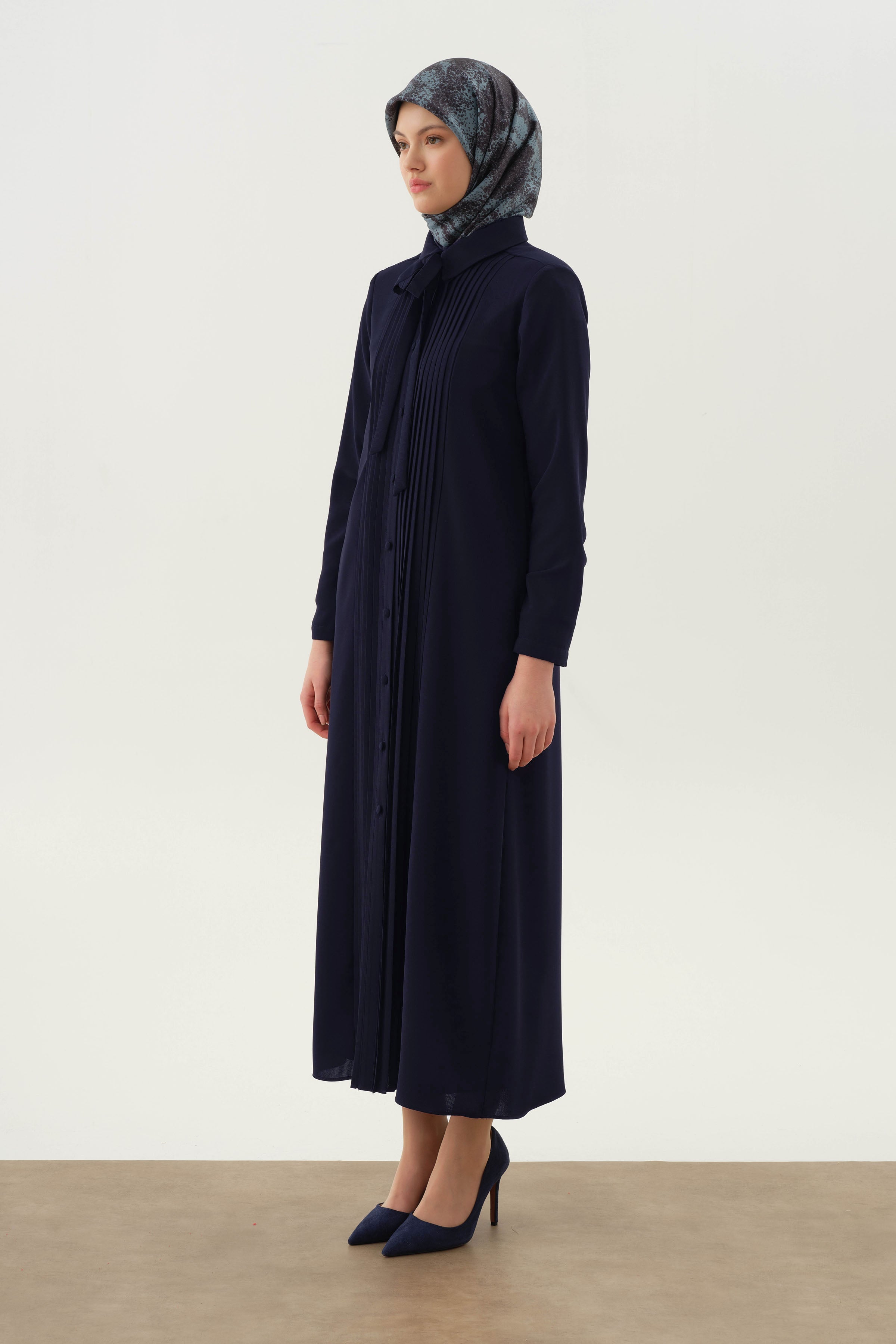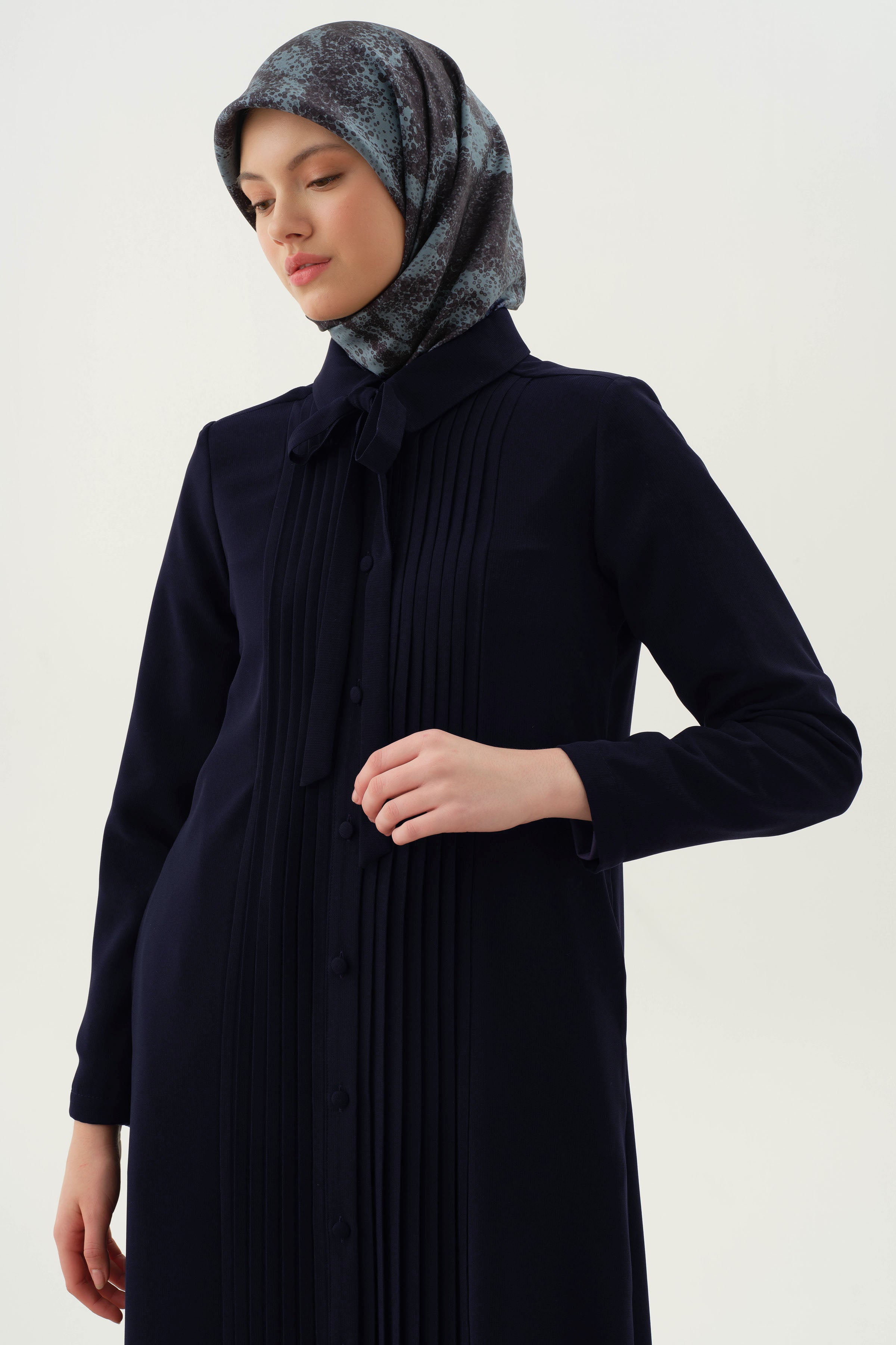 Kravat Yaka Piliseli Pardesü - Lacivert