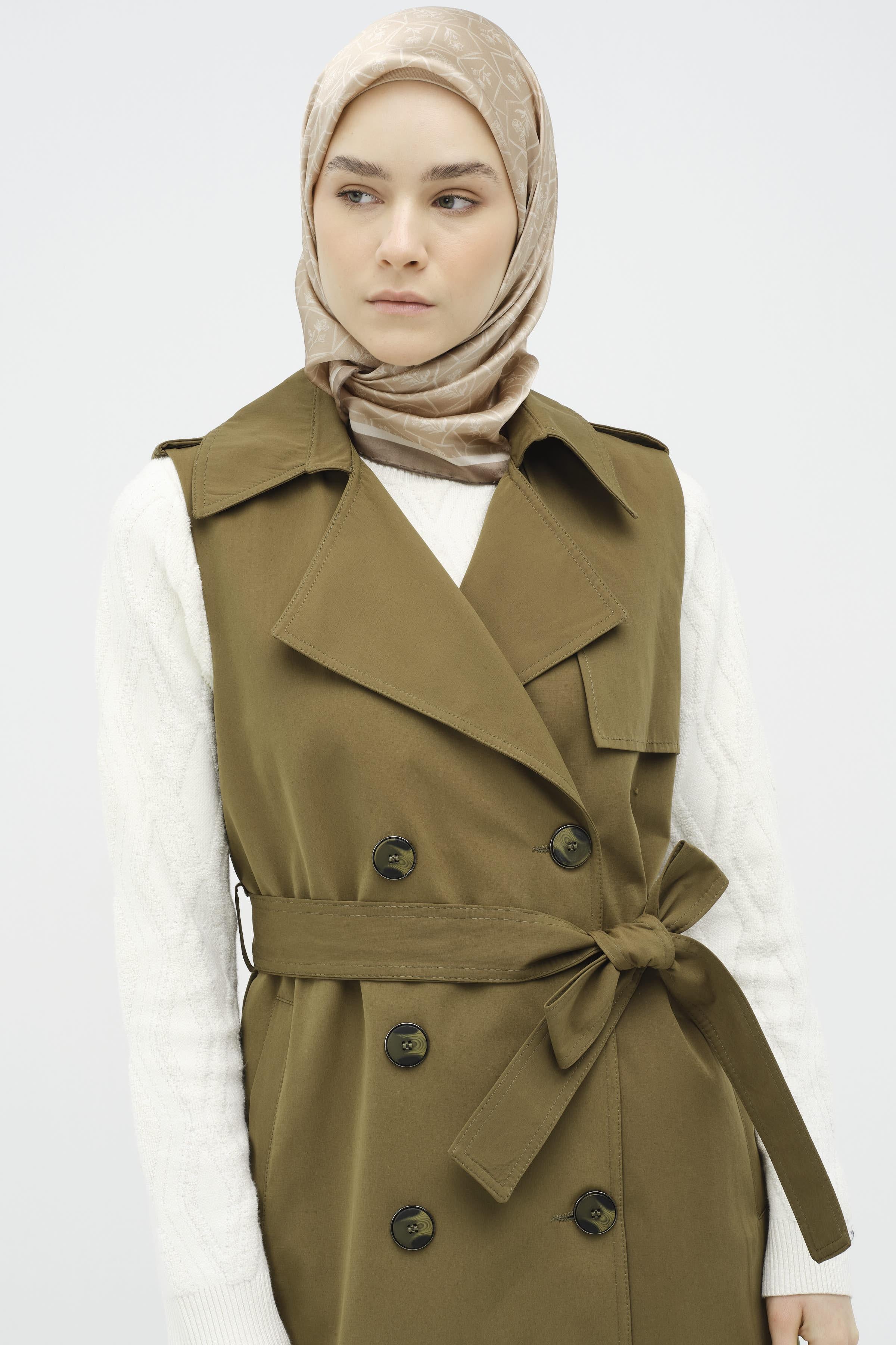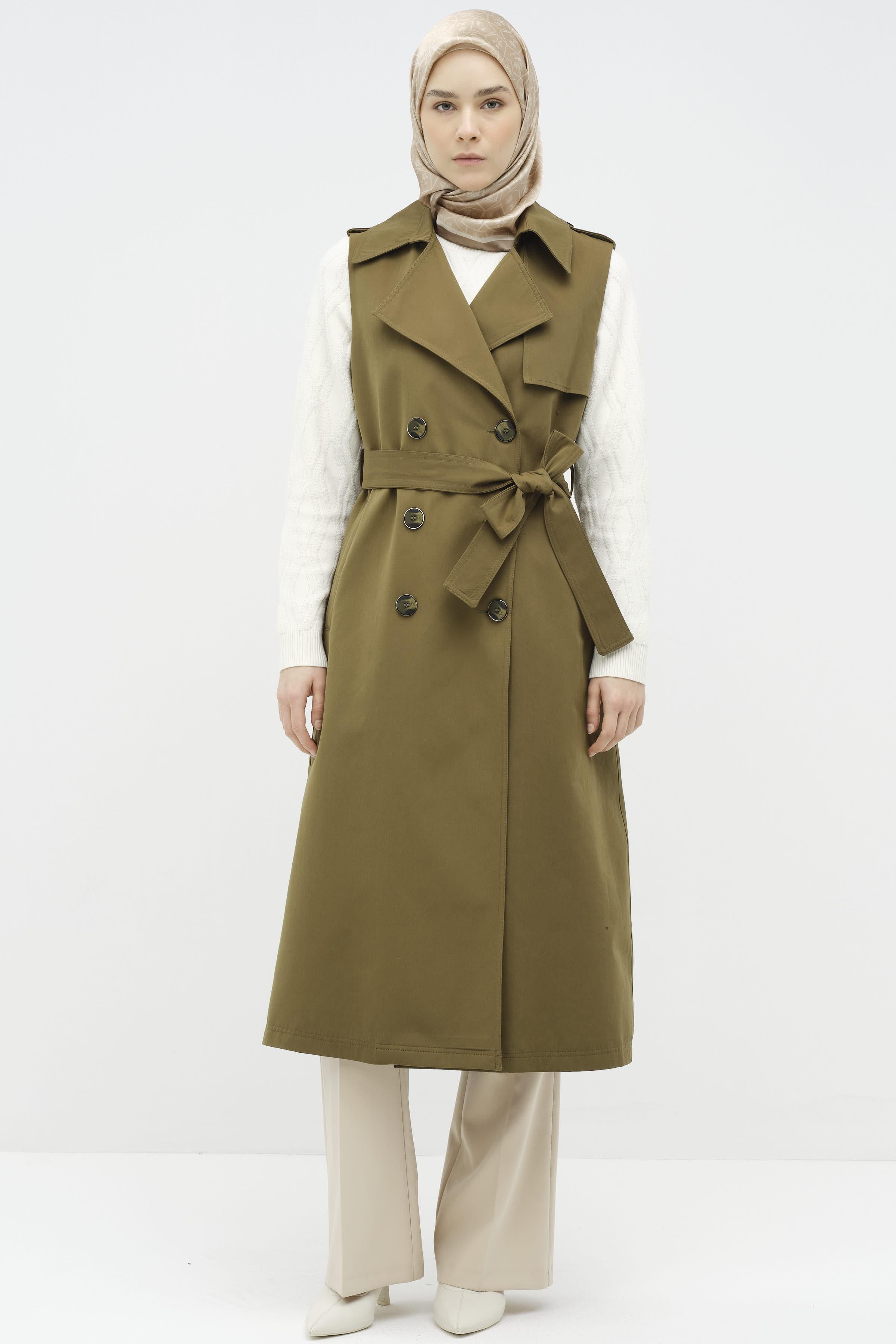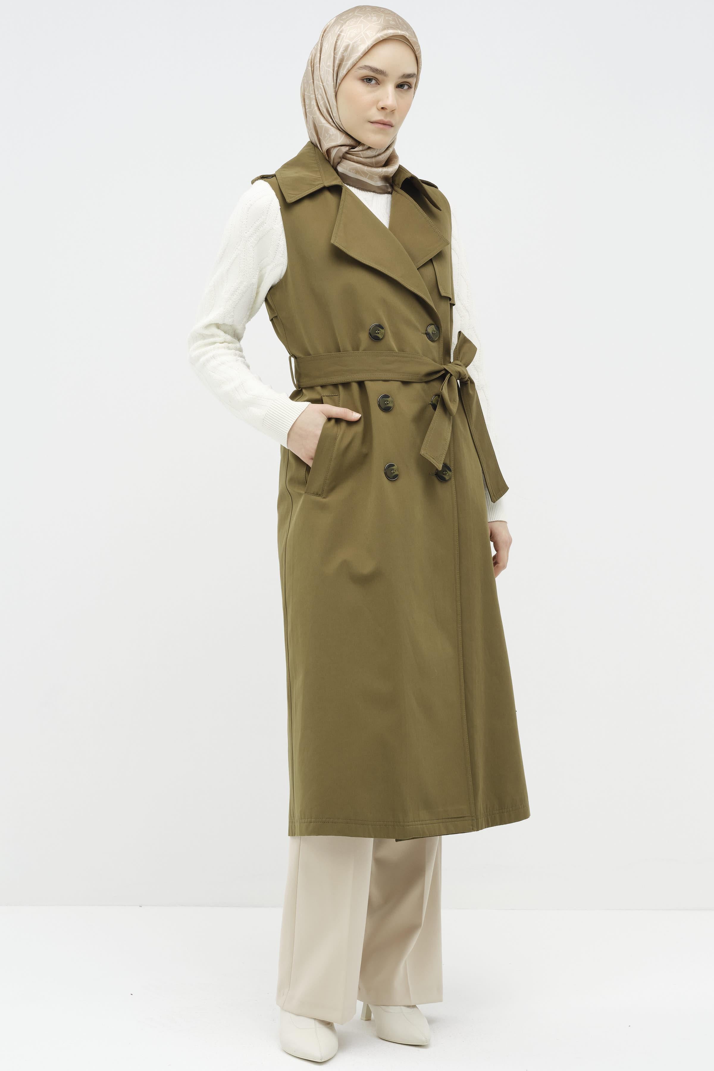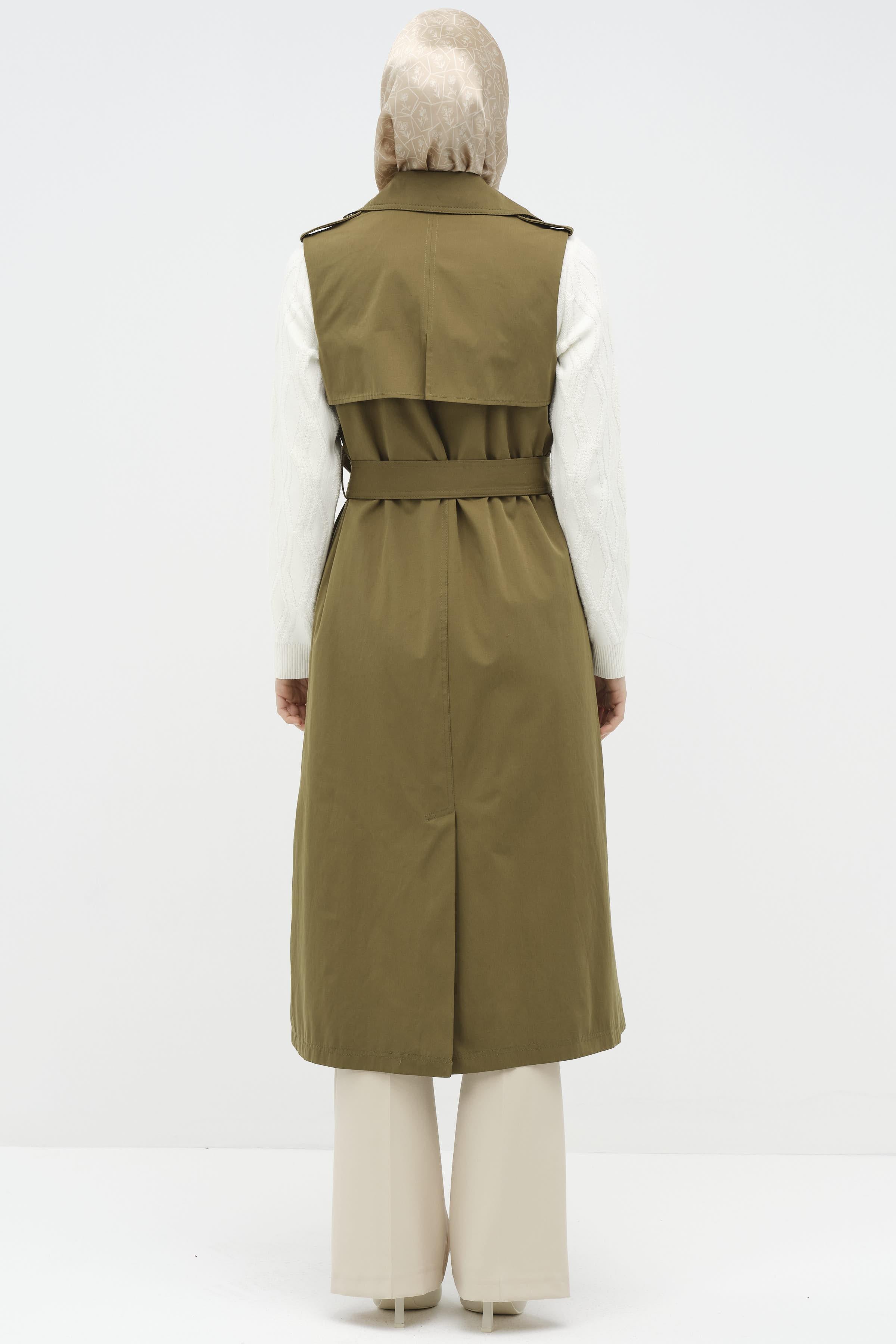 Kruvaze Düğmeli Uzun Yelek - Haki