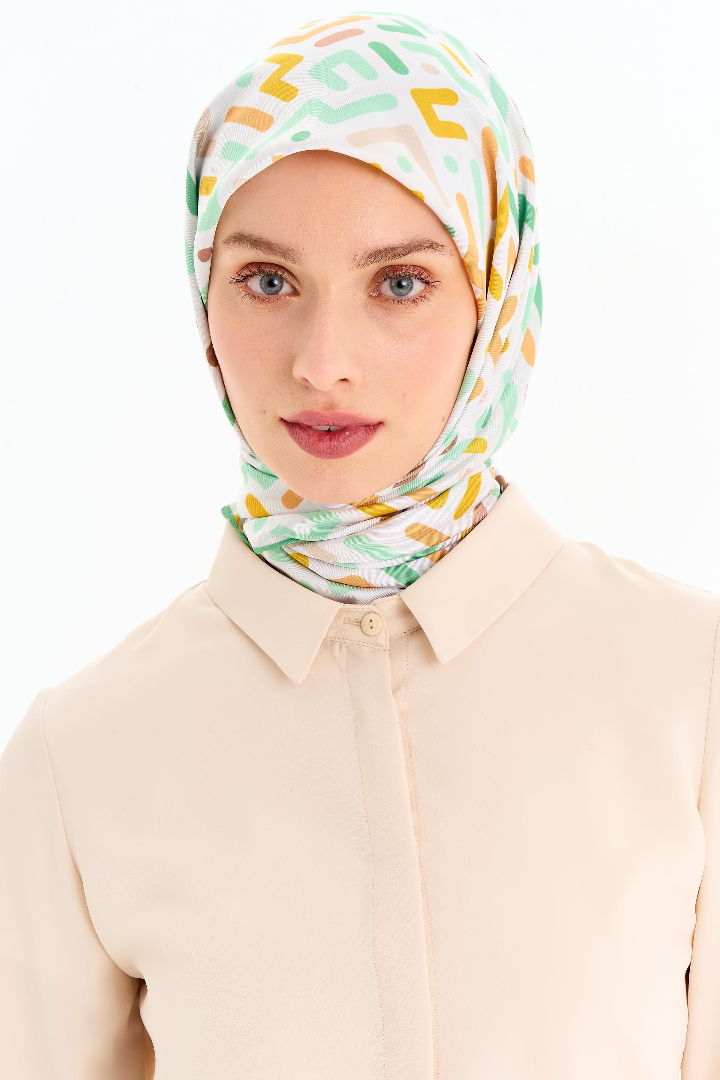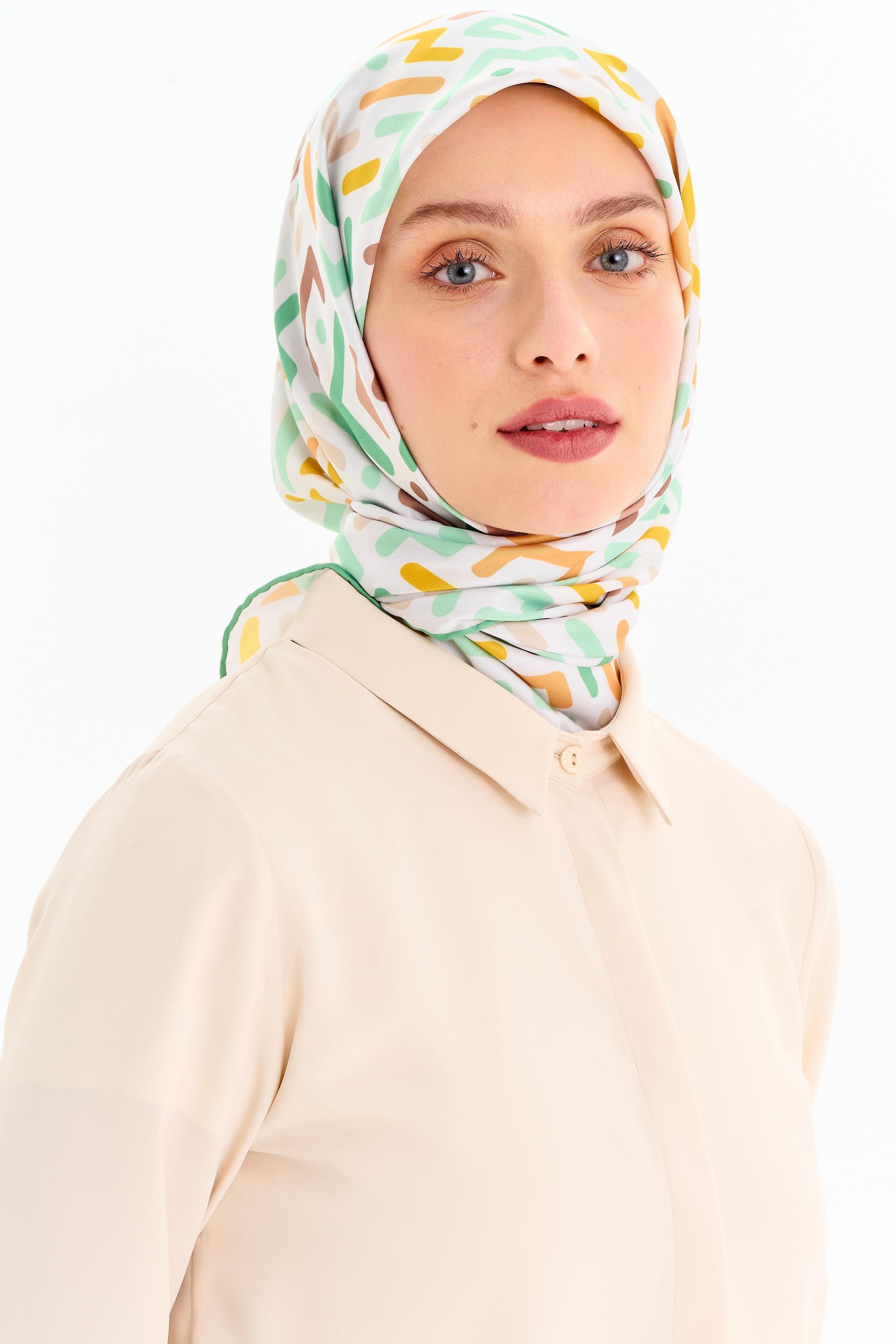 Labirent Desenli Stil Eşarp - Benetton Yeşili