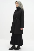 Lastikli büzgü detayları, kapın bele oturmasını sağlayarak feminen bir siluet oluşturur. İnce kapitone dokusu, şıklığı ve rahatlığı bir arada sunarken, mevsim geçişlerinde ideal bir tercih haline getirir.