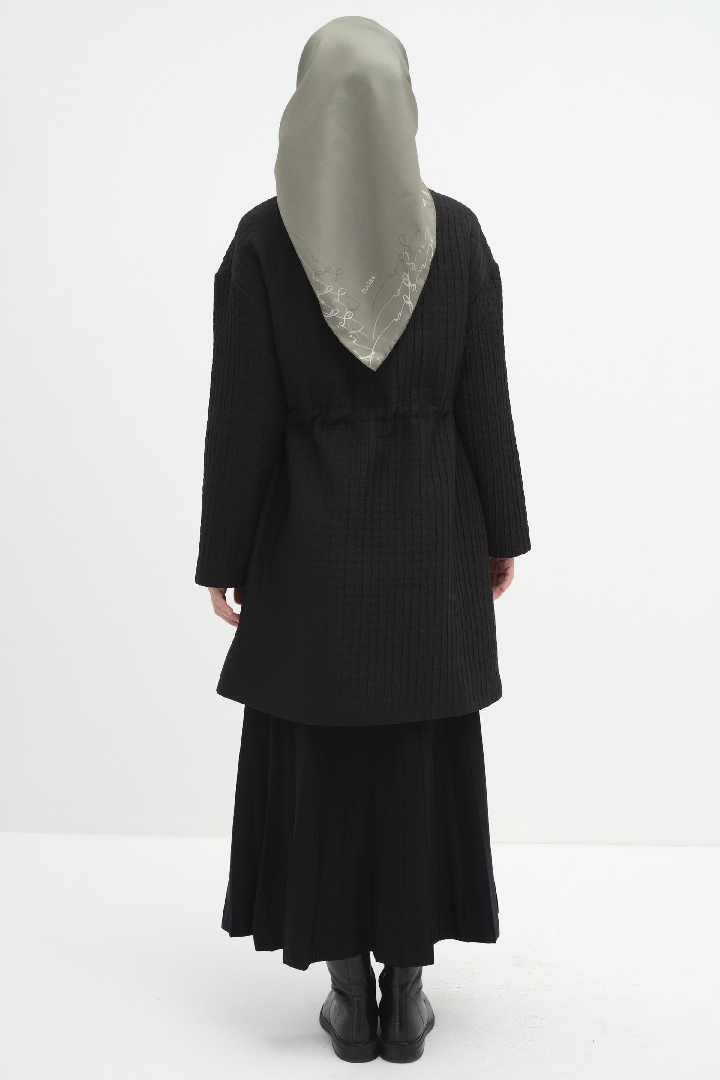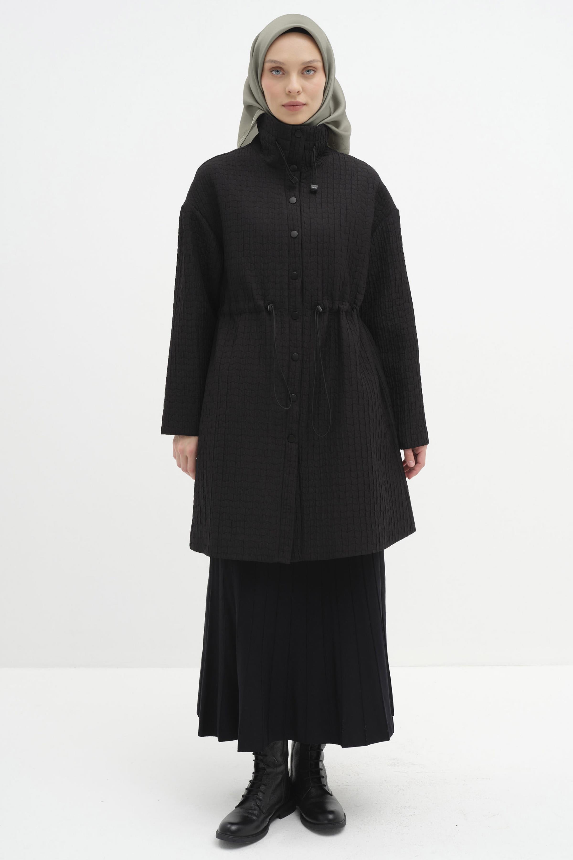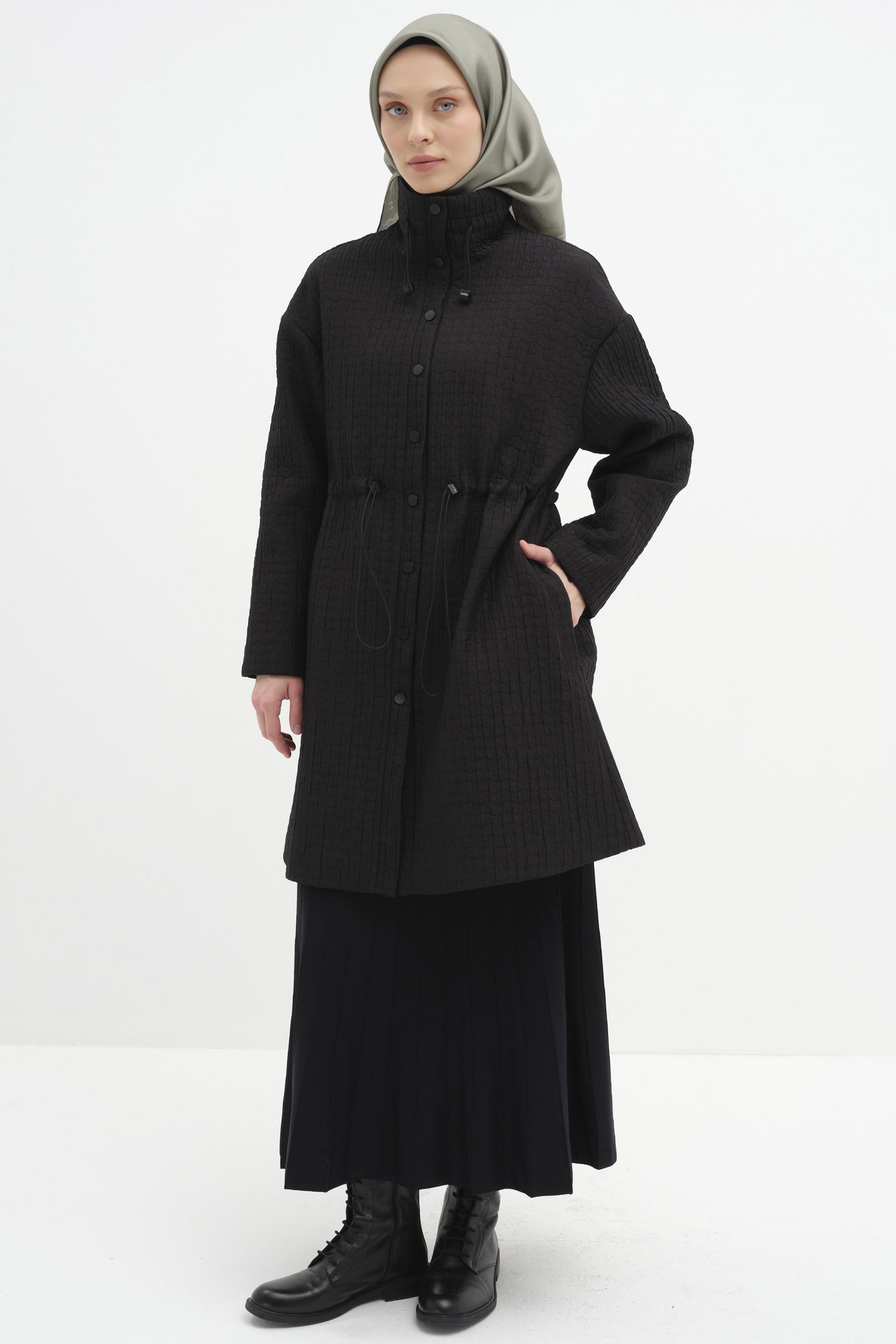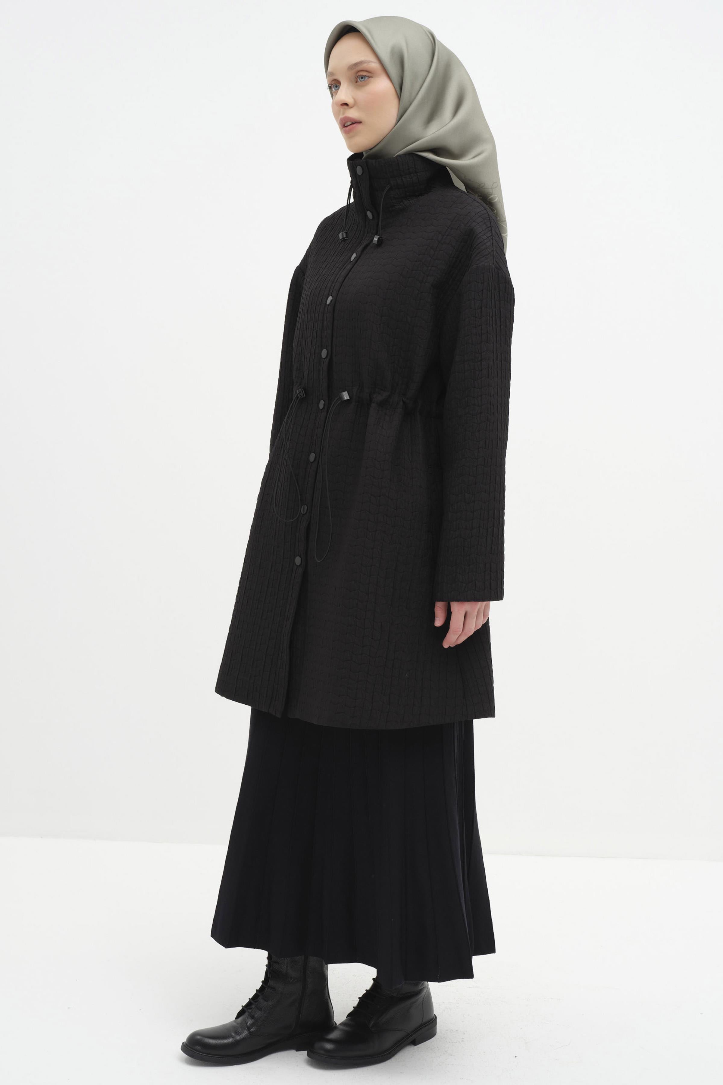 Lastik Büzgü Detaylı İnce Kapitone Kap - Siyah