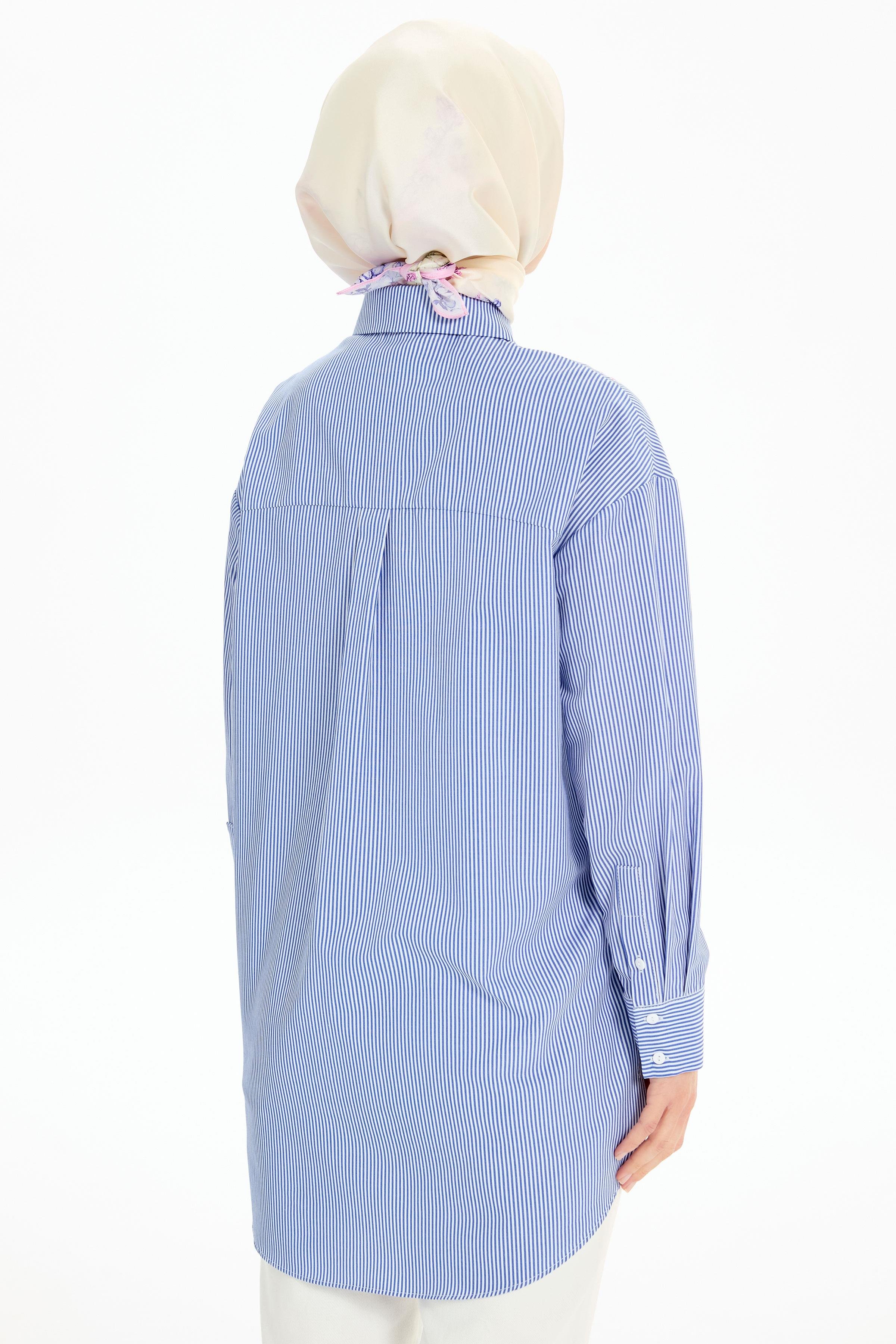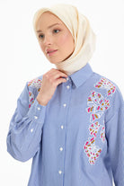 Nakış Detaylı Çizgili Tunik - Lacivert