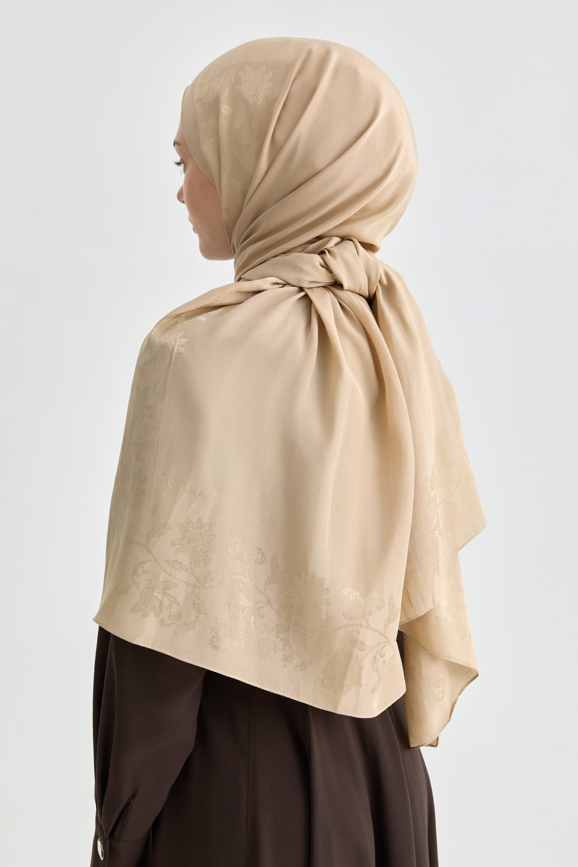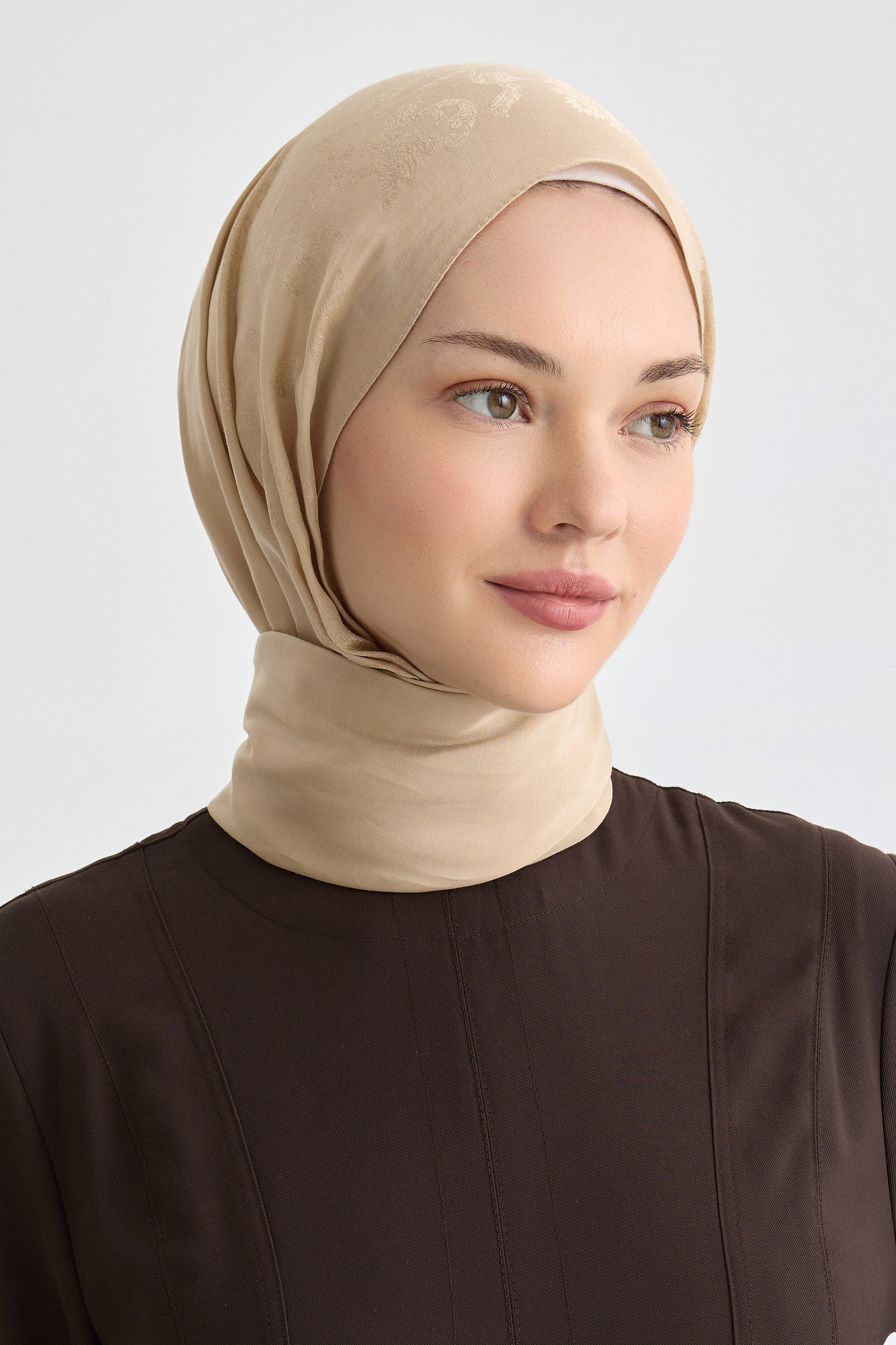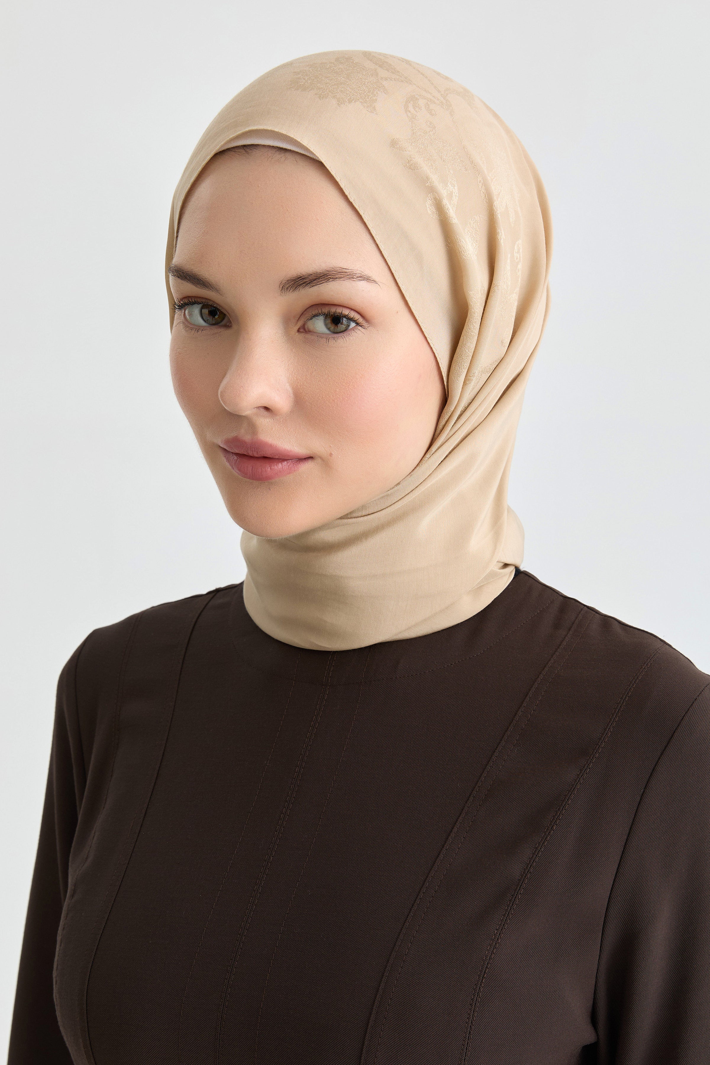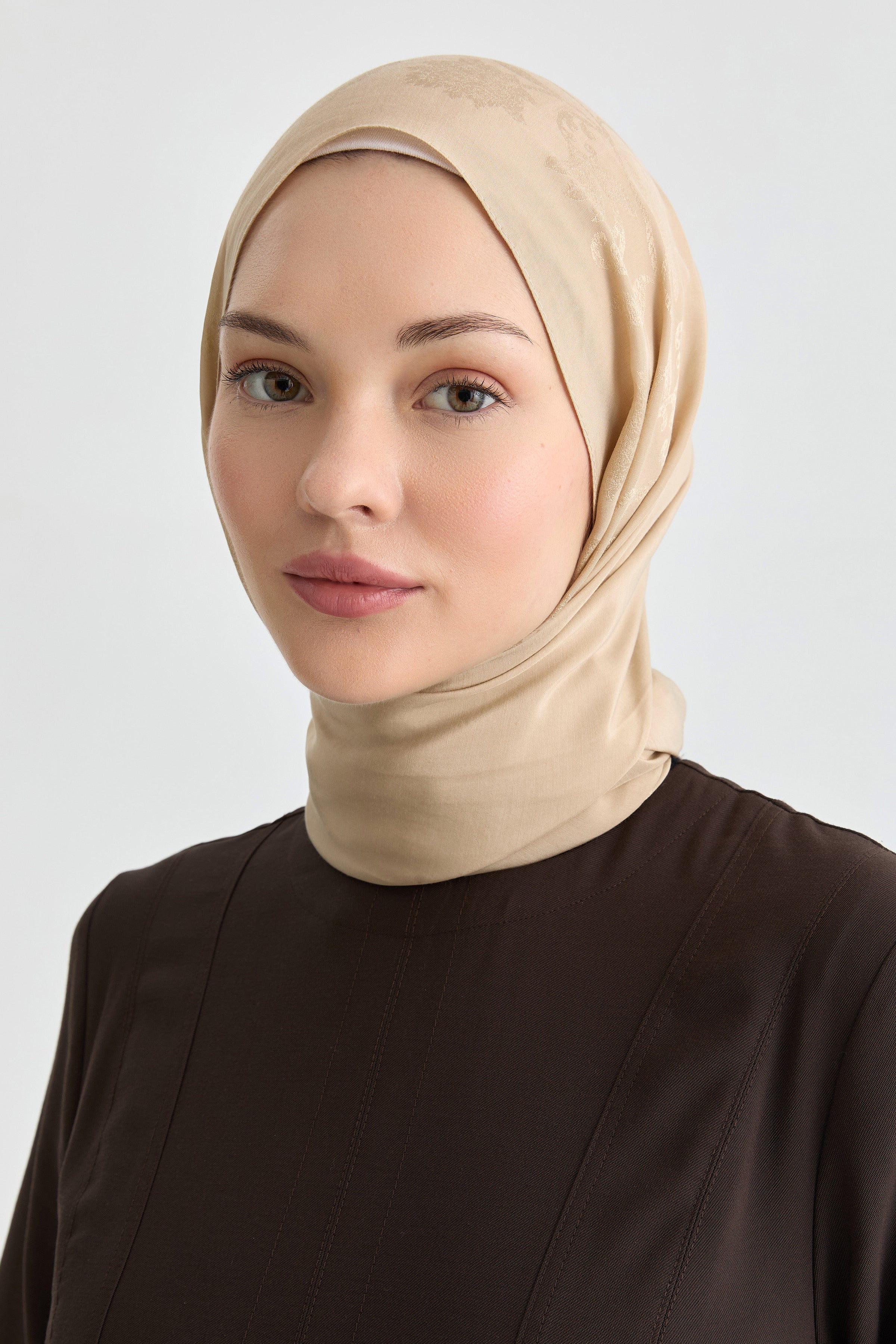 İnce jakar dokusunun zarif parıltısıyla öne çıkan Nevgül şal, doğal tonlarıyla sade şıklığı modern bir yorumda buluşturur. Hafif ve akıcı yapısı gün boyu konfor sağlarken, jakarın dokusal derinliği her kombine ince bir sofistike hava katar.