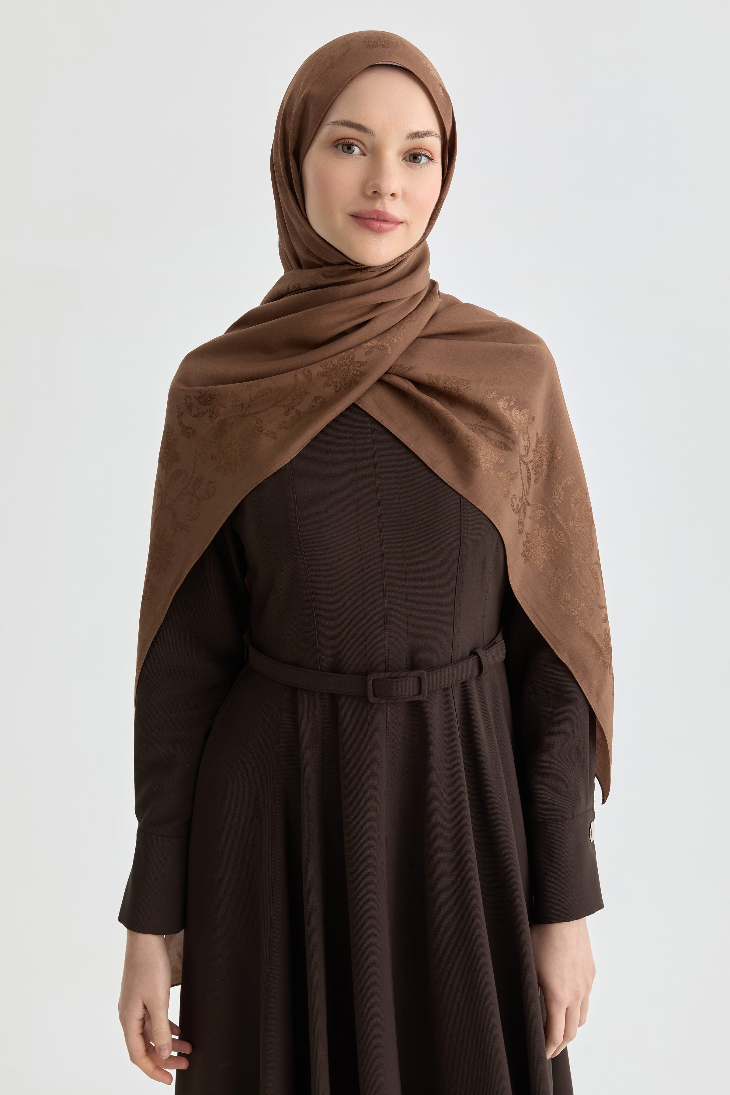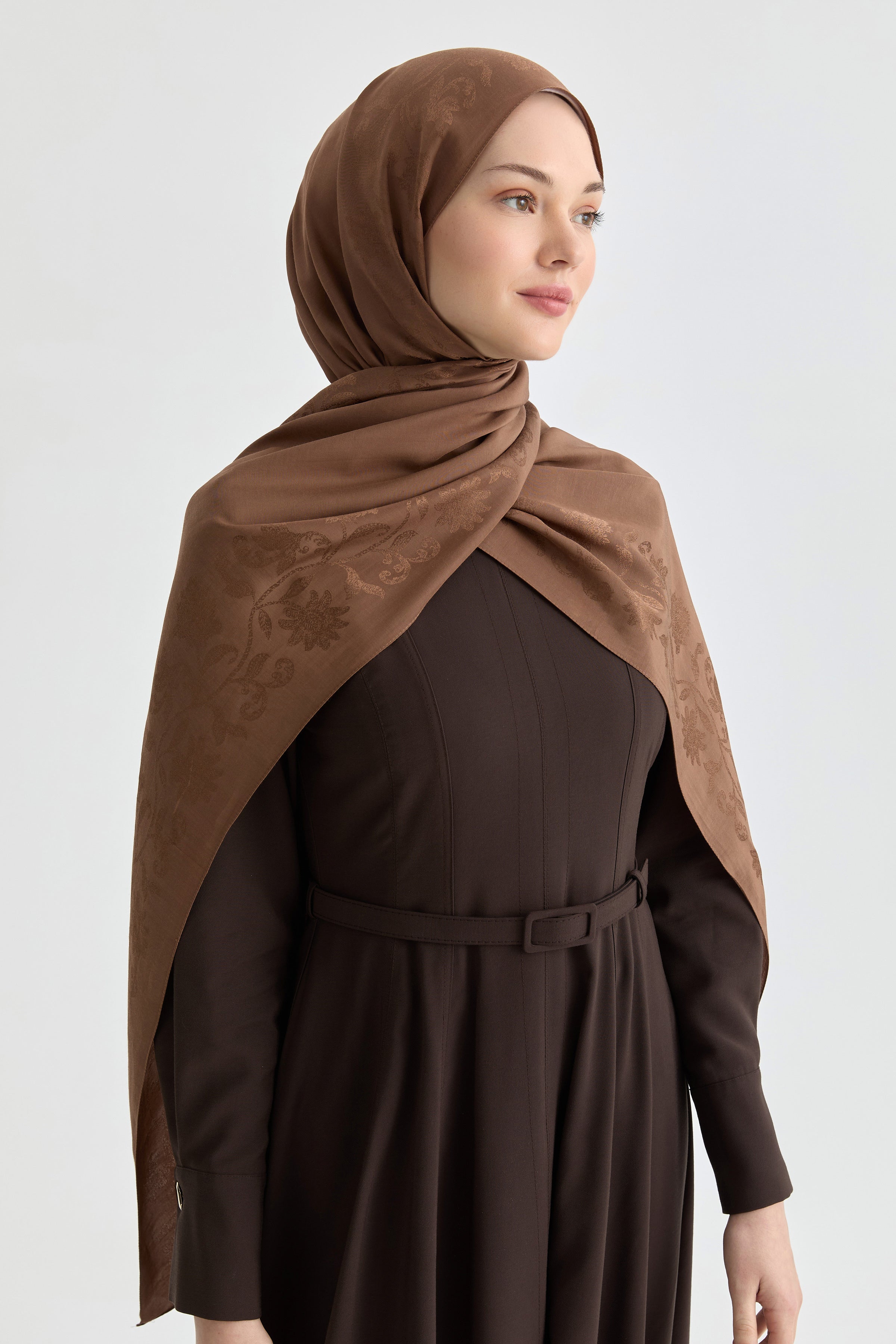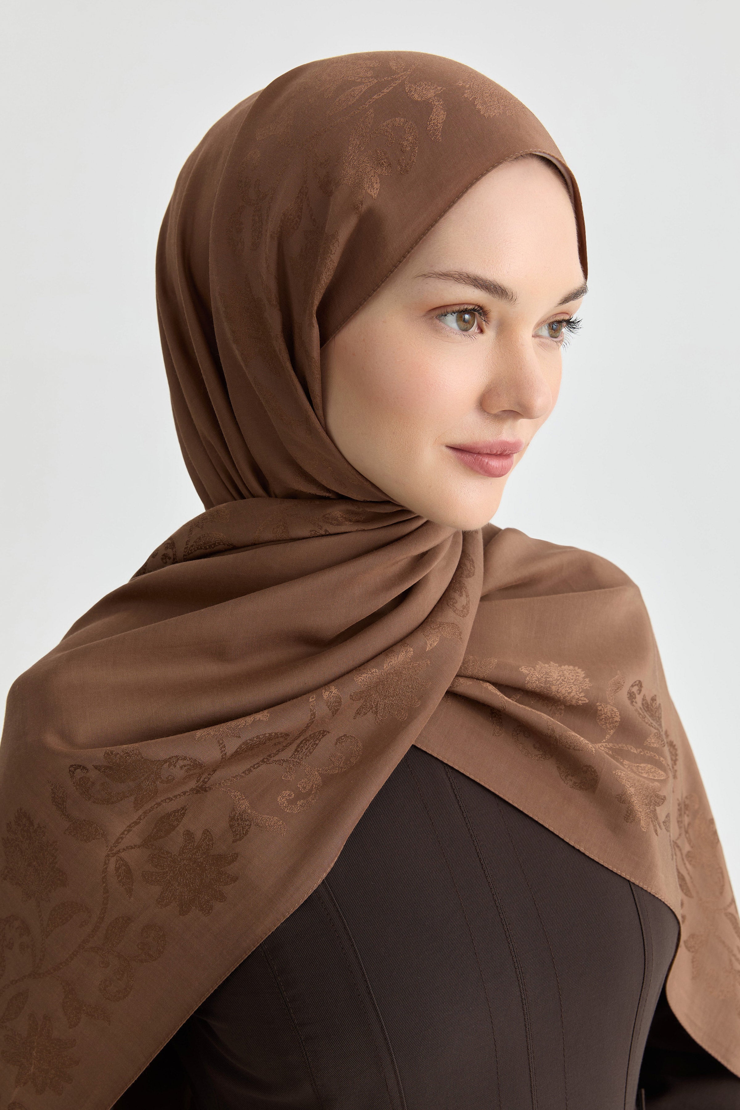 İnce jakar dokusunun zarif parıltısıyla öne çıkan Nevgül şal, doğal tonlarıyla sade şıklığı modern bir yorumda buluşturur. Hafif ve akıcı yapısı gün boyu konfor sağlarken, jakarın dokusal derinliği her kombine ince bir sofistike hava katar.