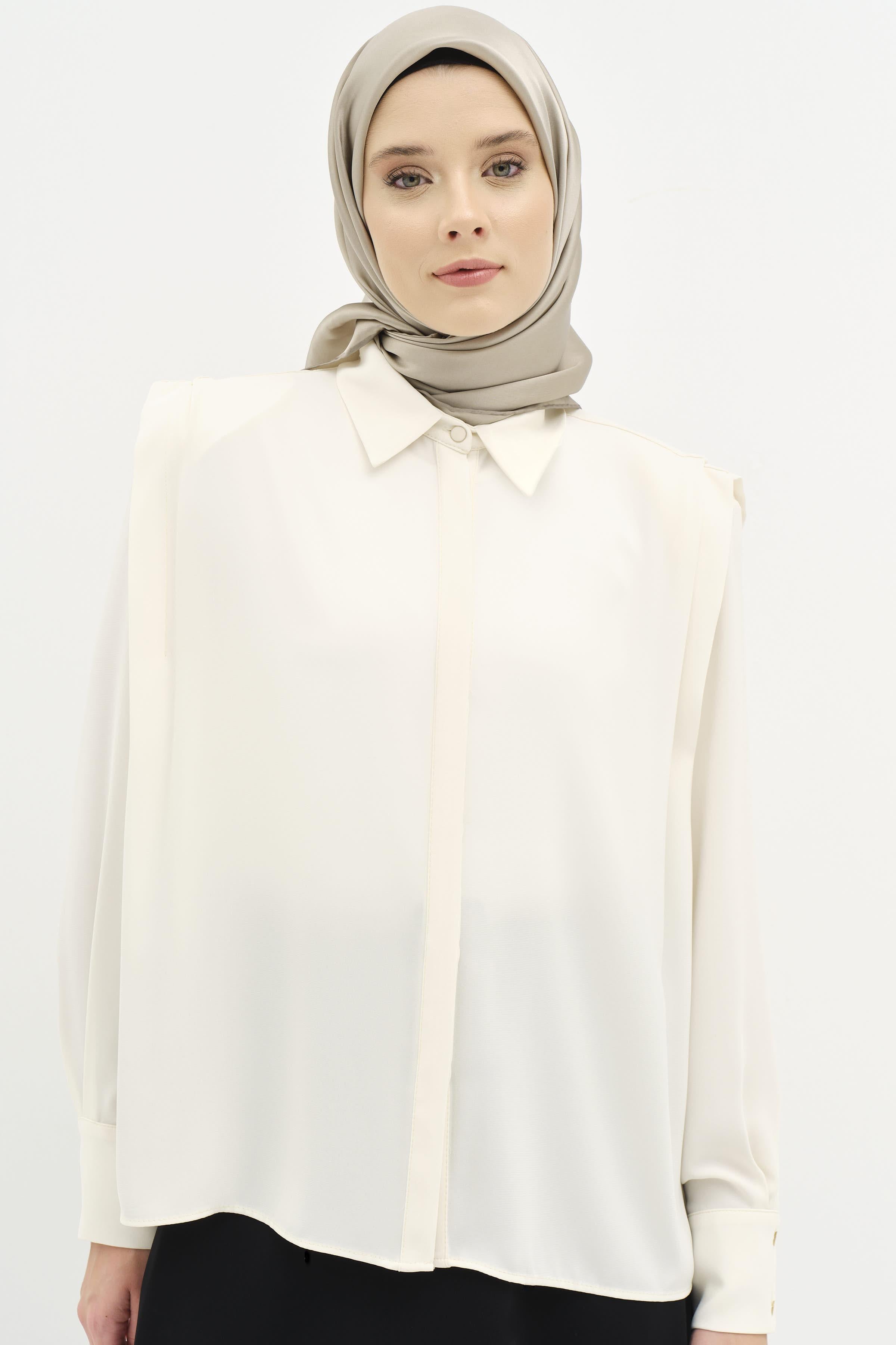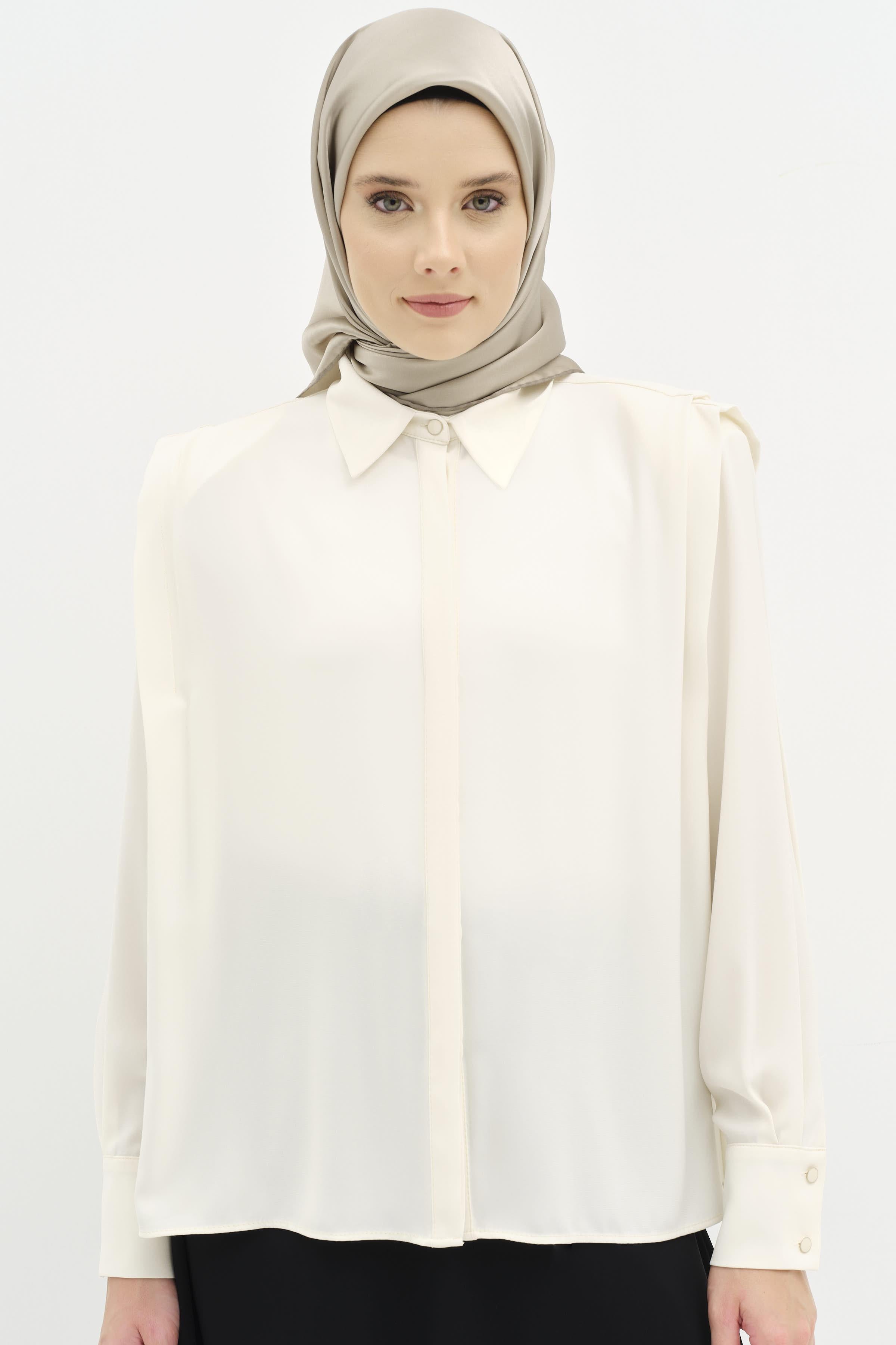 Omuz Pile Detaylı Vatkalı Gömlek - Ekru