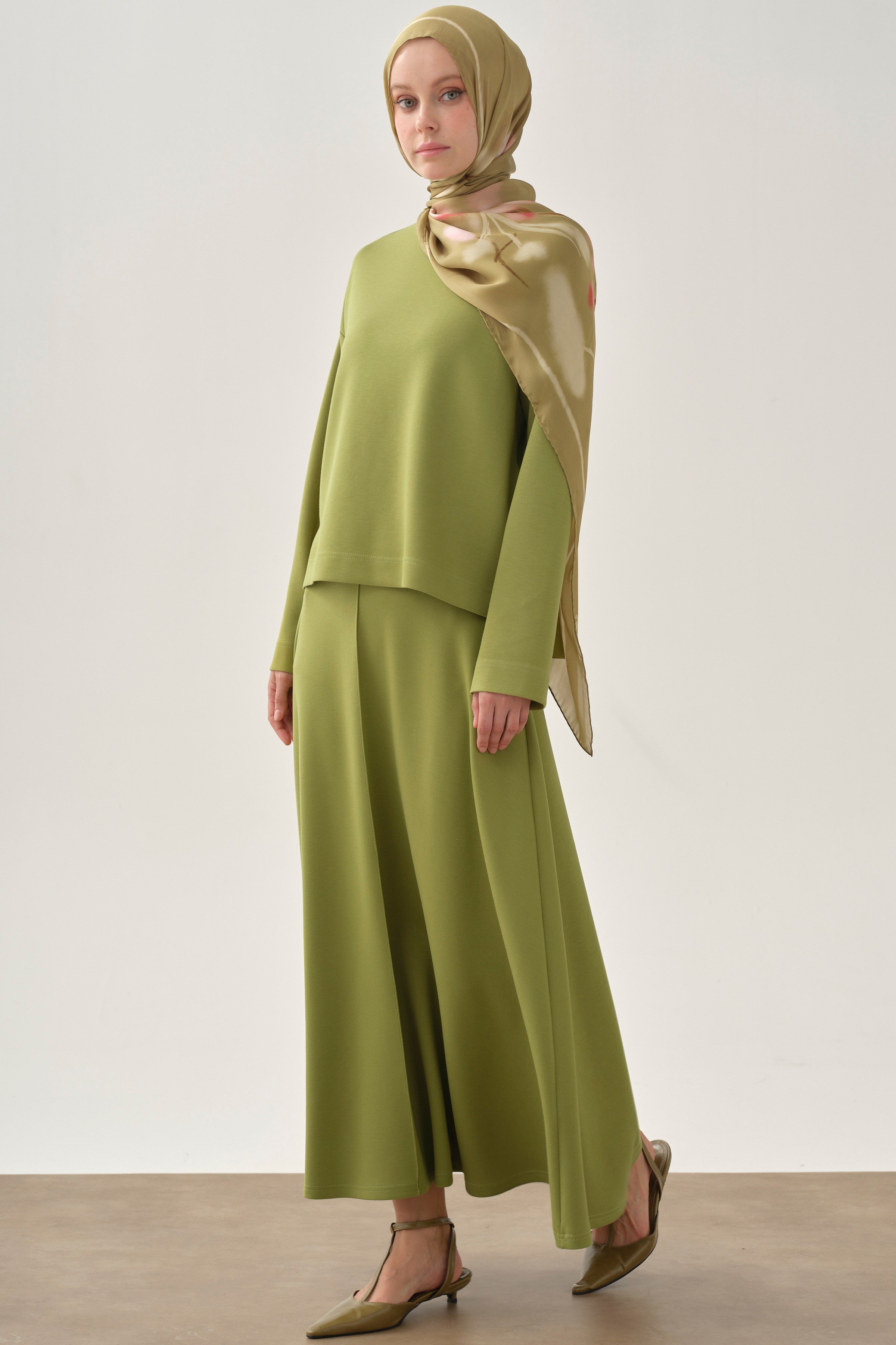 Konforun ve şıklığın mükemmel uyumu: Örme Bluz Etek Takım, yumuşak dokusu ve zarif duruşuyla gün boyu stil sahibi bir rahatlık sunar. Vücuda nazikçe oturan esnek örme kumaşı sayesinde hem hareket özgürlüğü sağlar hem de modern bir siluet kazandırır.