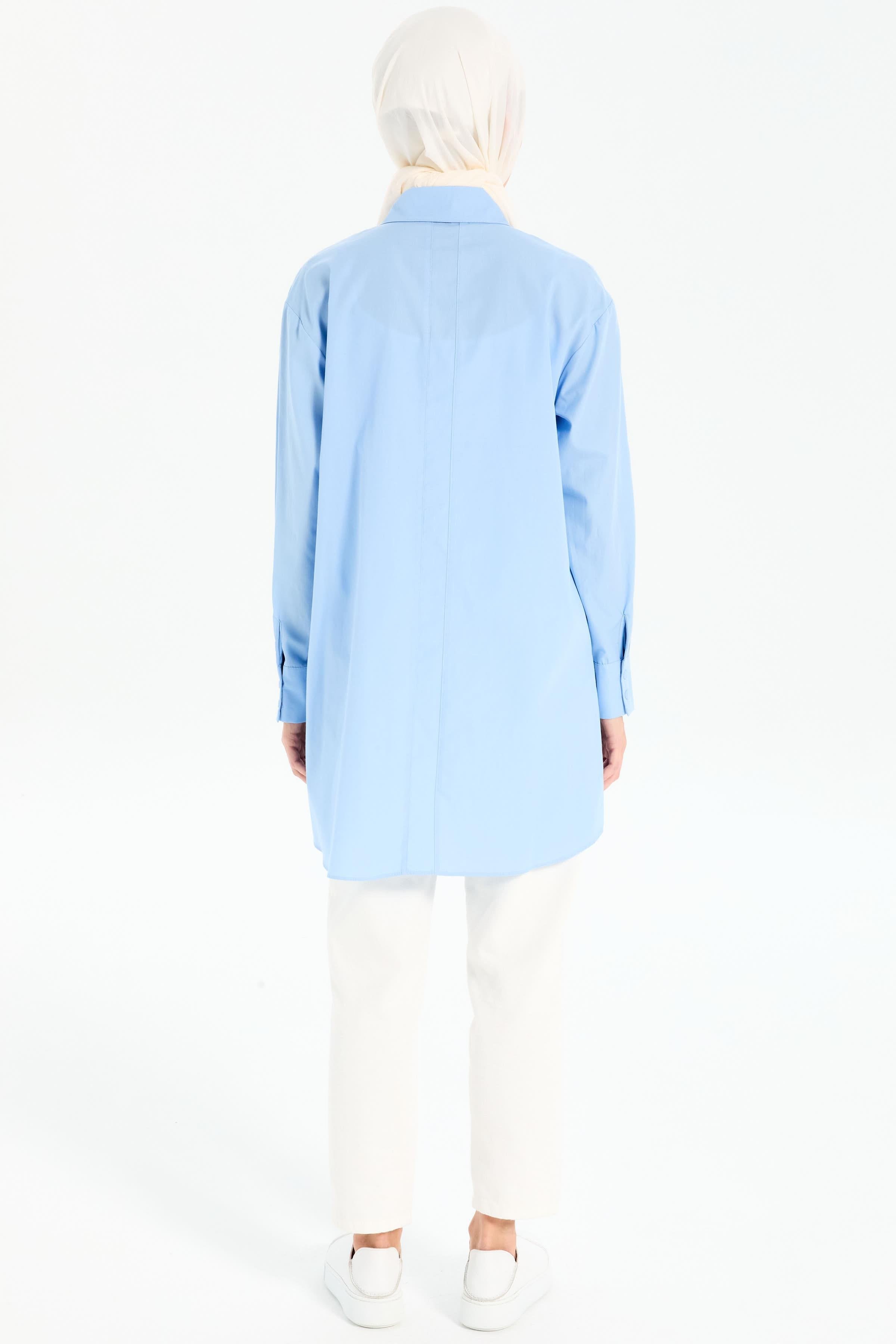 Oversize Cepli Tunik - Açık Mavi