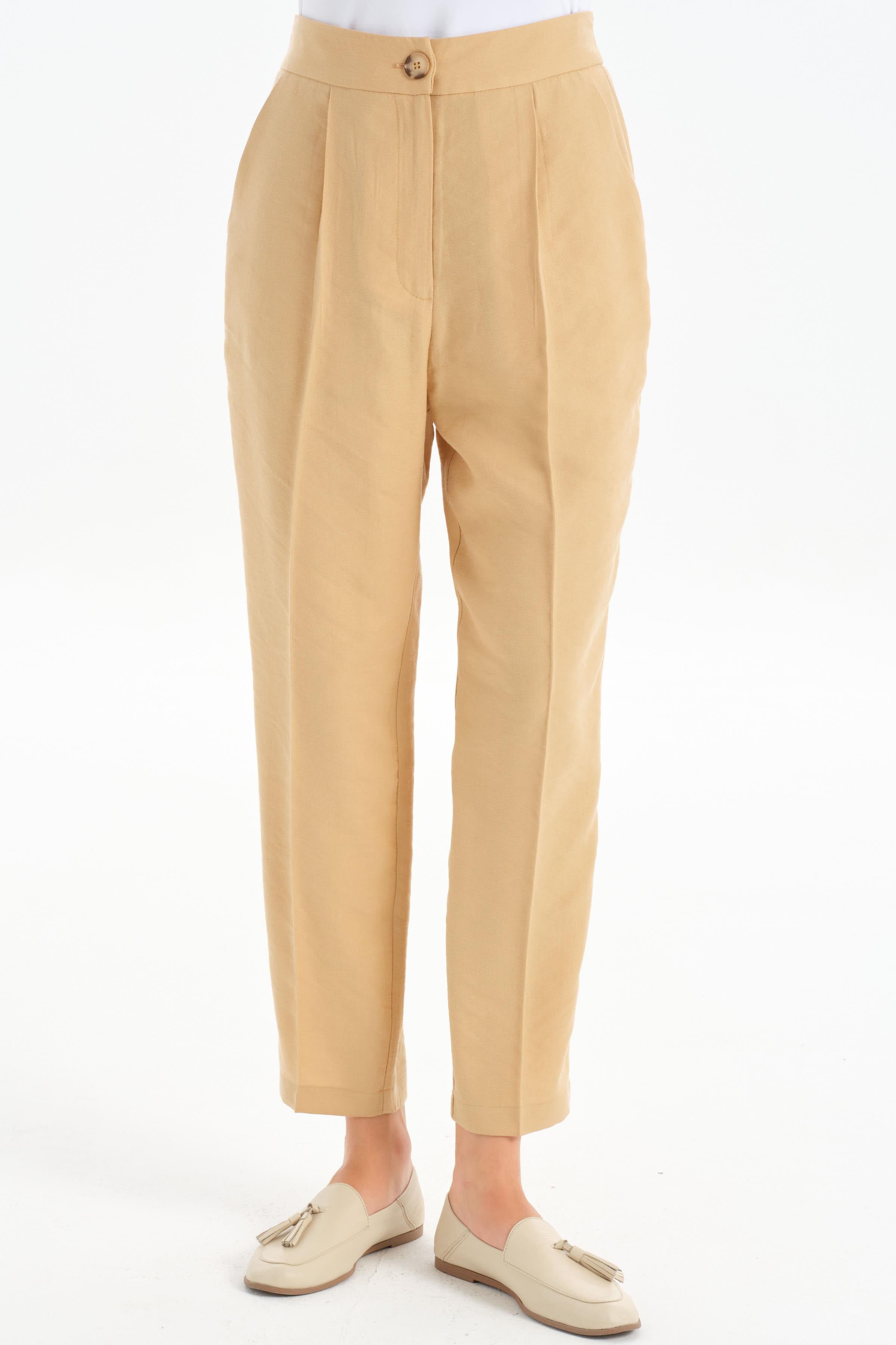 Pile Detaylı Cepli Pantolon, şıklığı ve rahatlığı bir araya getiren modern bir parçadır. Pile detayları, pantolona zarif bir dokunuş katarak hareketlilik ve hacim kazandırır.