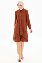 Pile Detaylı Katlı Tunik - Kahve