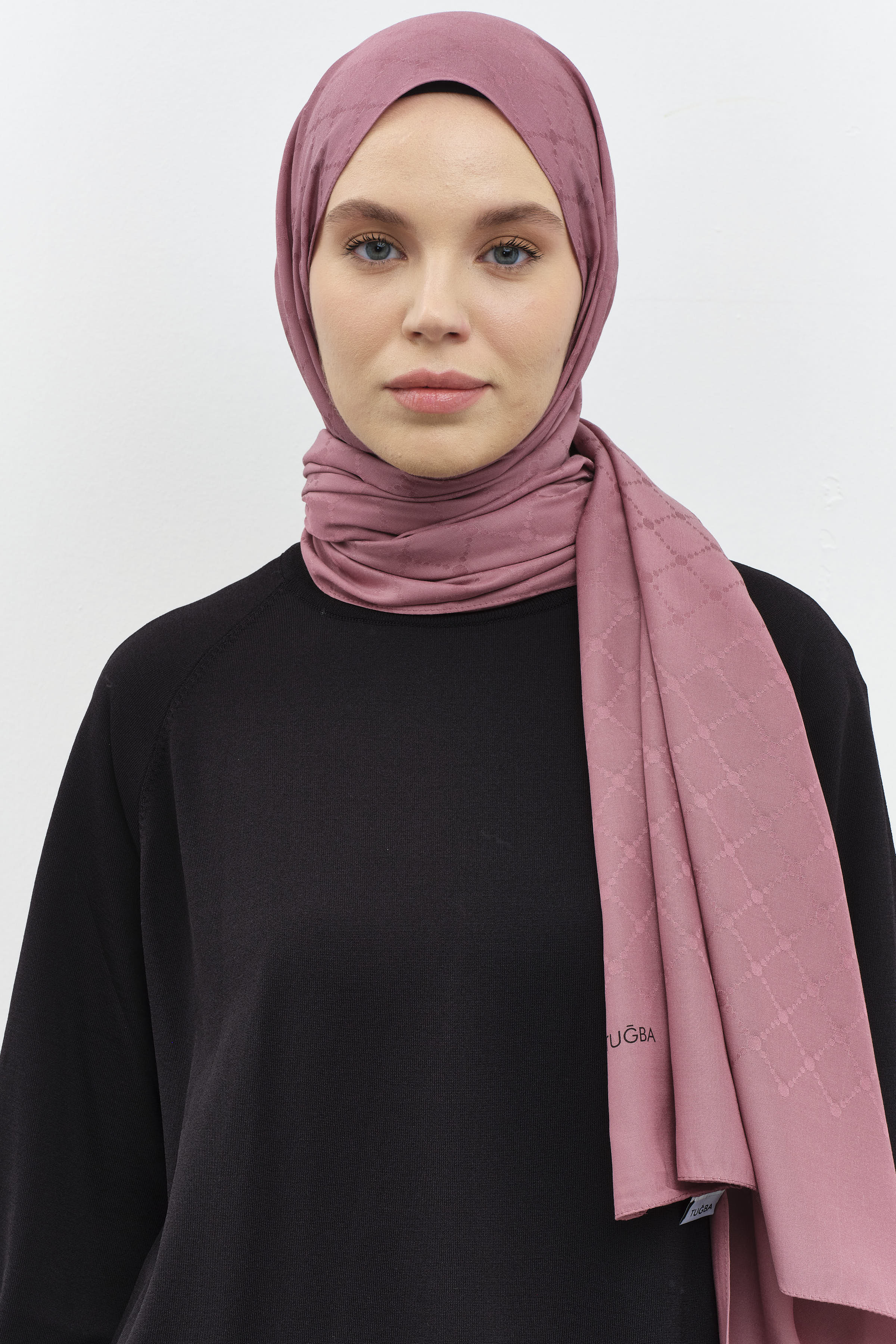 Puan Kare Desen Viskon Şal - Gül Kurusu